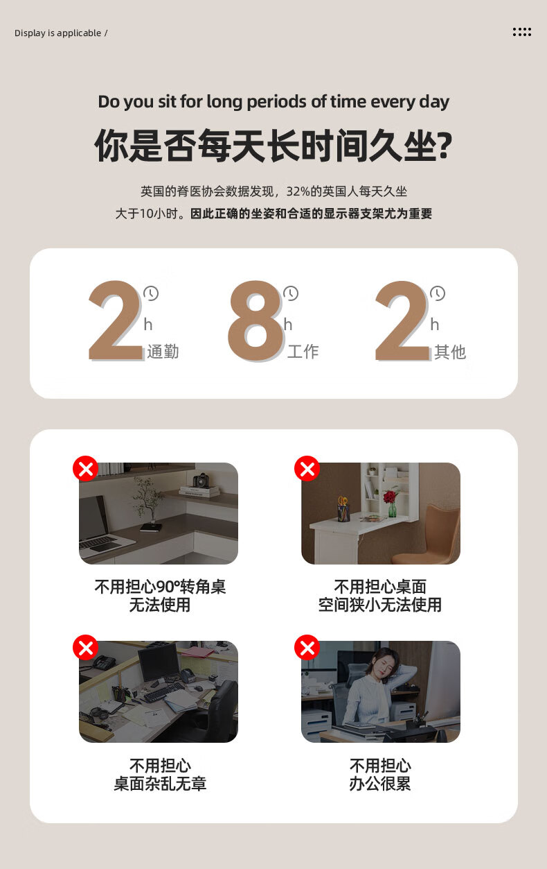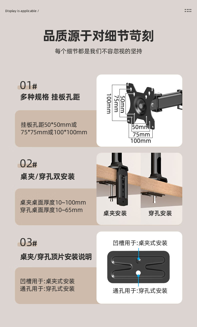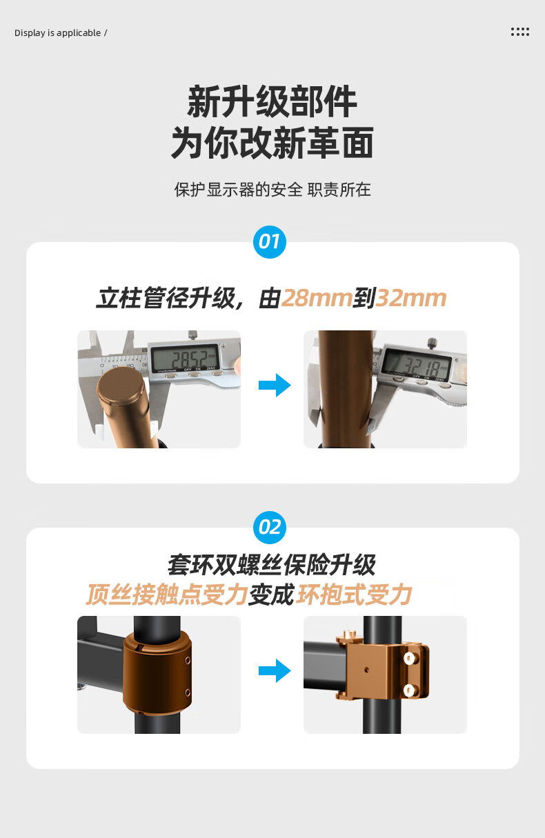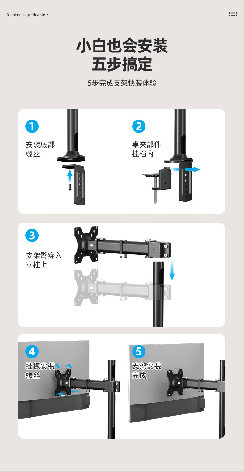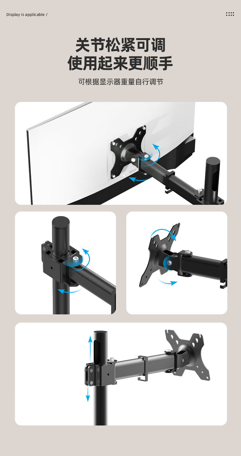 Budi 24/27-inch computer monitor desktop lifting bracket can be hung upside down on the wall to increase the height of the horizontal and vertical screens. 14-27 inches is suitable for clamping or perforation installation. The column is 35 cm.