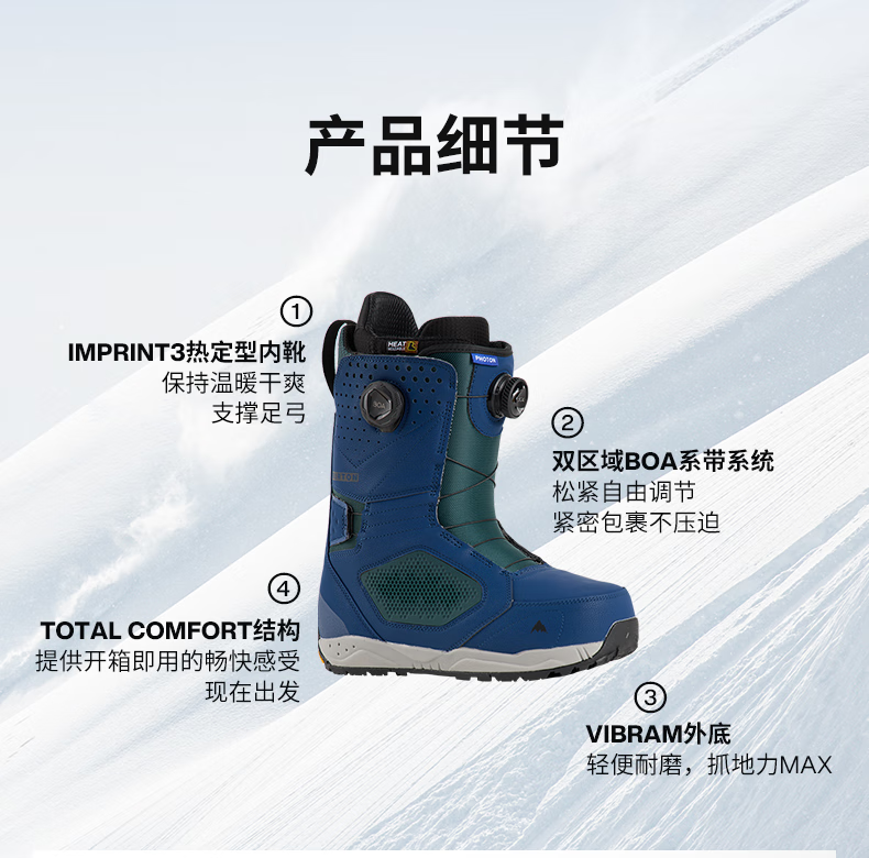 BURTON伯顿官方男士Photon BOA滑雪鞋缓震滑雪单板运动装备150861 15086109400 42.5