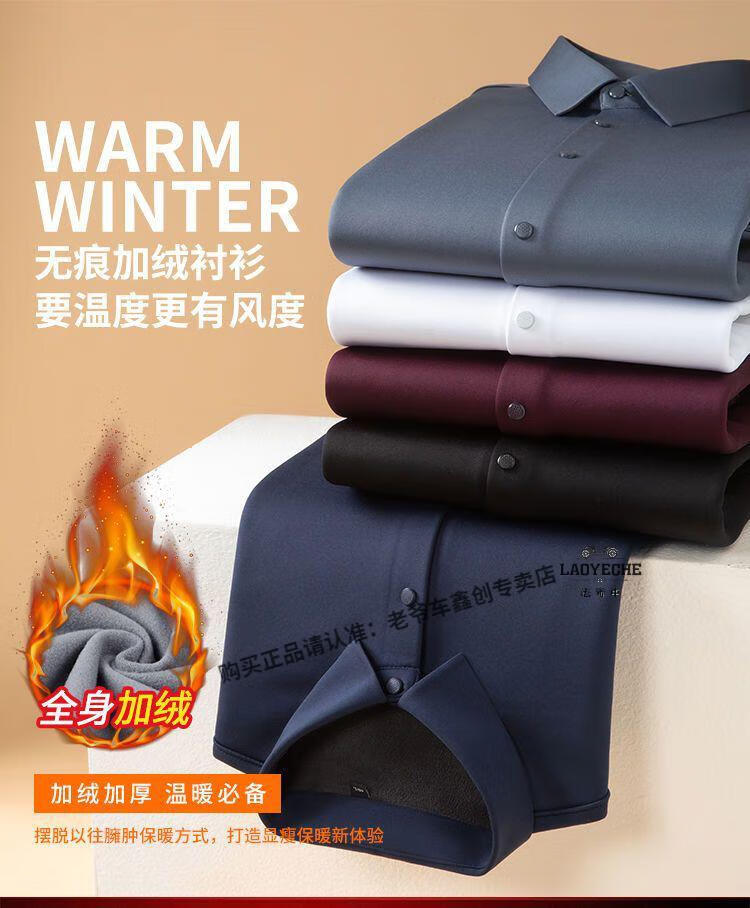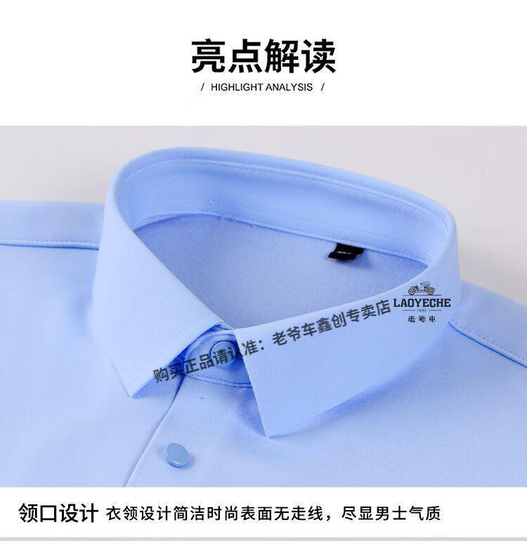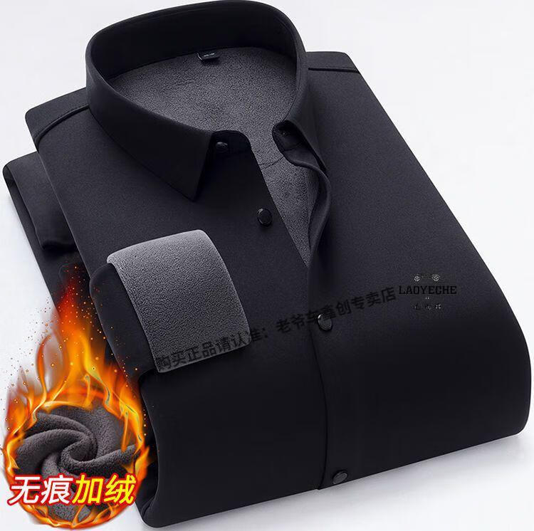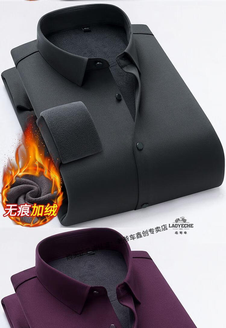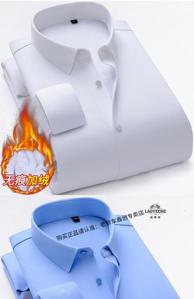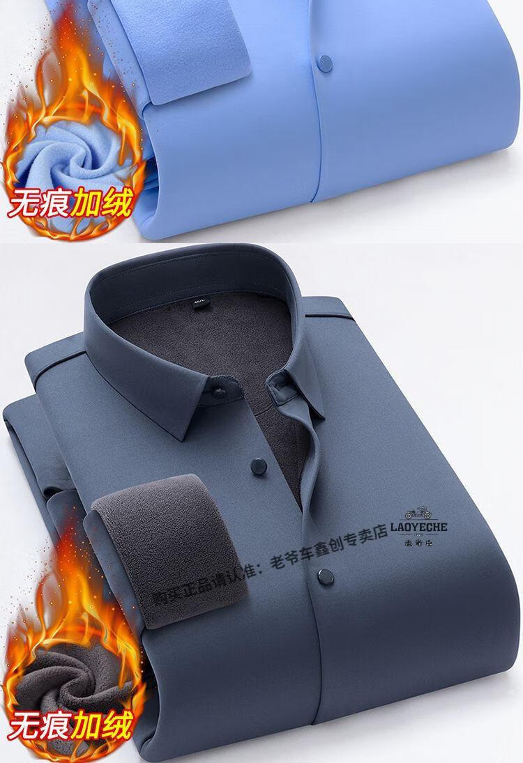 老爷车高档无痕保暖衬衫男加绒加厚商务休闲职业工装纯色免烫桑蚕丝衬衣 加绒 Z06 天兰/ 保暖 175/XL 建议130-145斤