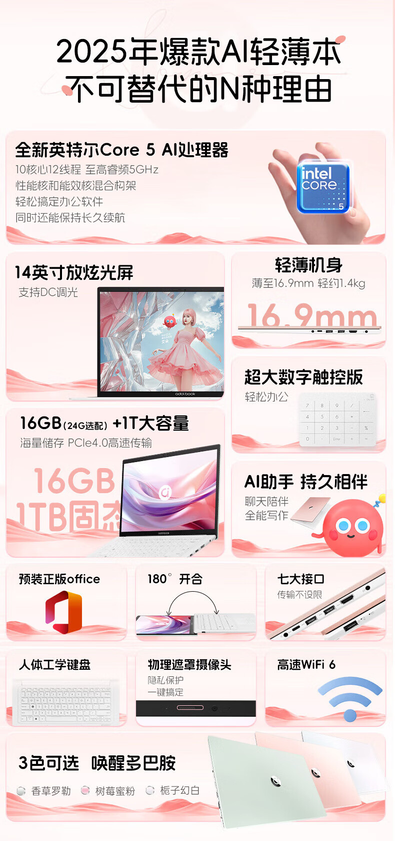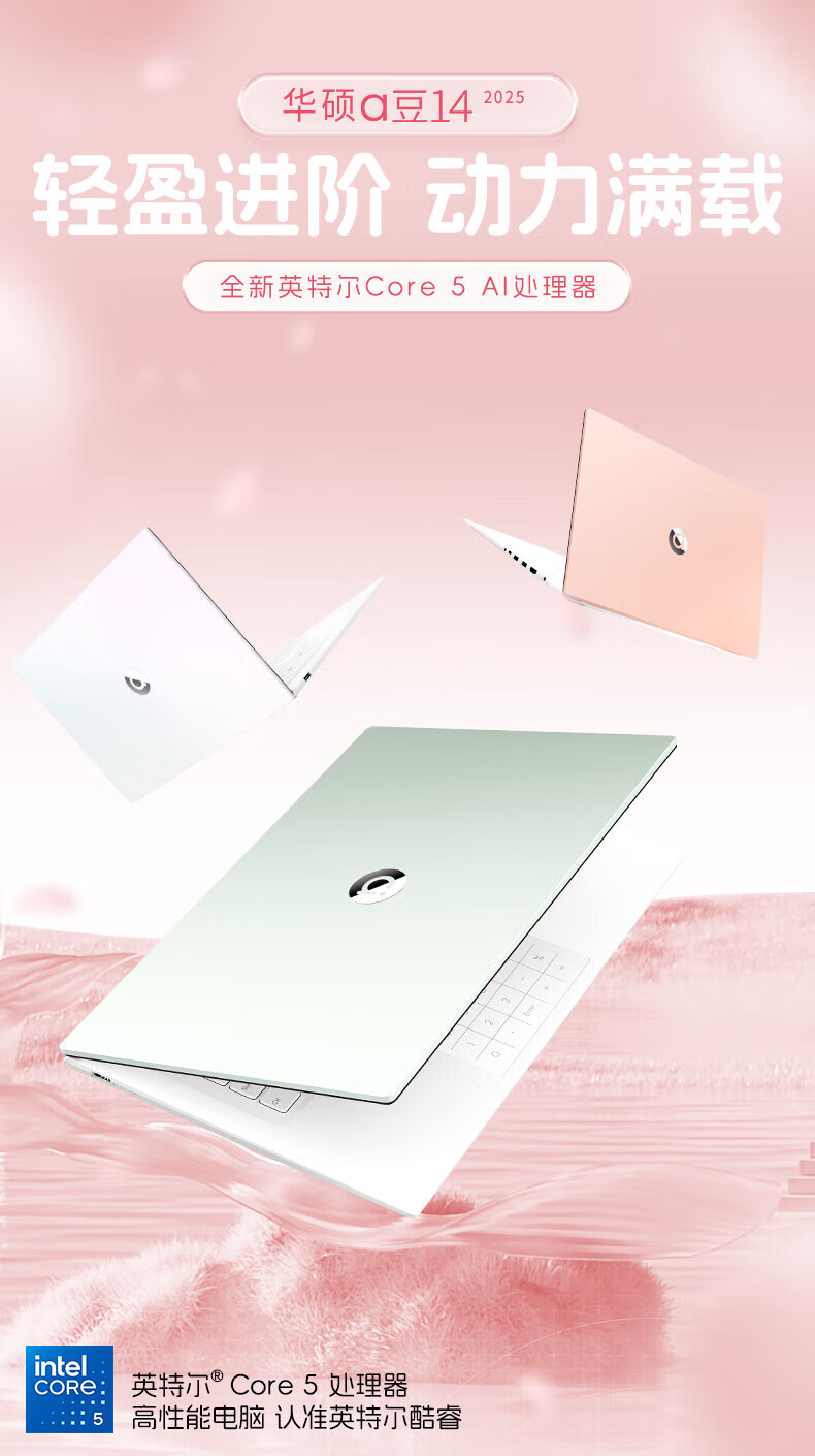 ASUS A Dou 14, ordinateur portable fin et léger AI de haute qualité, bureau d'affaires, jeu étudiant, processeur Core 5 AI, basilic vanille, écran de protection des yeux, assistant AI Dou Ding, bureau préinstallé