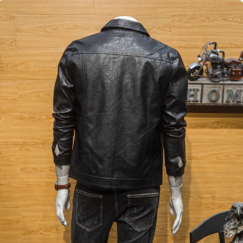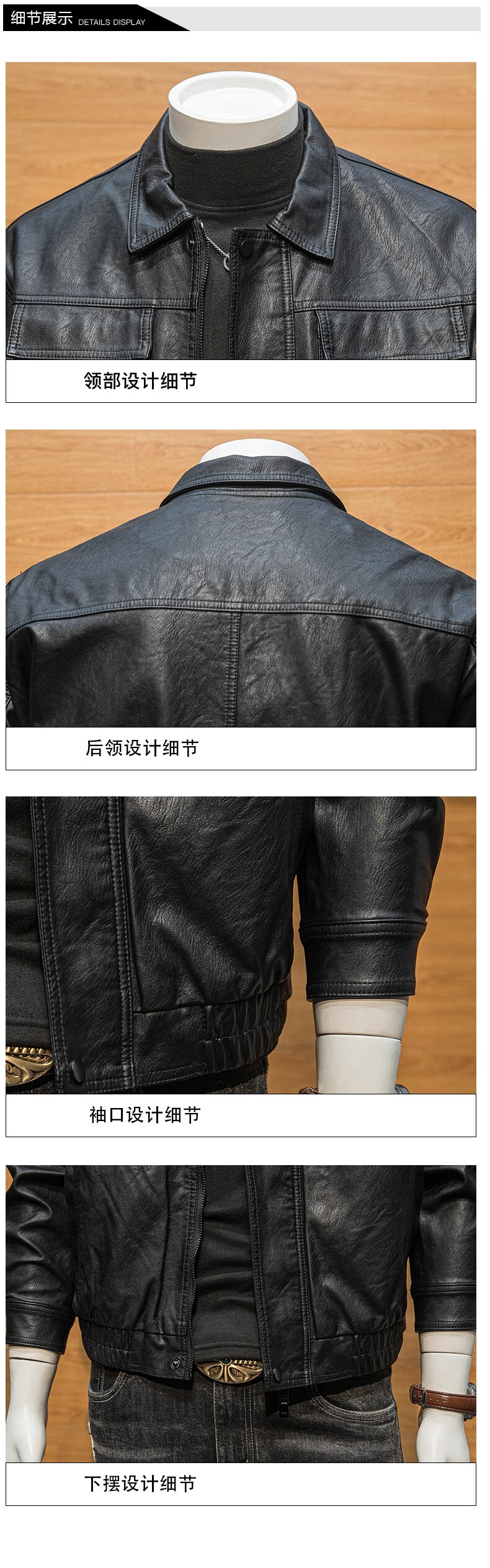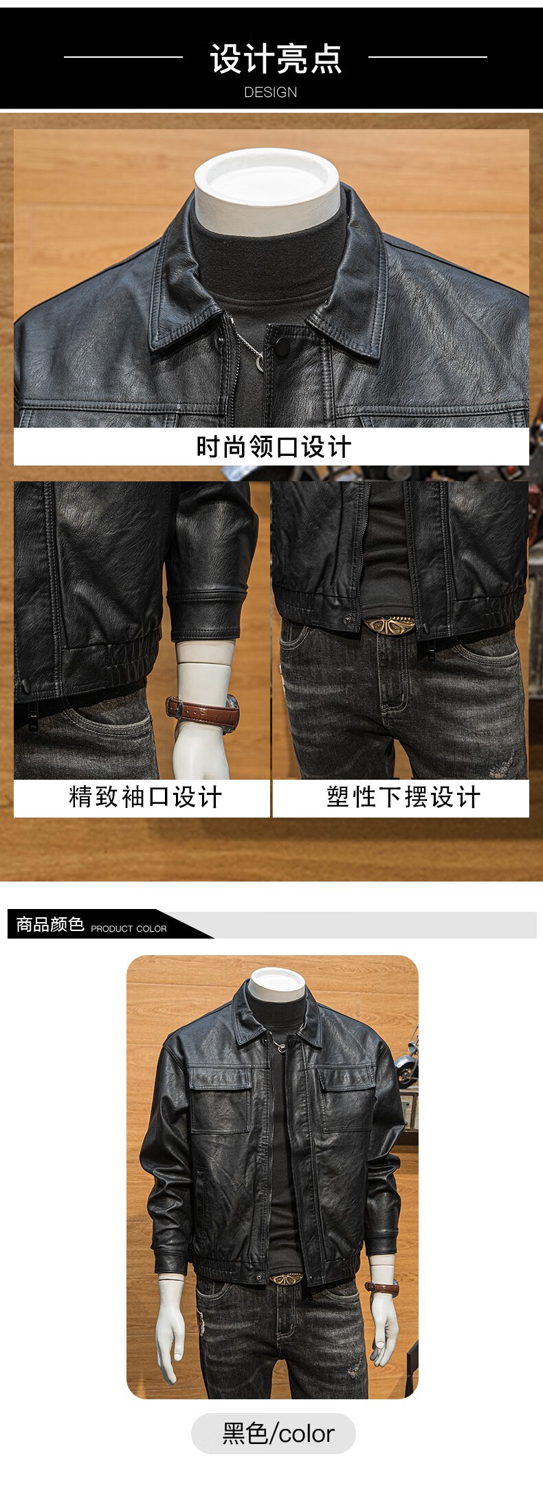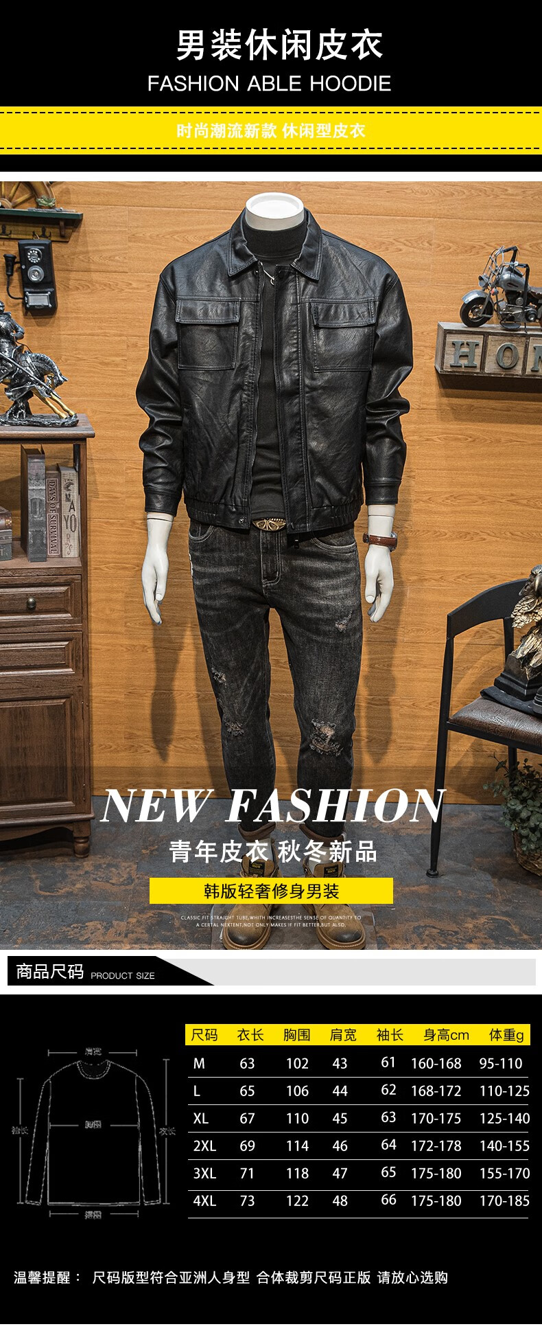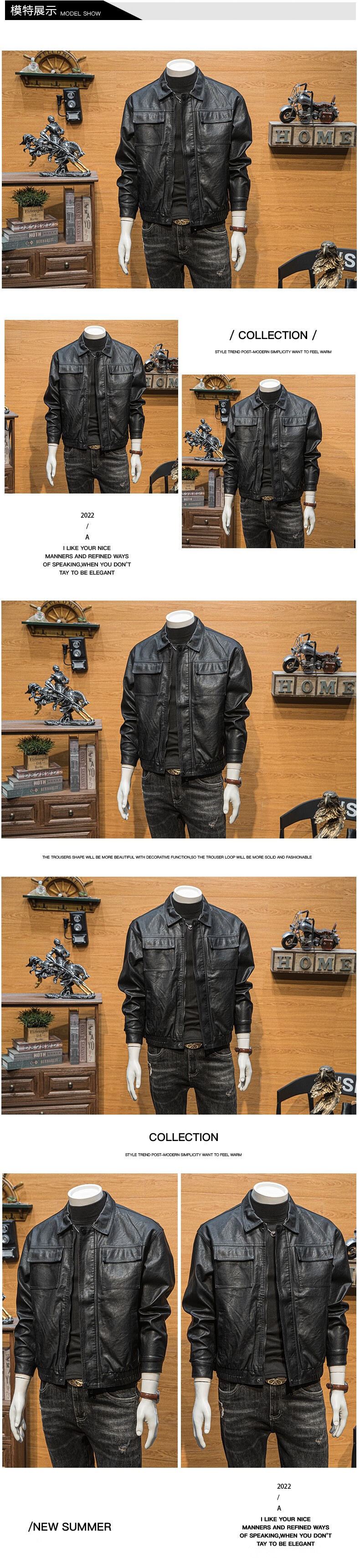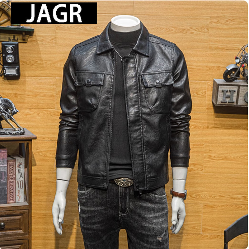 JAGR trendy brand leather jacket men's motorcycle casual top light business men's wear trendy men's leather jacket black L
