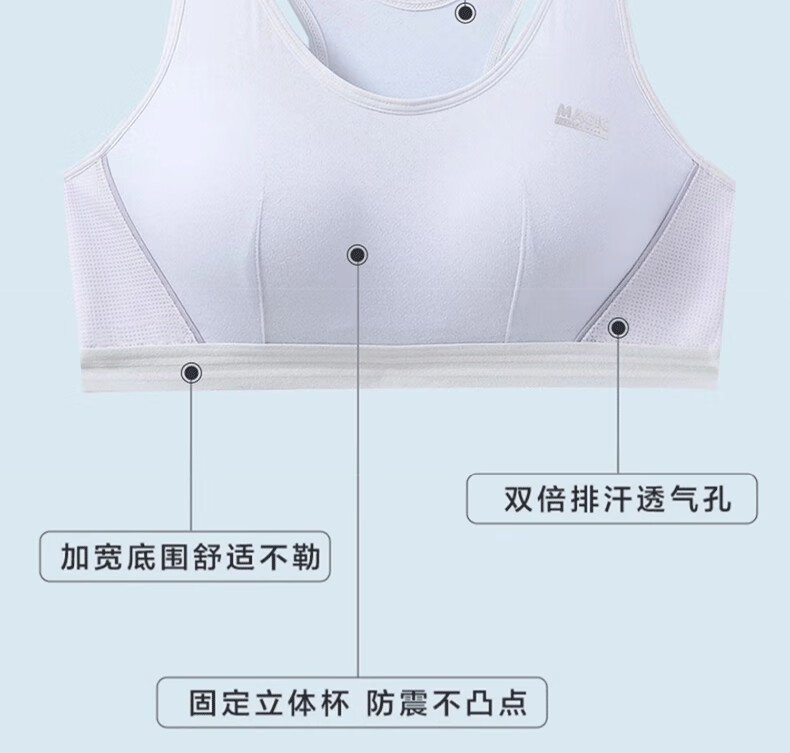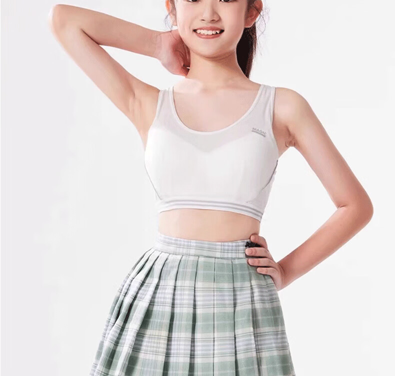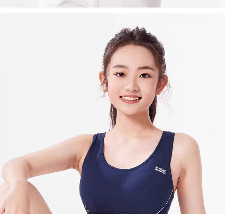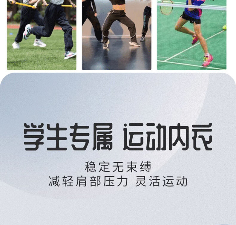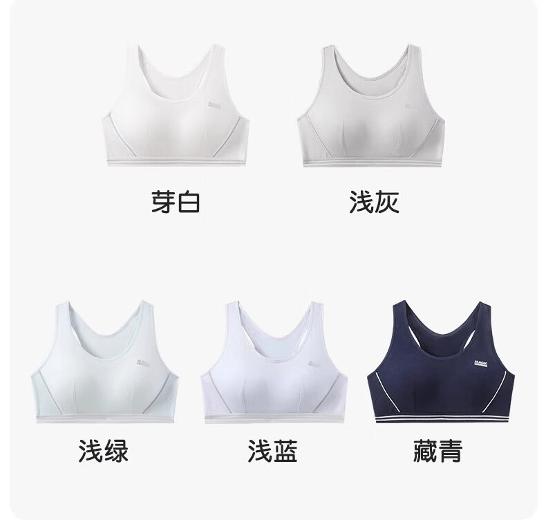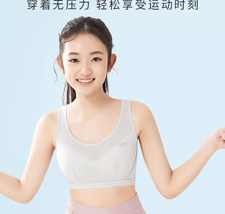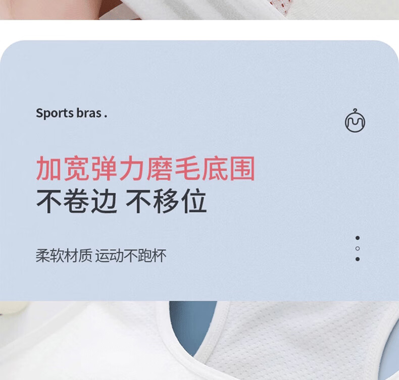 莫代尔发育期内衣儿童少女跑步防震学生初高中生青春期运动背心女孩文胸 藏青+白+蓝3件【棉柔四季款】 L (适合85-100斤)