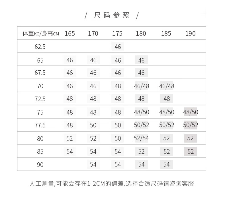 Size (cm) 42 44 46 48 50