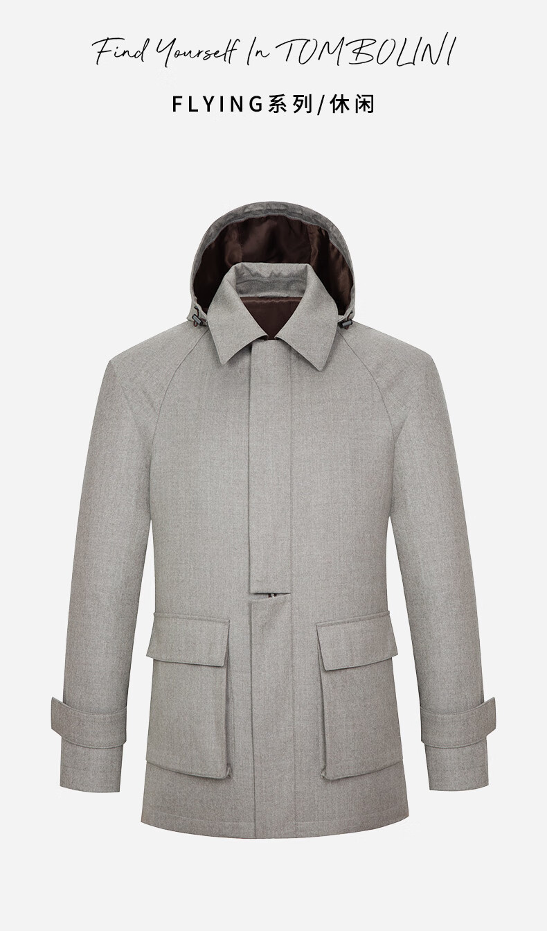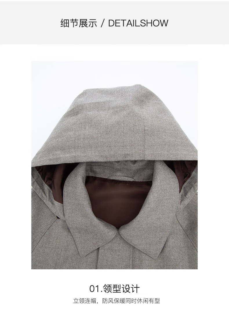 Dongbolini Men's Autumn and Winter New Wool Parka Windbreaker Removable Hat Casual Jacket Brown M 48