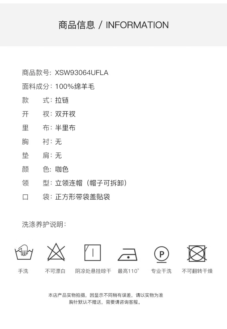 China (cm) 165 / 88-90 170 / 96-98 175 / 108-110 180 / 118-122 185 / 126-130