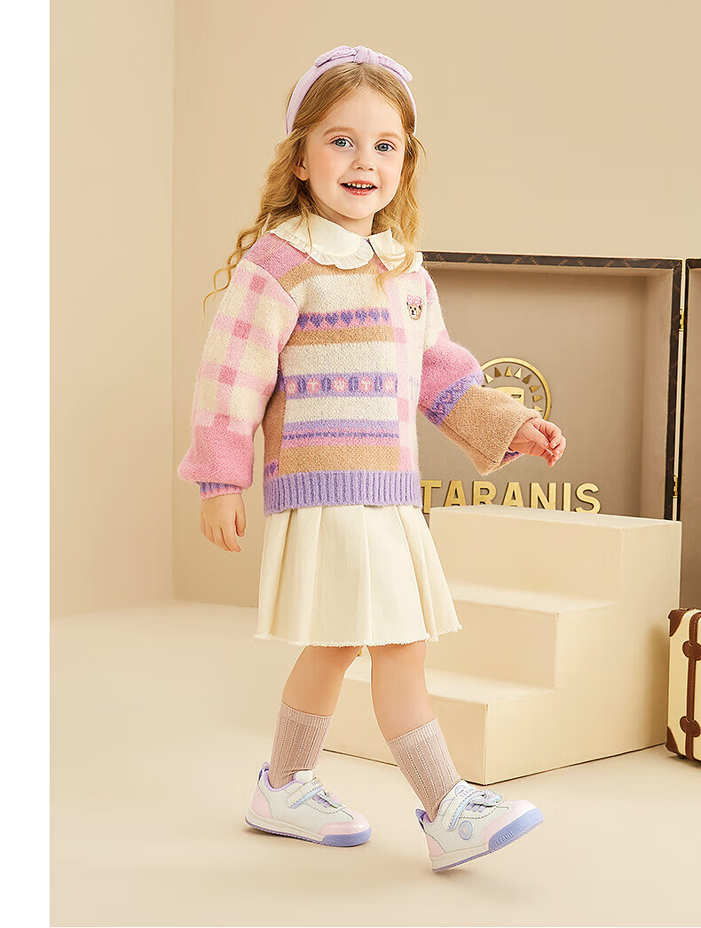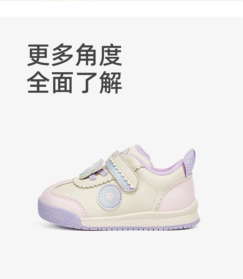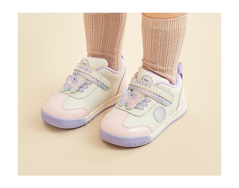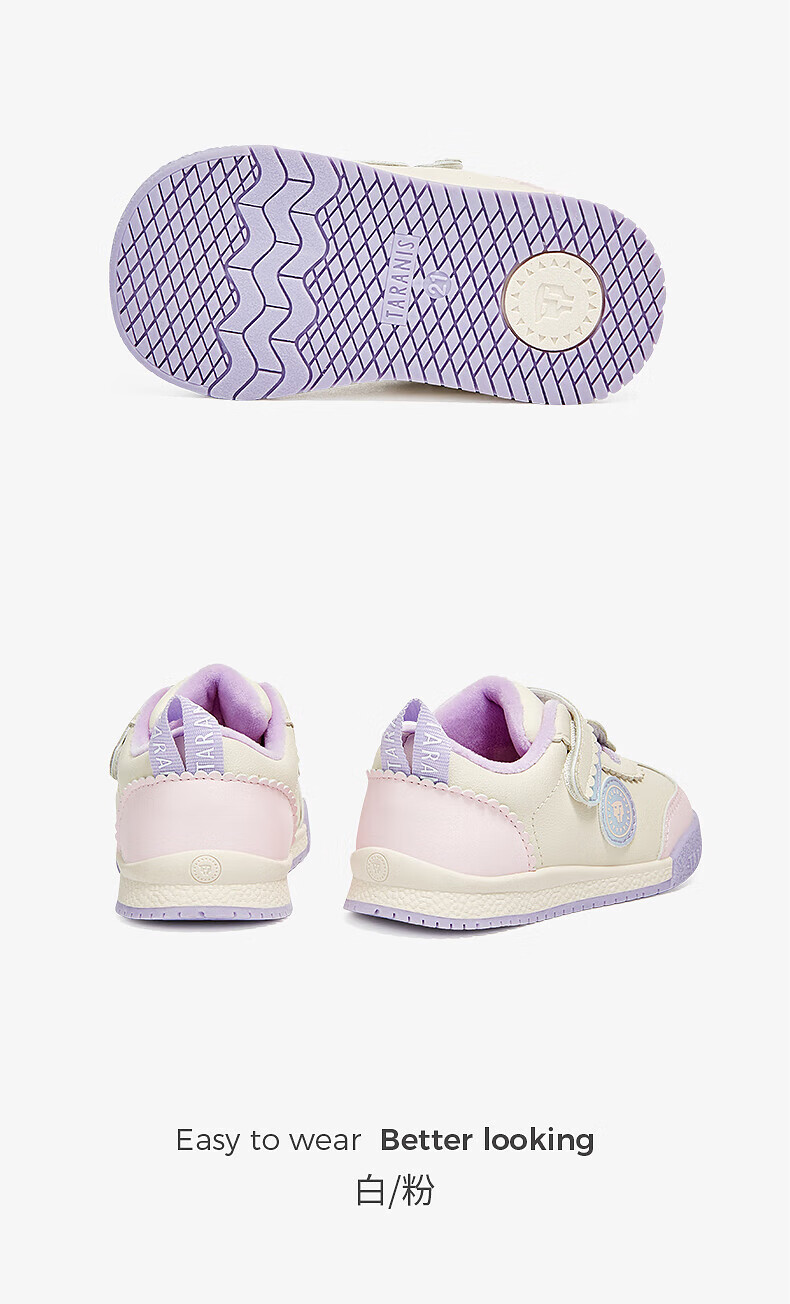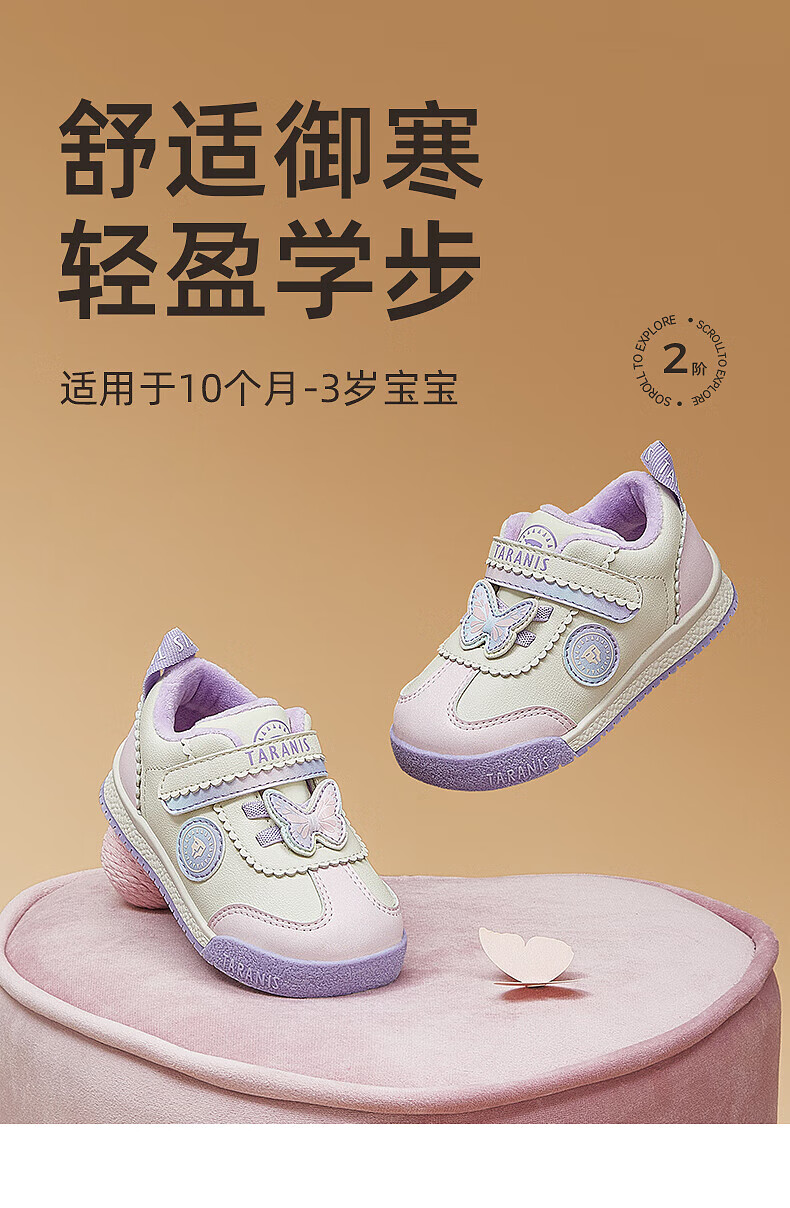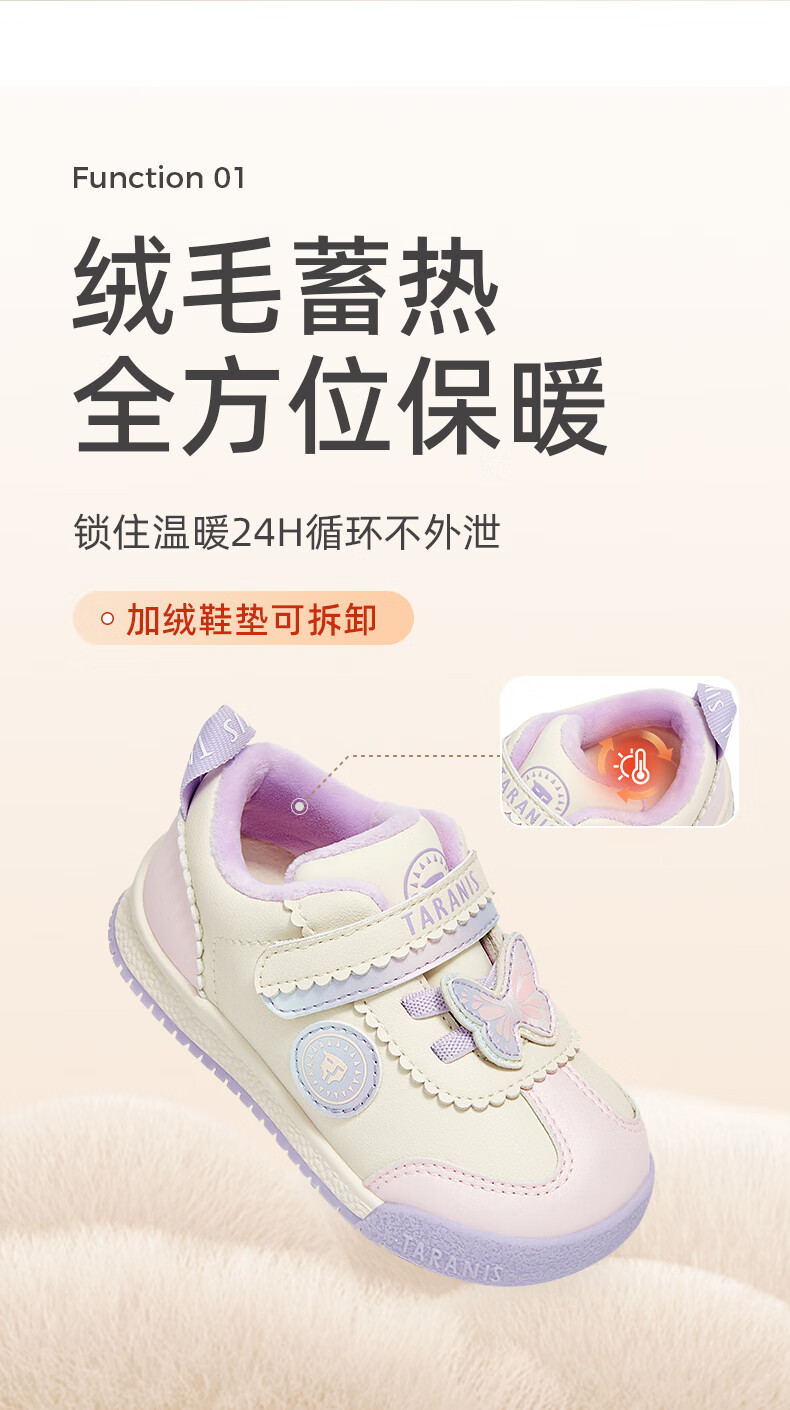 泰兰尼斯女童面包鞋冬季新款加绒童鞋女宝宝学步鞋防滑保暖机能鞋 白/粉 26 内长16.5适合脚长14.8~15.2