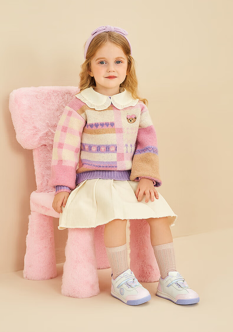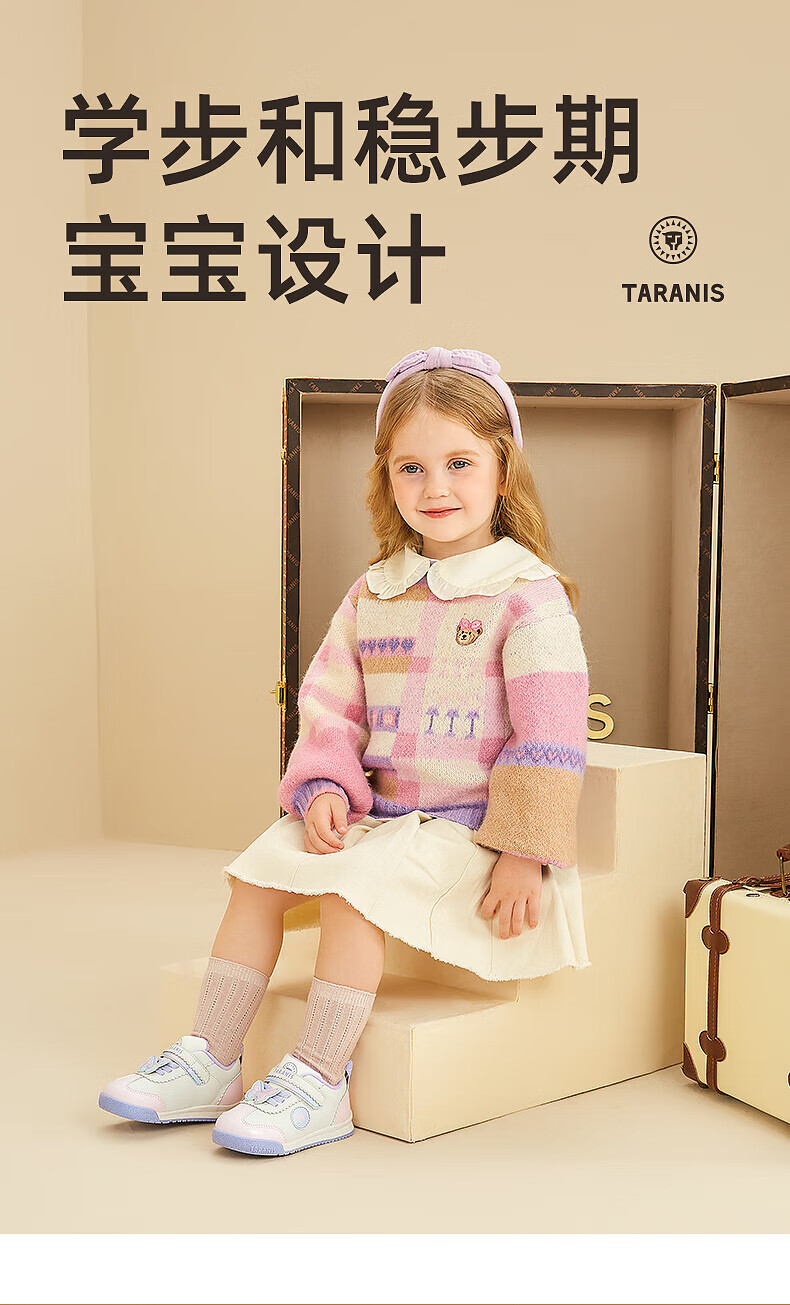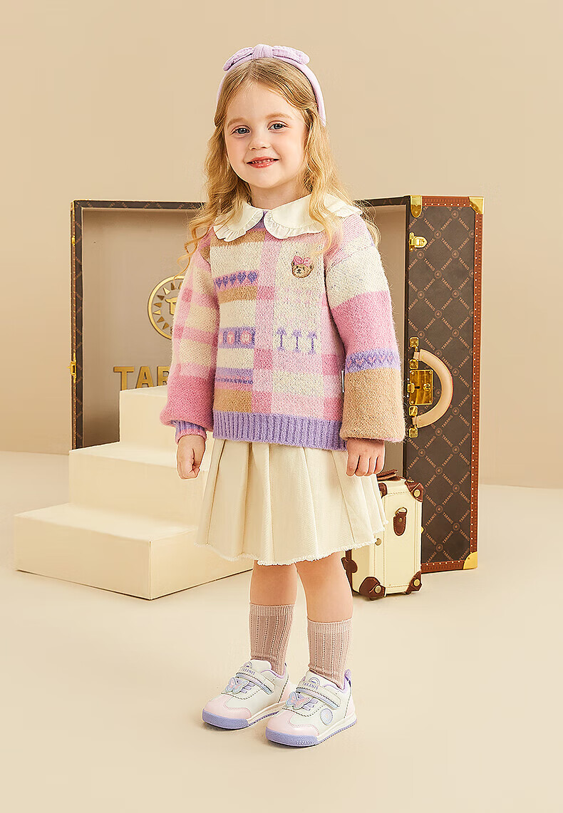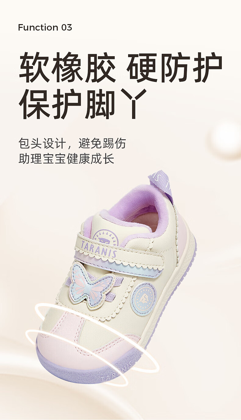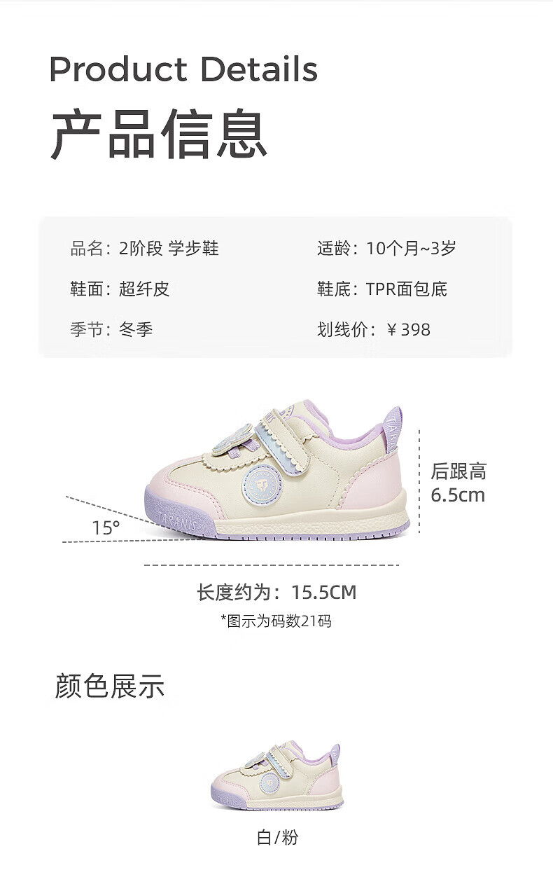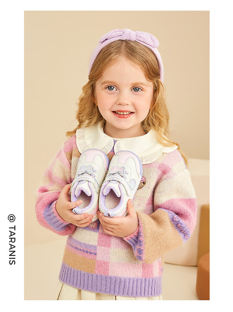 泰兰尼斯女童面包鞋冬季新款加绒童鞋女宝宝学步鞋防滑保暖机能鞋 白/粉 26 内长16.5适合脚长14.8~15.2