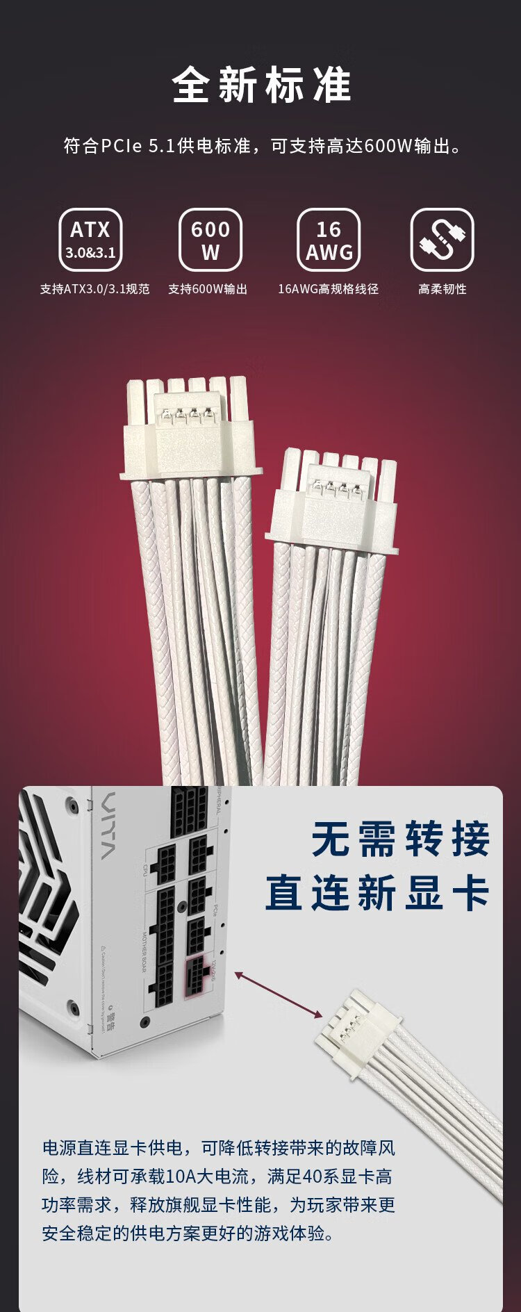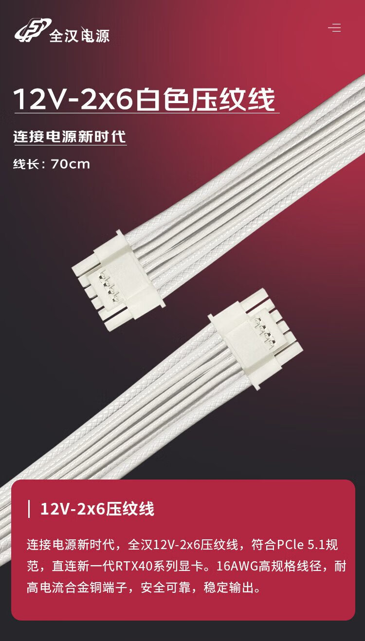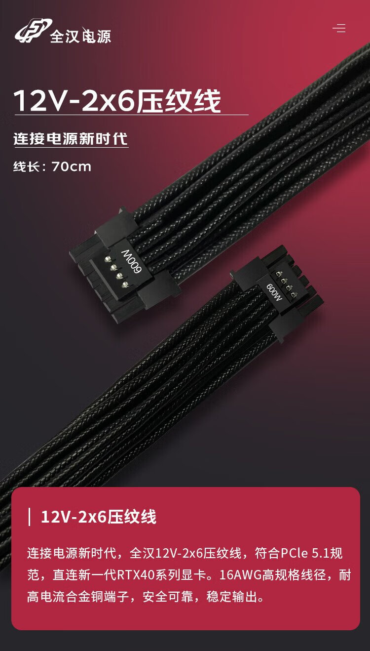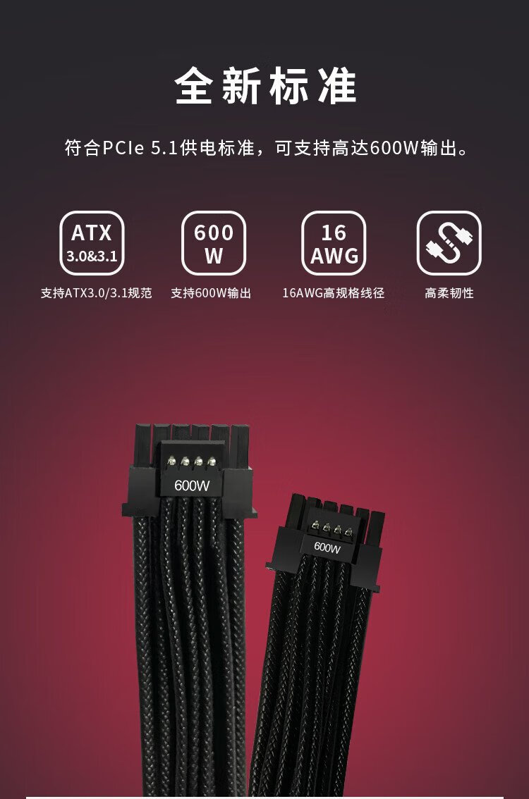 FSP 12V-2x6 custom embossed cable 16-pin PCIE5.1 graphics card power supply cable 600W output compatible with ATX3.0/3.1 power supply 12V-2*6 embossed cable/black