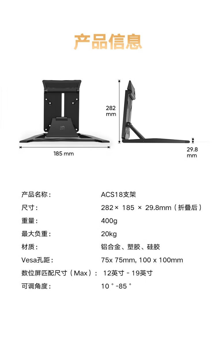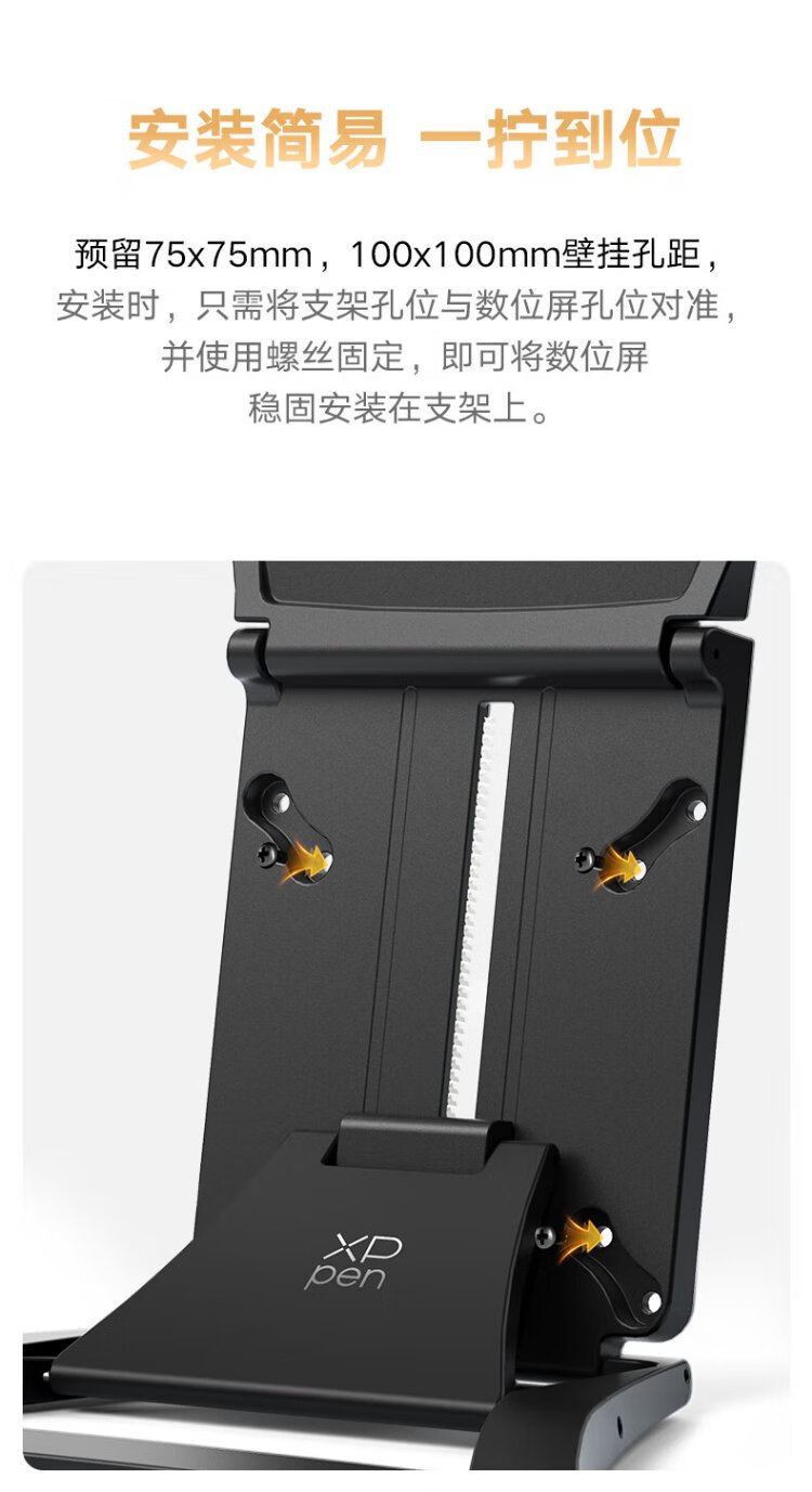 XP-Pen 适用于Artist Pro19(4K)数位屏可调节支架 36档调节 铝合金材质 一体折叠 黑色
