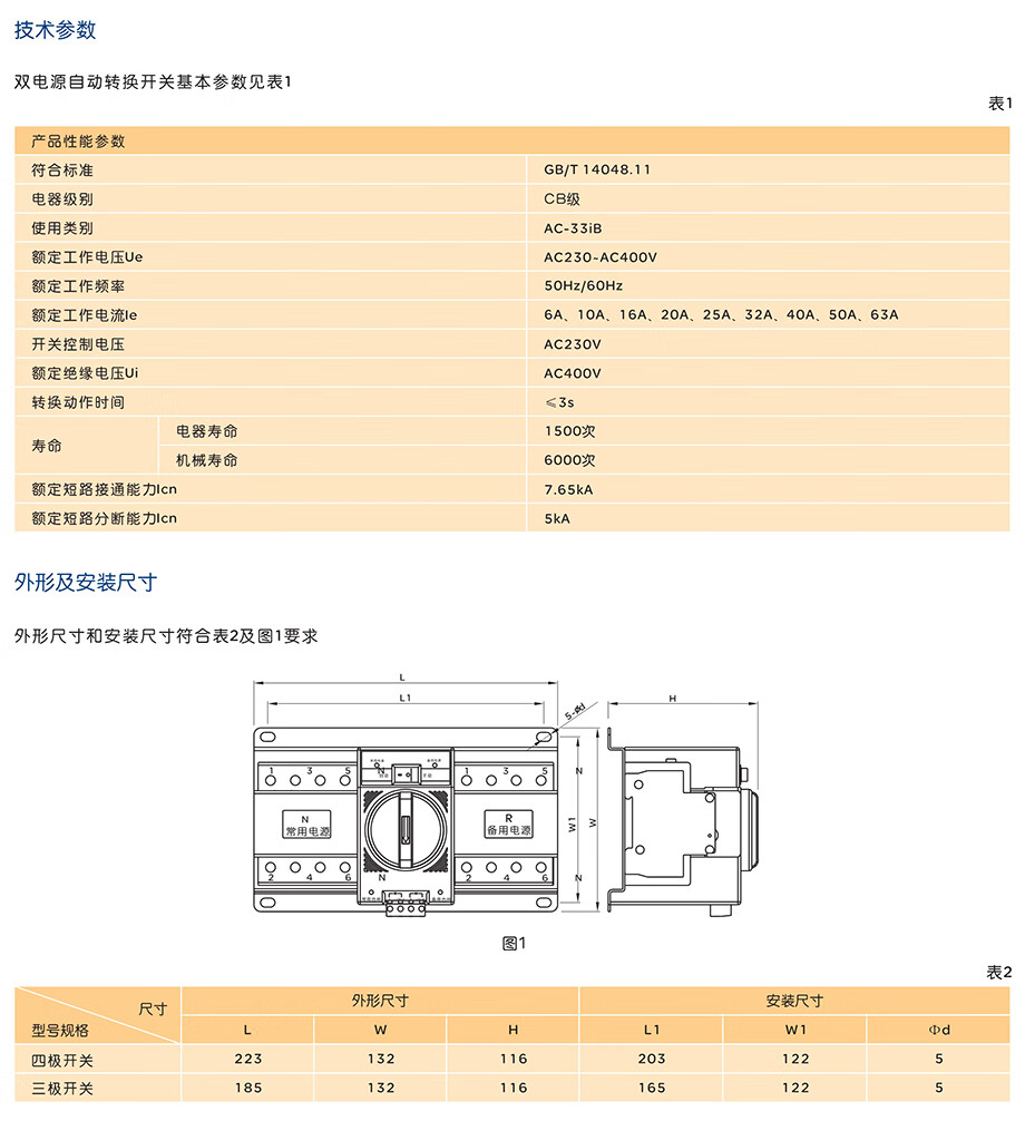 人民双电源自动转换开关RDQ1交流电自发电备用电源切换控制 2P 50A