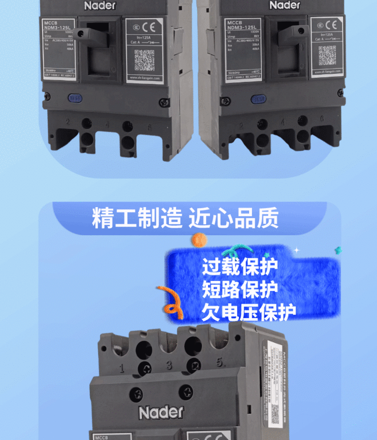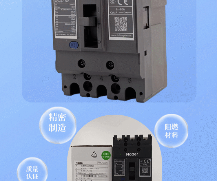 良兴NDM3-100C/3300塑壳断路器上海空气开关断路器3P三极Nader 10A NDM3fuji