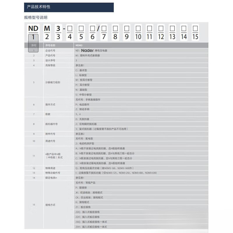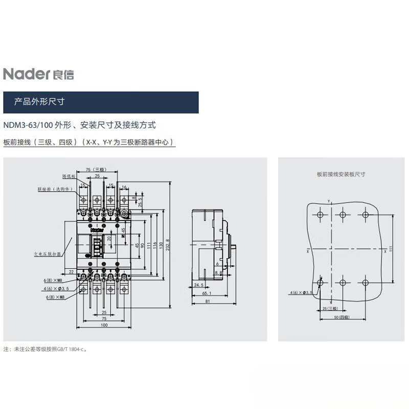 Liangxin (Nader) Shanghai NDM3 molded case circuit breaker M type 125A air switch 250A 3P