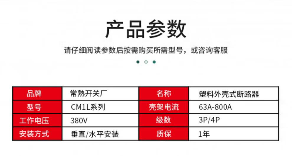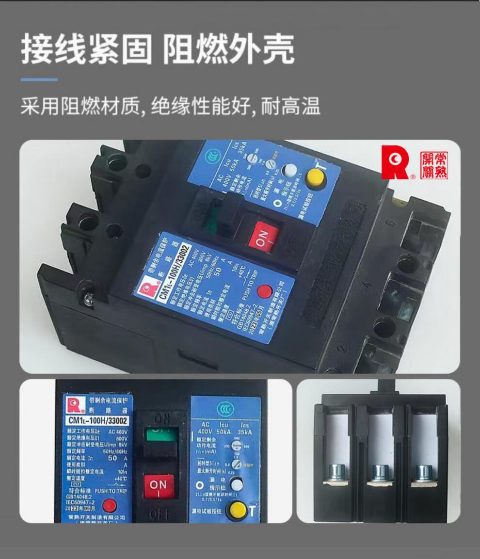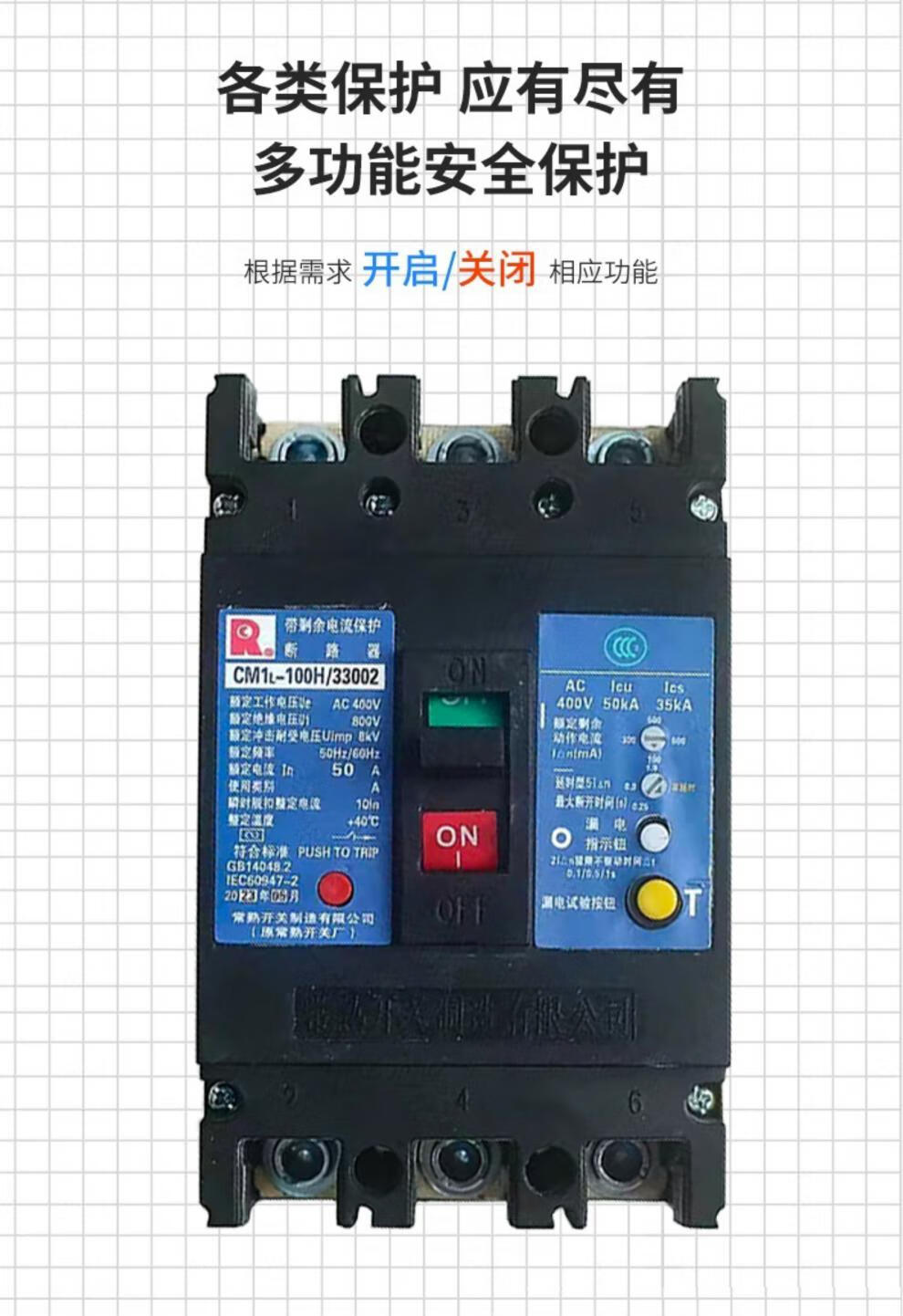 常熟塑壳漏电断路器CM1L-100/225/400/630/800空气开关漏电保护4P CM1L-100/4P 50A