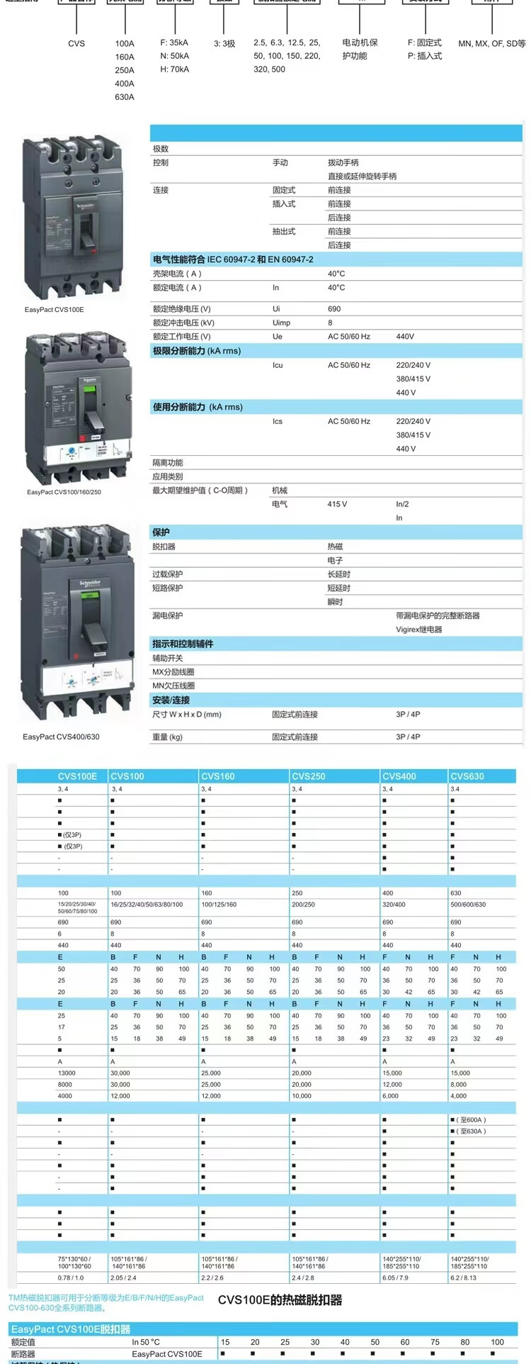 Schneider's new molded case circuit breaker CVS100F160N250H400A630A circuit breaker TMD3P4P 40A E 3P