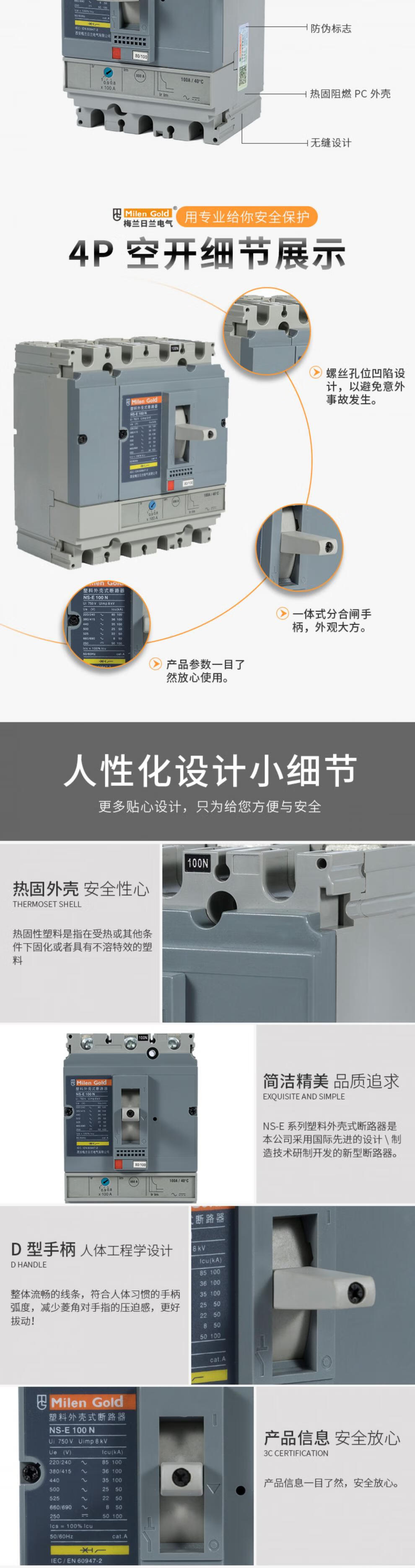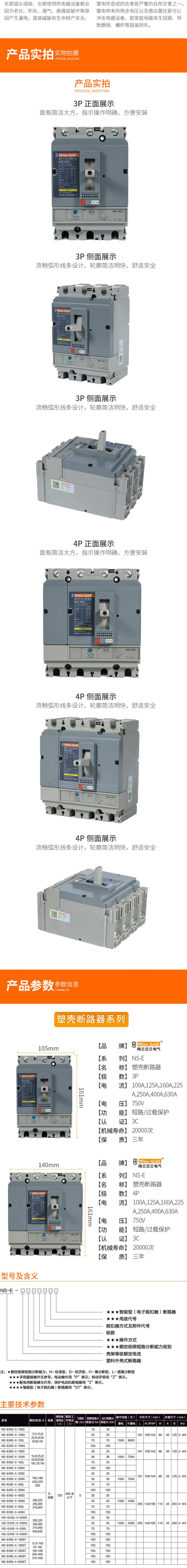 MSHML boîtier en plastique disjoncteur NS-E 3300 3P 4P 160 250 400 boîtier en plastique contrôle principal air 100A 3P