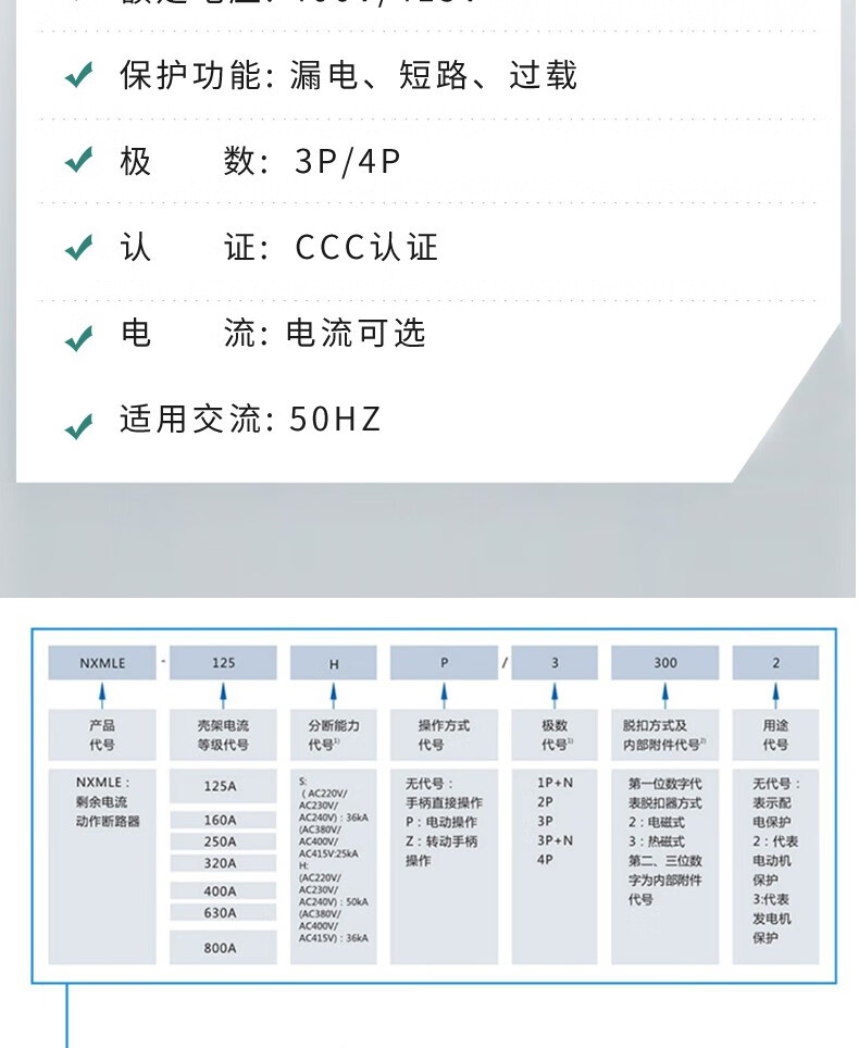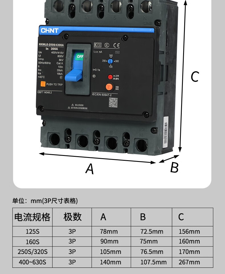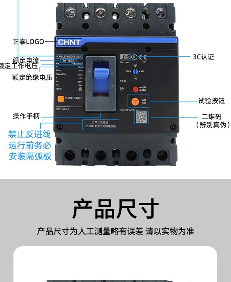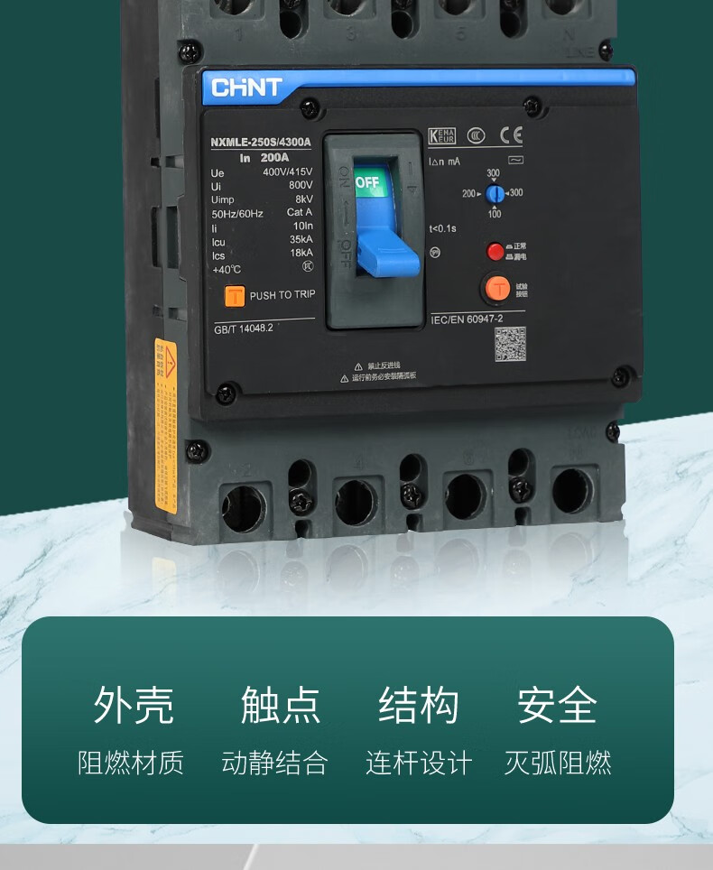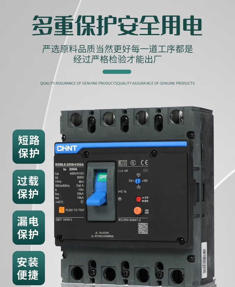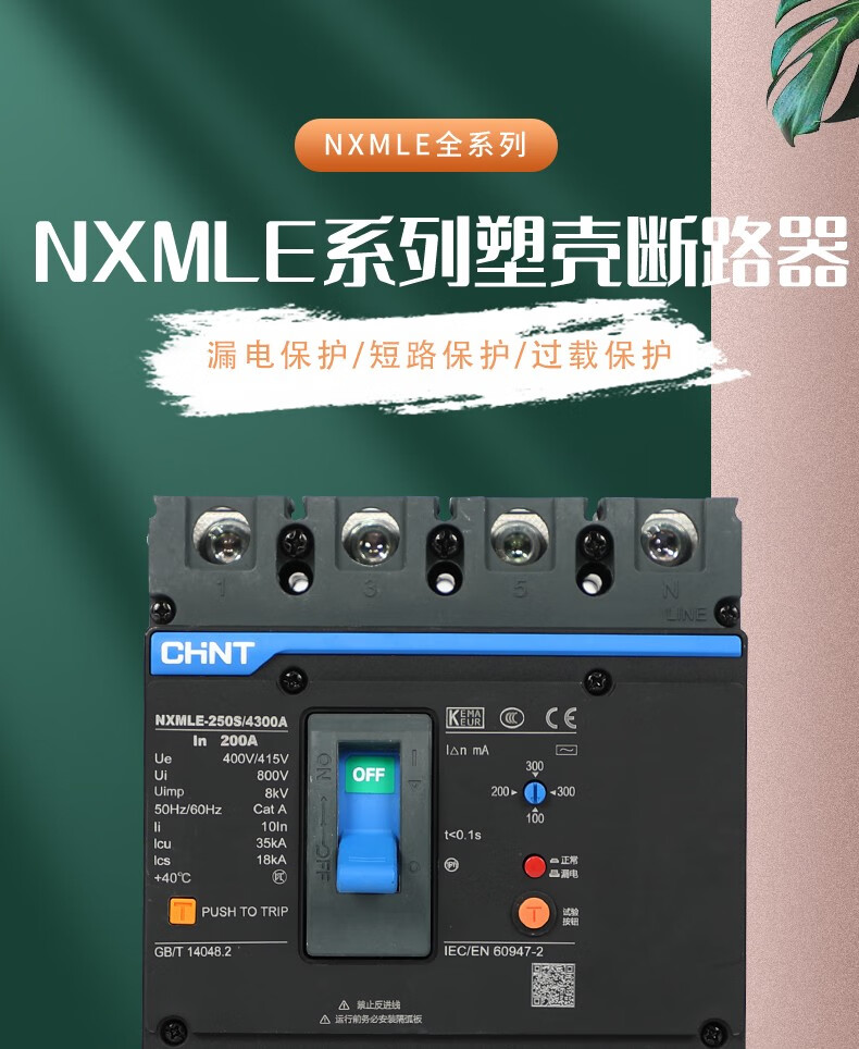 Chint NXMLE protection contre les fuites boîtier en plastique disjoncteur 100A125A160A4P250A400A Kunlun protection contre les fuites 50A 3P
