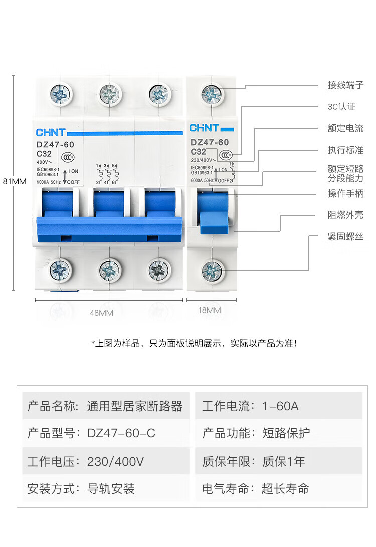 Chint dz47-60C circuit breaker household air switch 2p3p1p32a40a60a25a16a 40A 4p