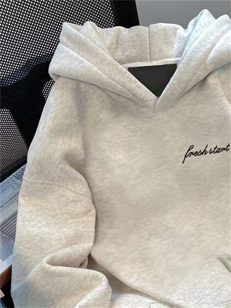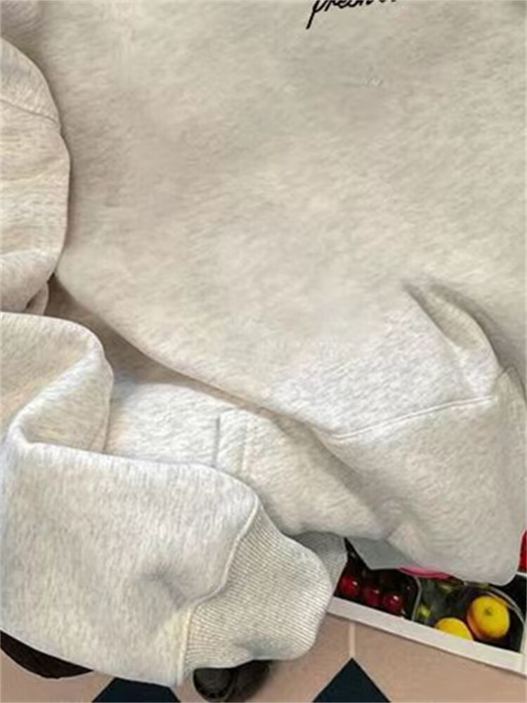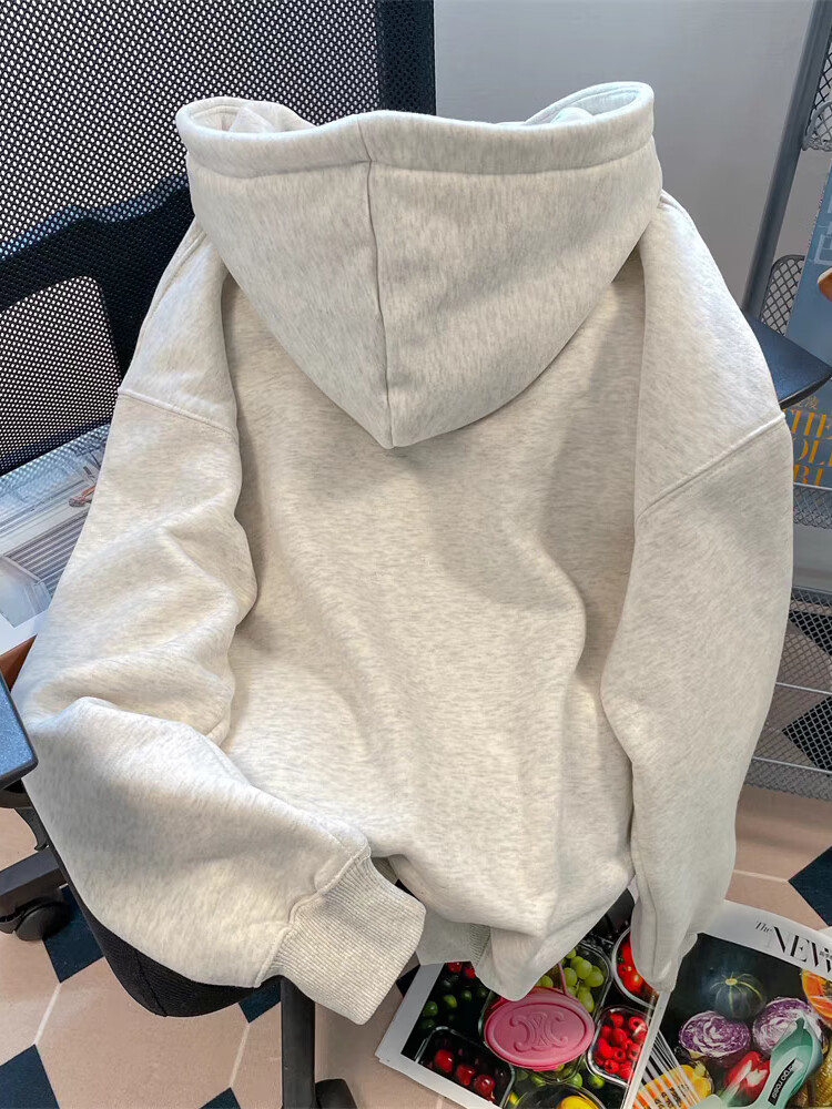 Katuchi American hiphop trendy brand letter hooded sweatshirt for men and women in autumn and winter loose trendy velvet thickened tops jacket white gray-velvet L