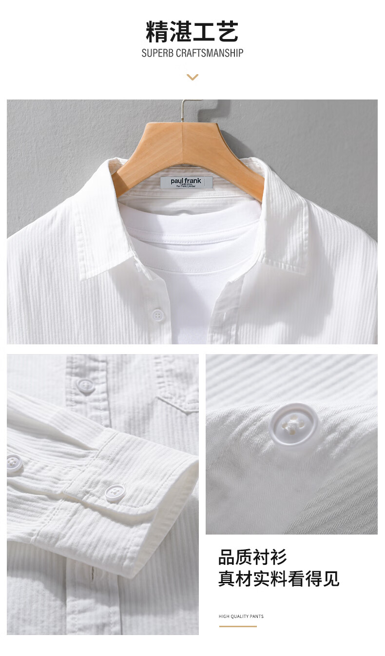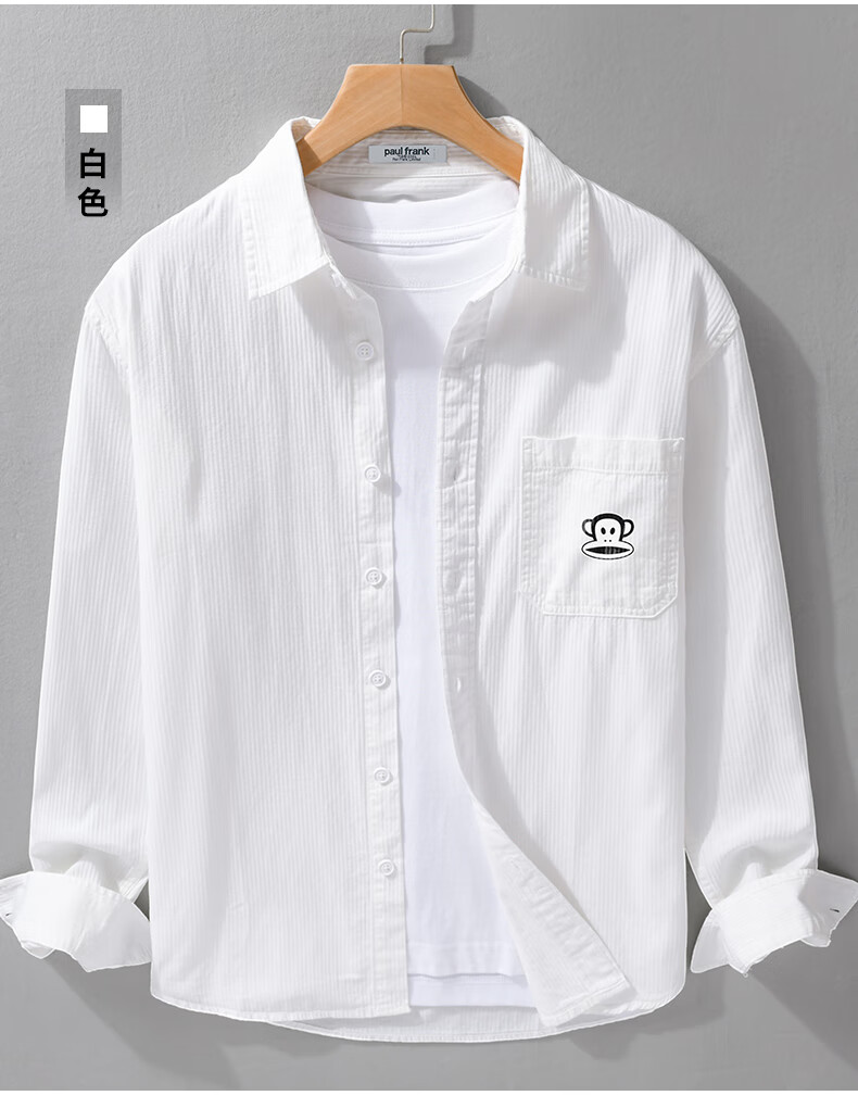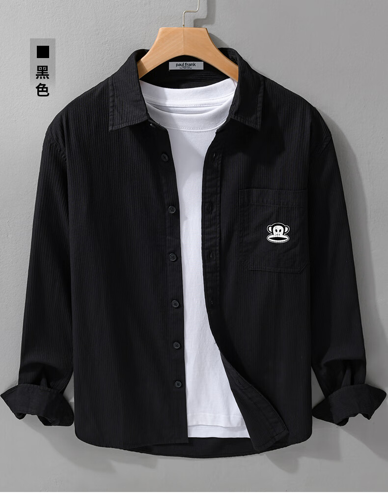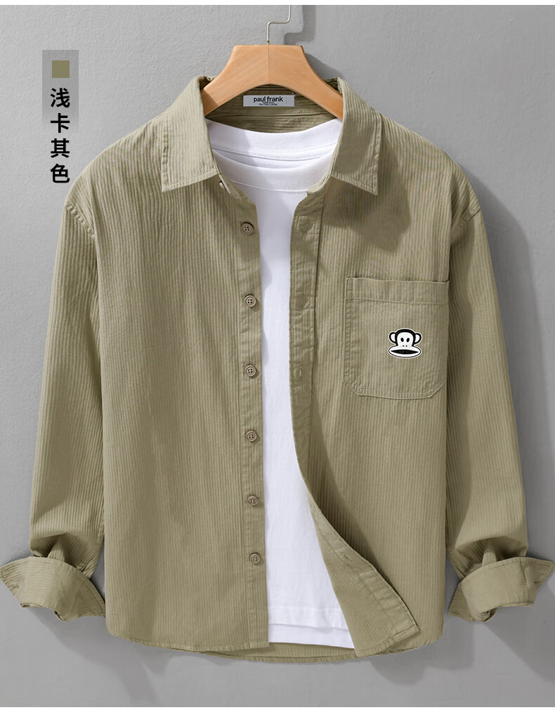大嘴猴(paul frank)纯棉休闲长袖衬衫男士春秋宽松潮牌外套上衣男装百搭新款翻领衬衣 9569C深卡色【官方正品】 L 【建议120-135斤】