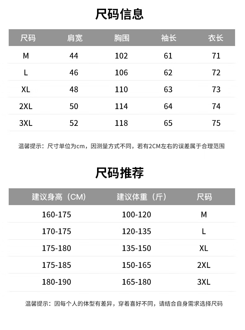 China (cm) 165 / 88-90 170 / 96-98 175 / 108-110 180 / 118-122 185 / 126-130