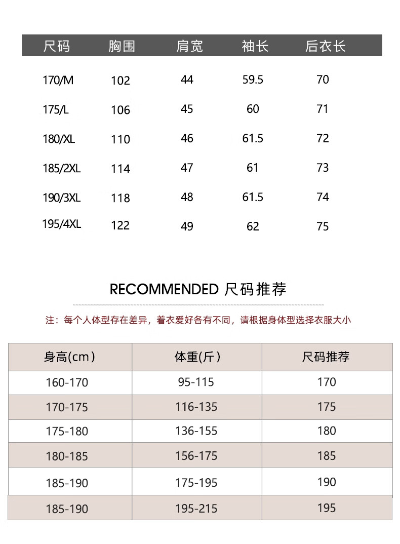 China (cm) 160-165/84-86 165-170 / 88-90 167-172 / 92-96 168-173 / 98-102 170-176 / 106-110