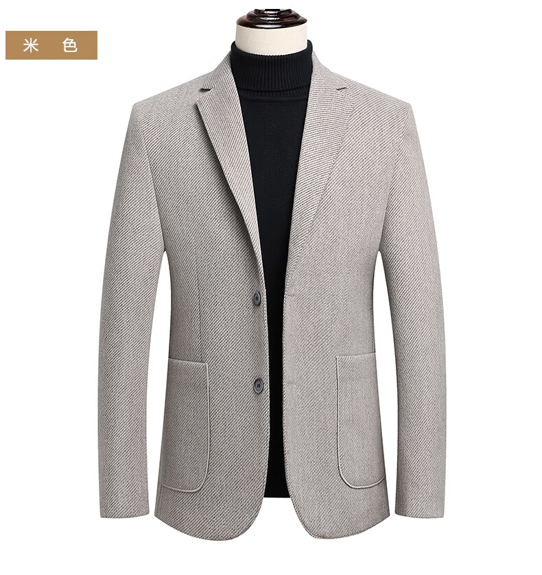 皮尔卡丹(pierre cardin)高端羊毛西装外套男士修身单西外套秋冬季高级商务免烫休闲西服男 25907米色 L 175【121-140斤】