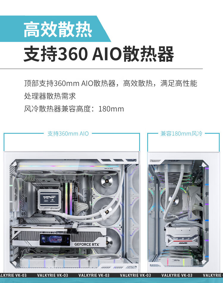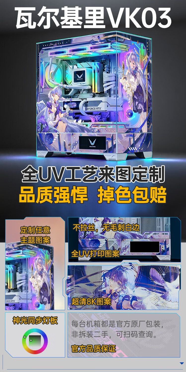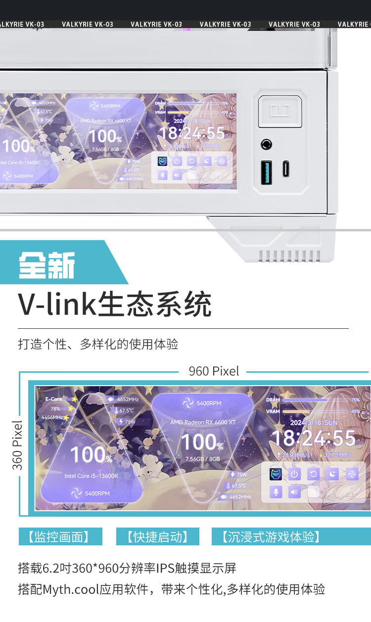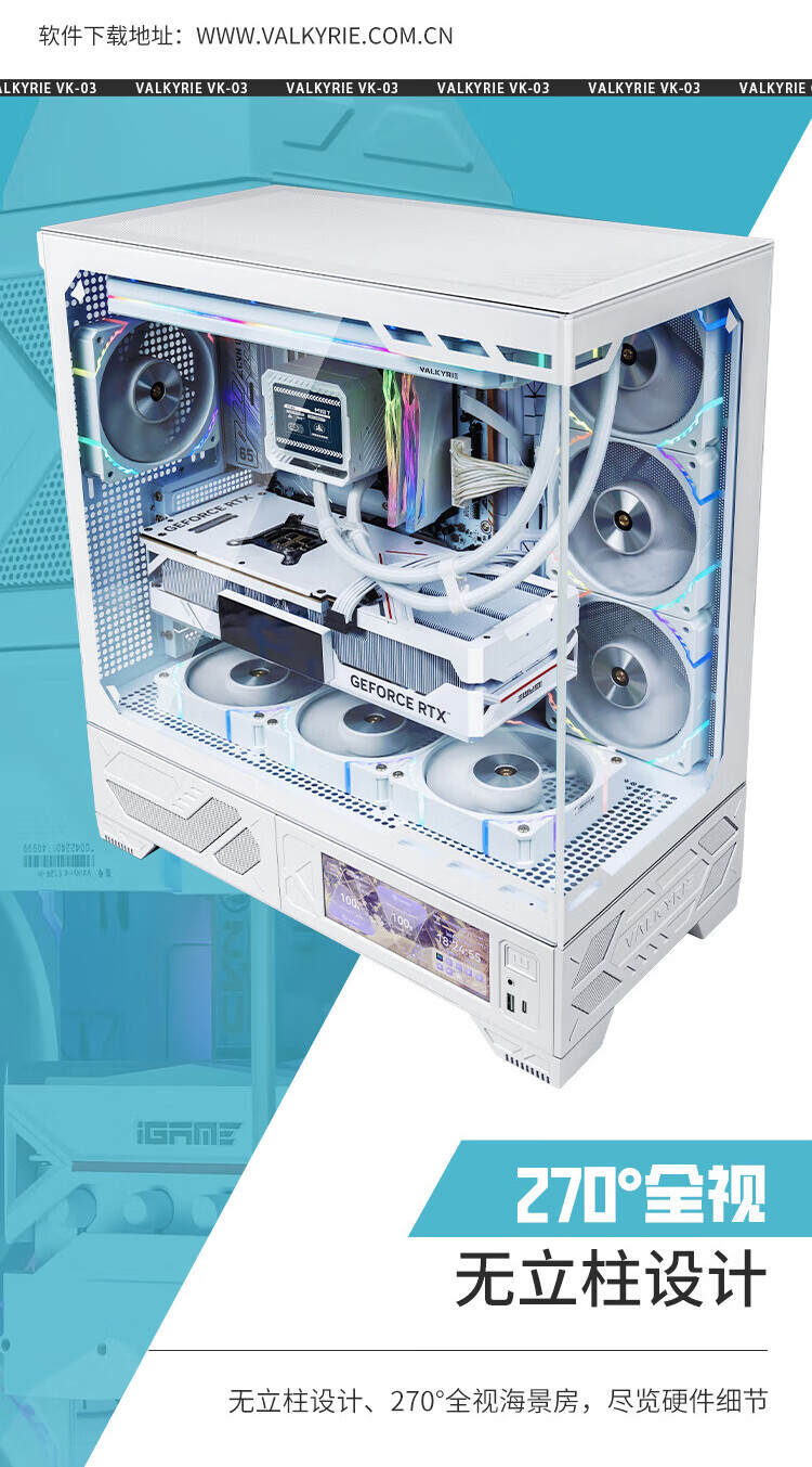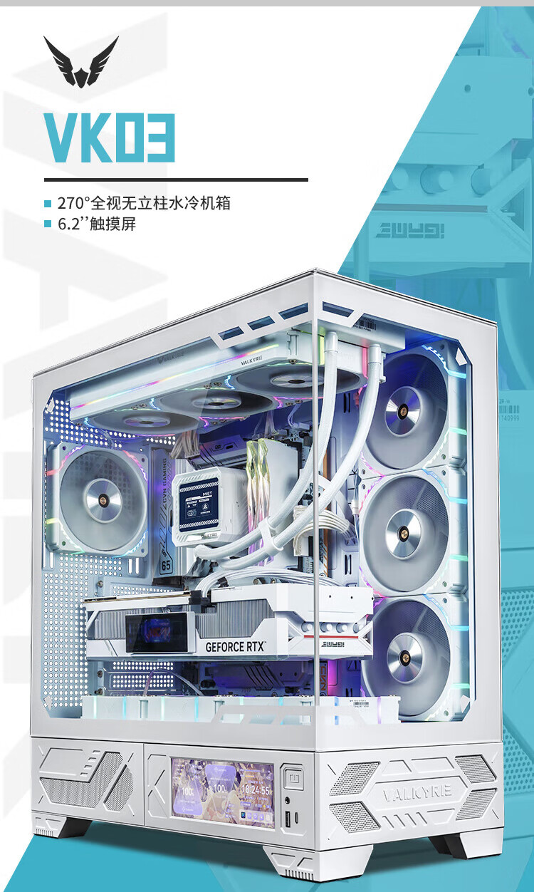 Valkyrie VK03 computer desktop white sea view room DIY main box custom shell UV printed luminous light board 360 water-cooled VK03 screen version + Shikuangqi three | does not include light board
