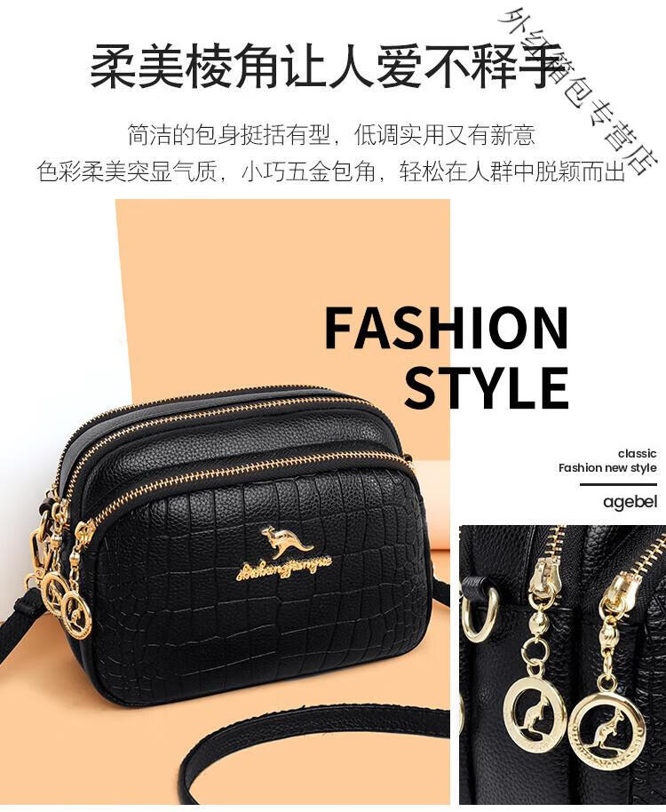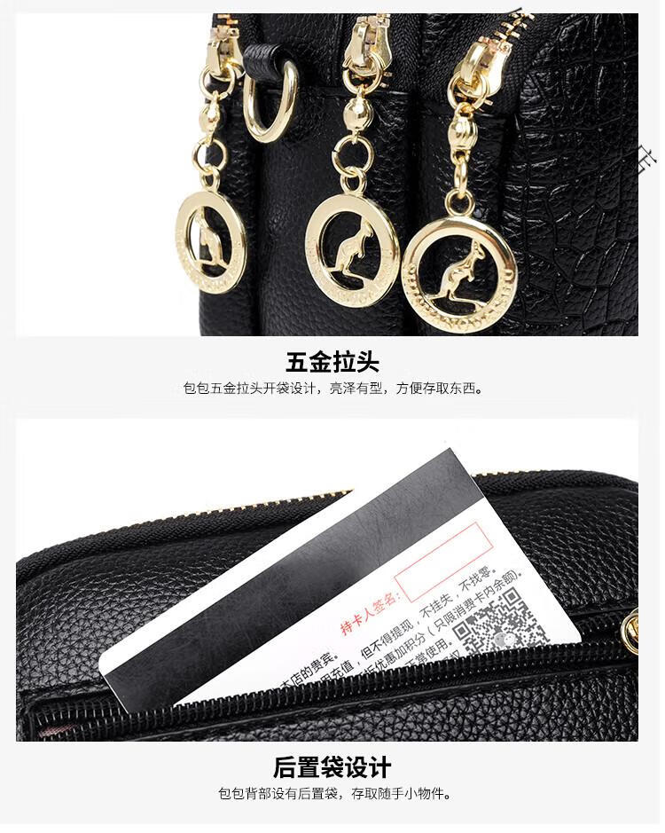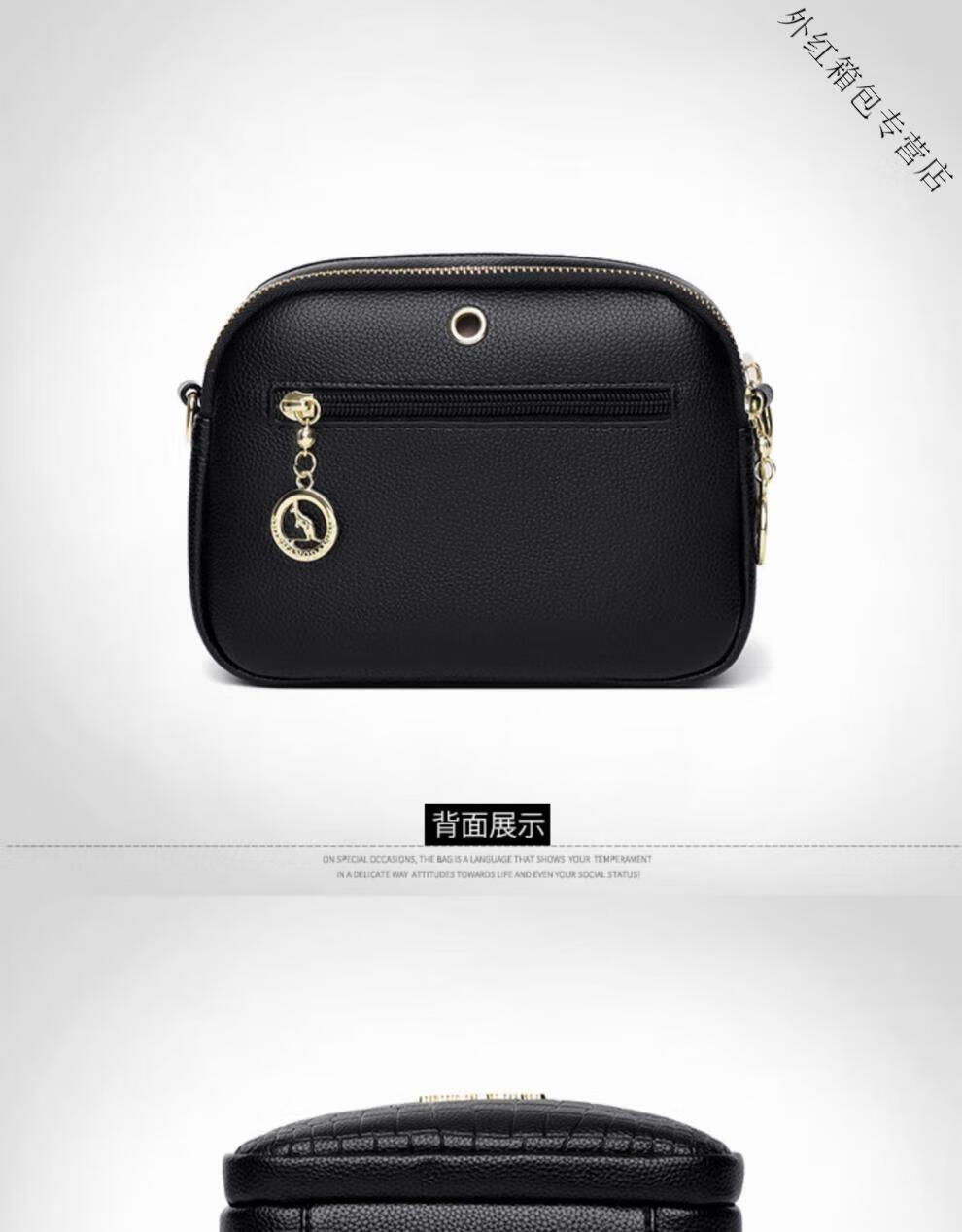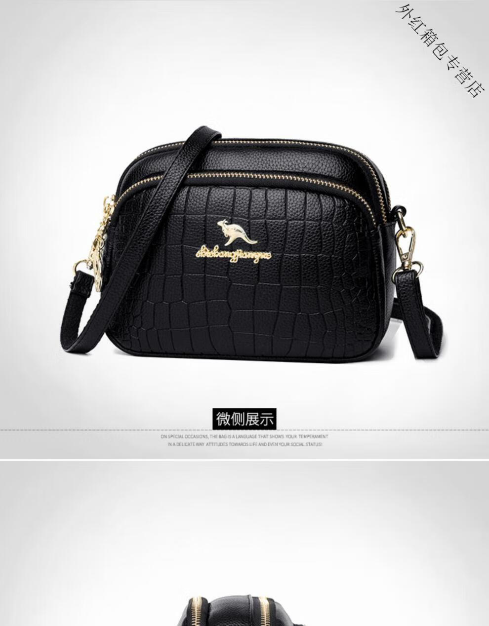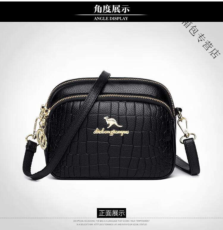 酷奇袋鼠(KUQIDAISHU)真皮小包包女2025七夕时尚单肩斜挎包中年妈妈女士手机零钱包 黑色