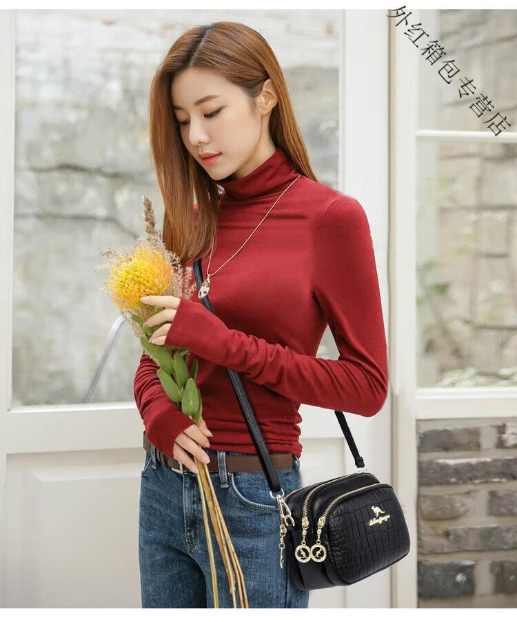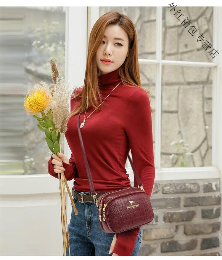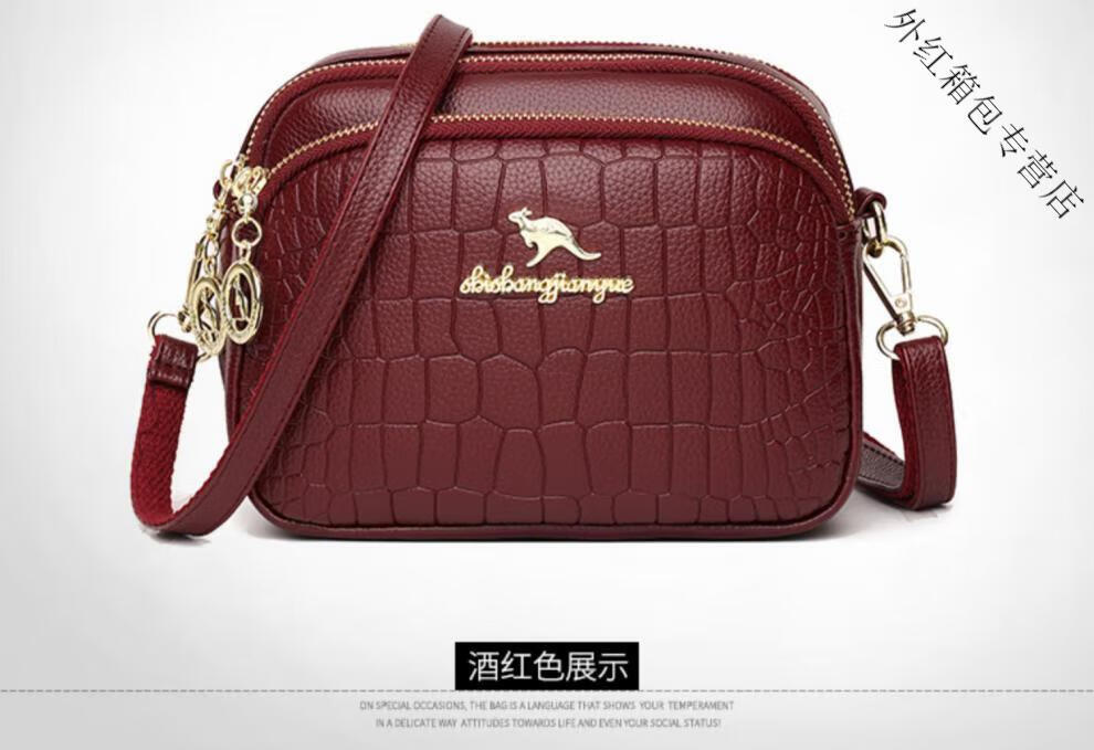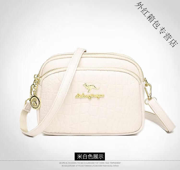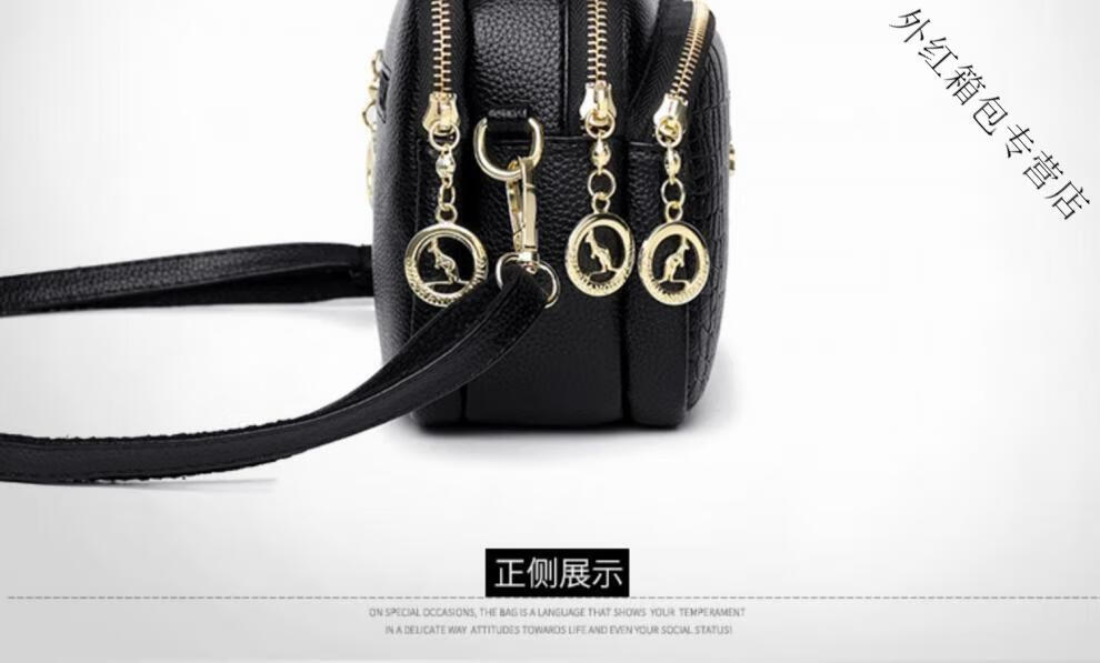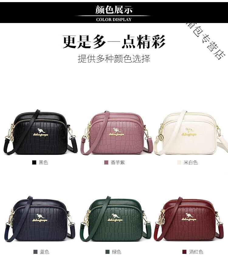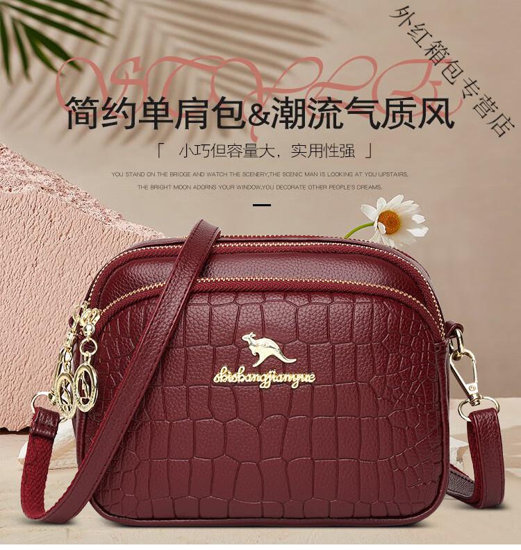 酷奇袋鼠(KUQIDAISHU)真皮小包包女2025七夕时尚单肩斜挎包中年妈妈女士手机零钱包 黑色