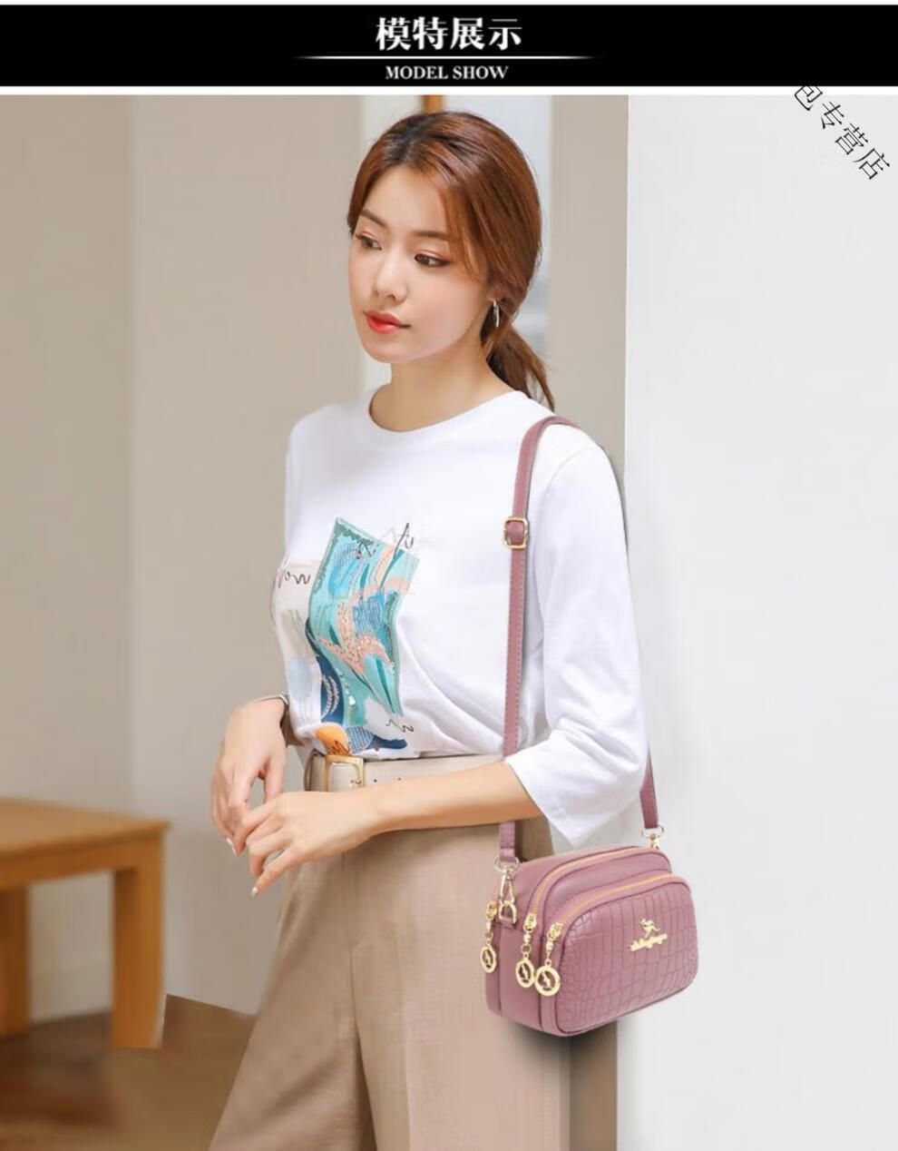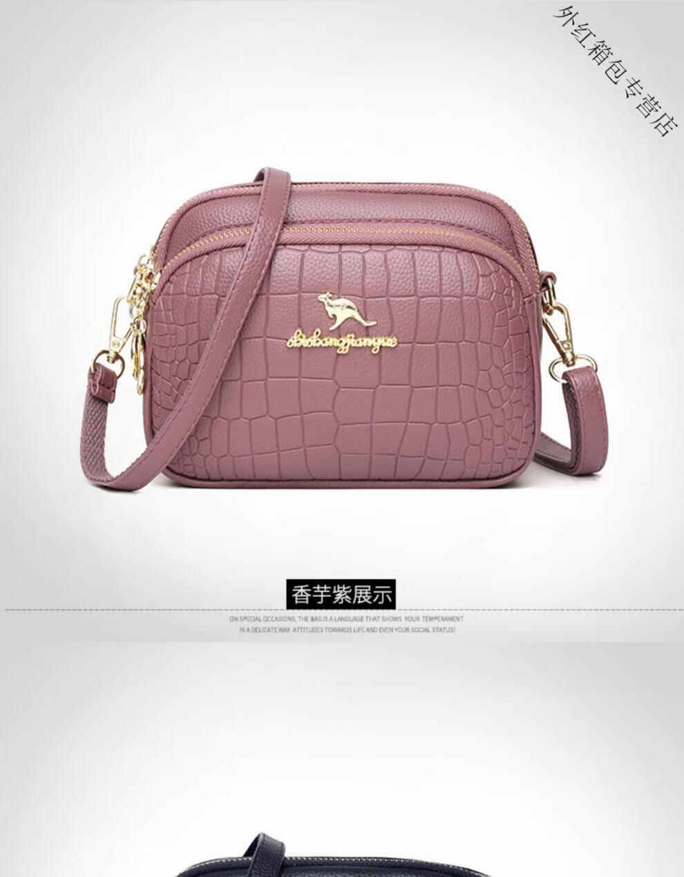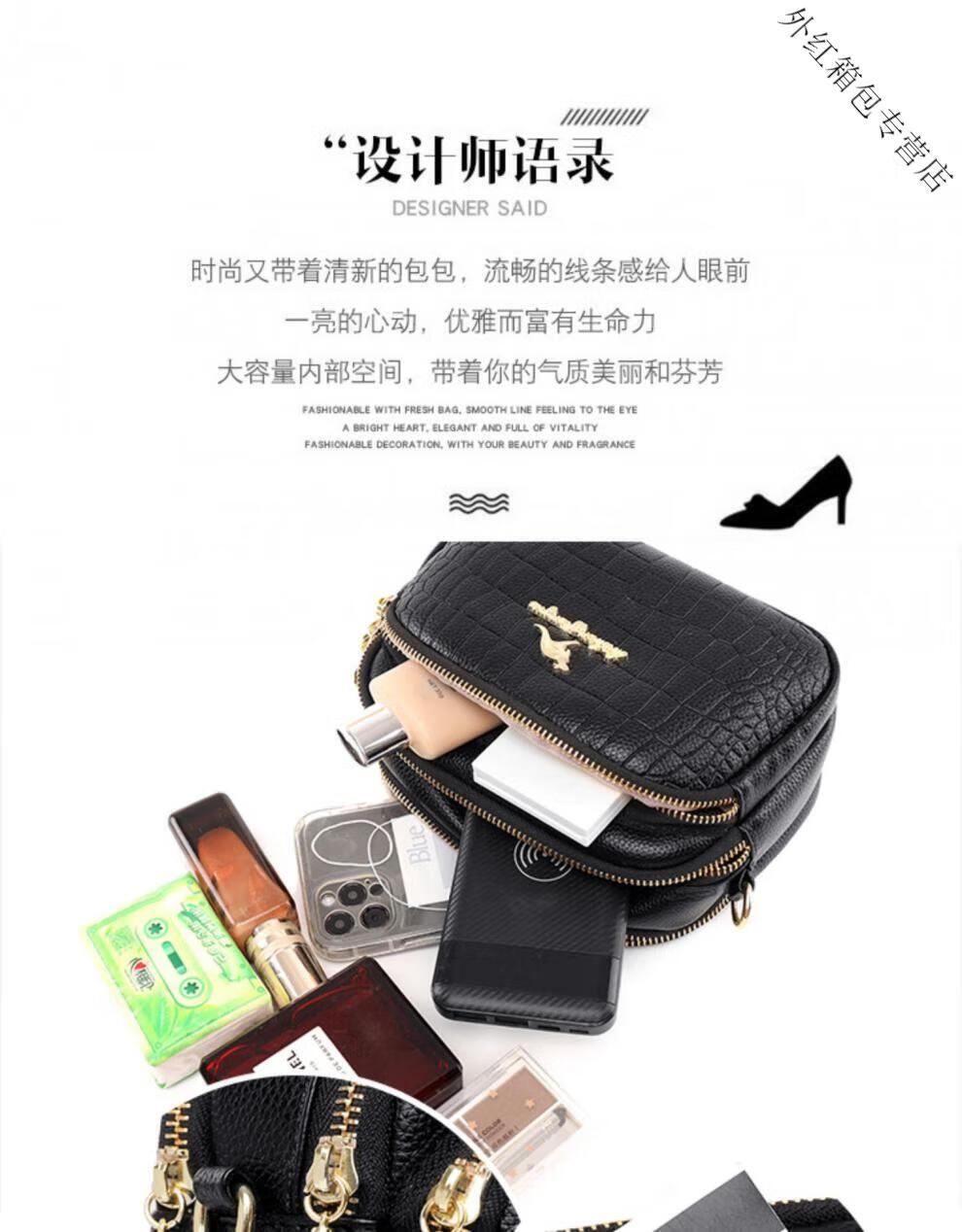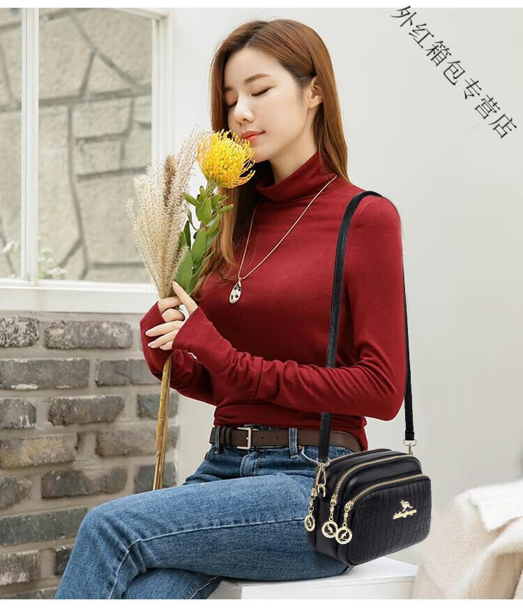 酷奇袋鼠(KUQIDAISHU)真皮小包包女2025七夕时尚单肩斜挎包中年妈妈女士手机零钱包 黑色