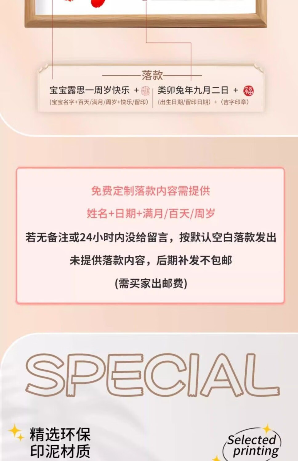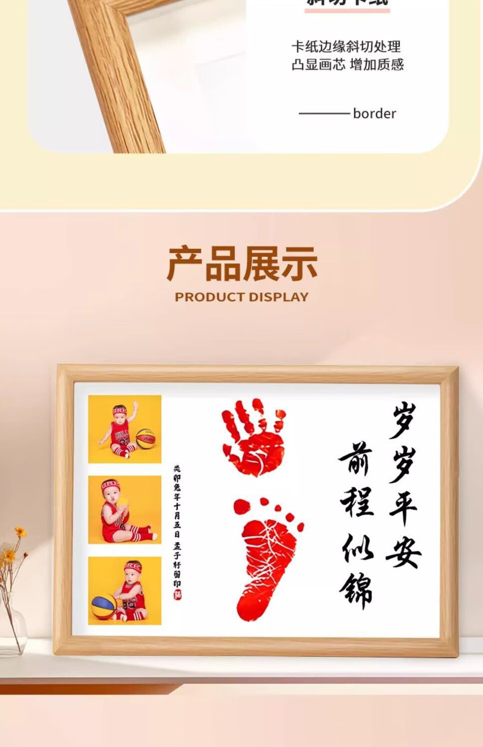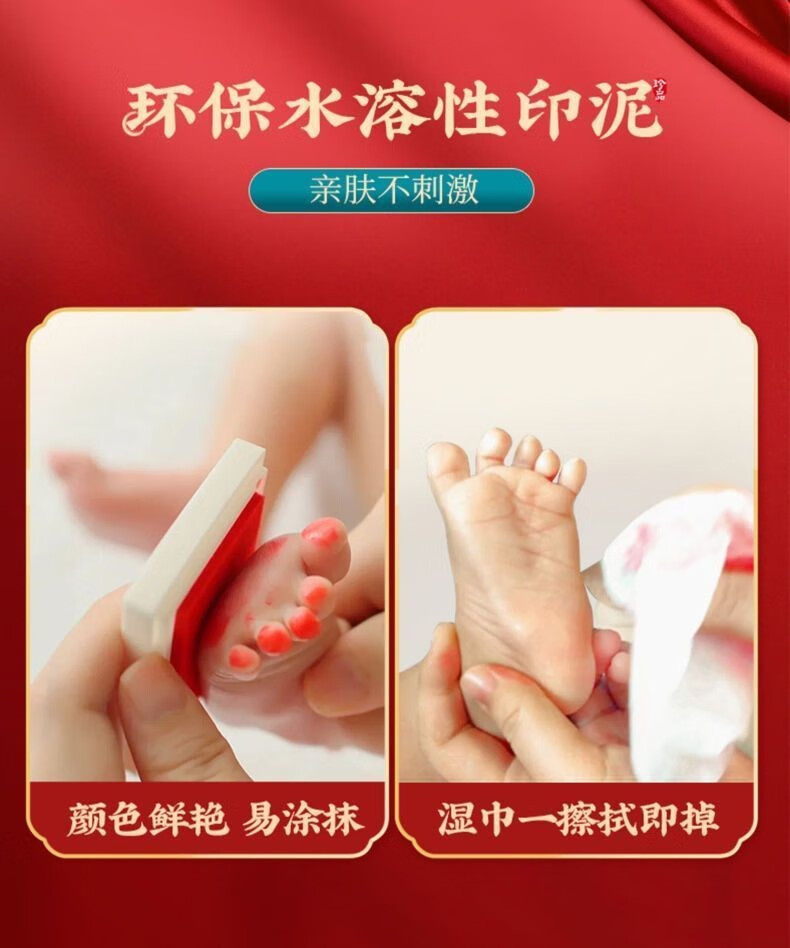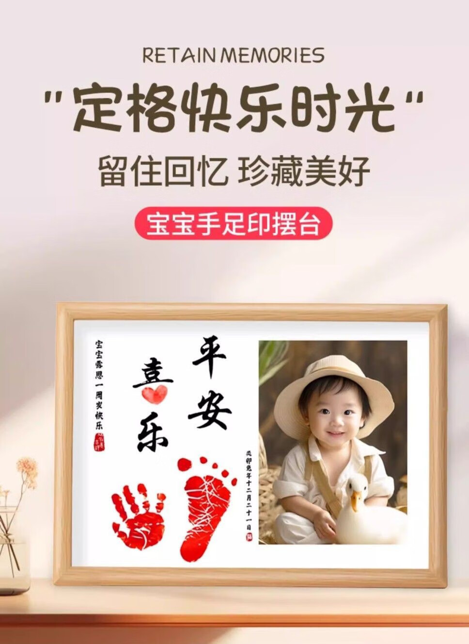 宝宝满月周岁一岁一礼百天脚印相框手足印留纪念品字画仪式感道具 a4顺遂无忧平安喜乐