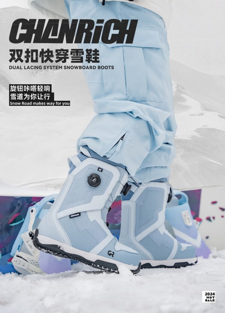 CHANRICH快穿单板滑雪鞋双扣旋钮 男女 保暖防水全能刻滑平花自由式滑雪靴 经典黑 42