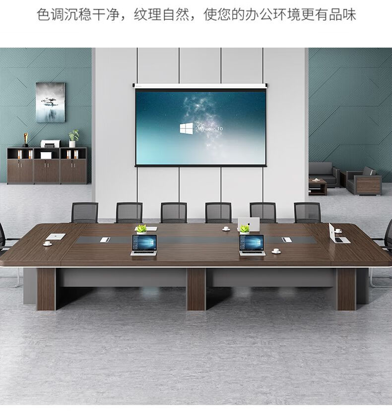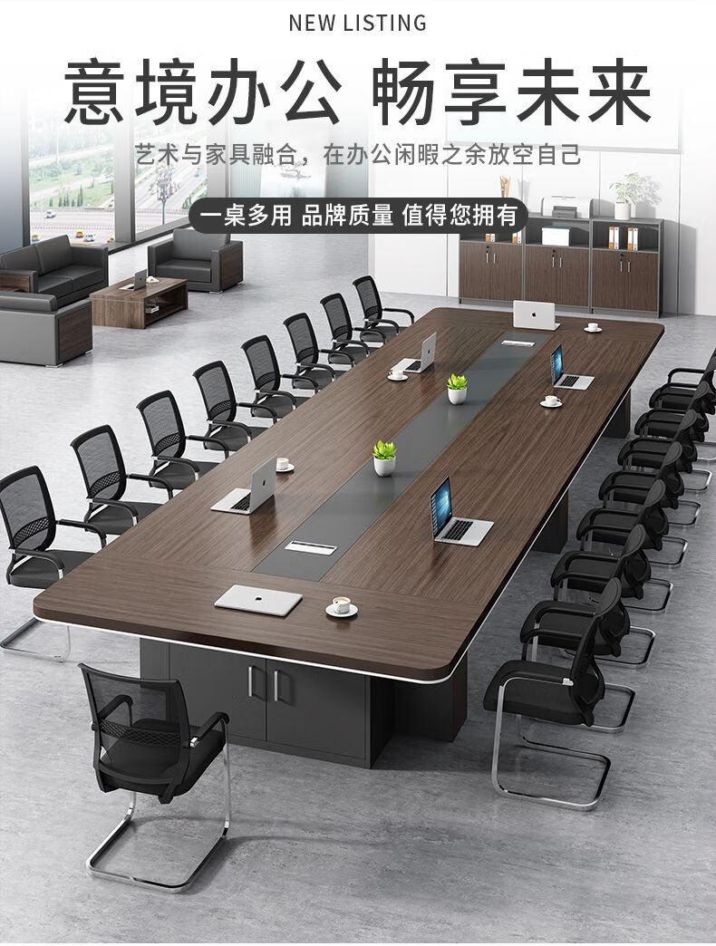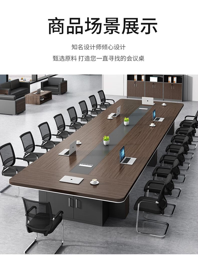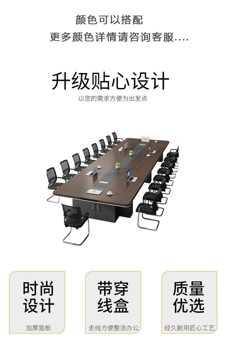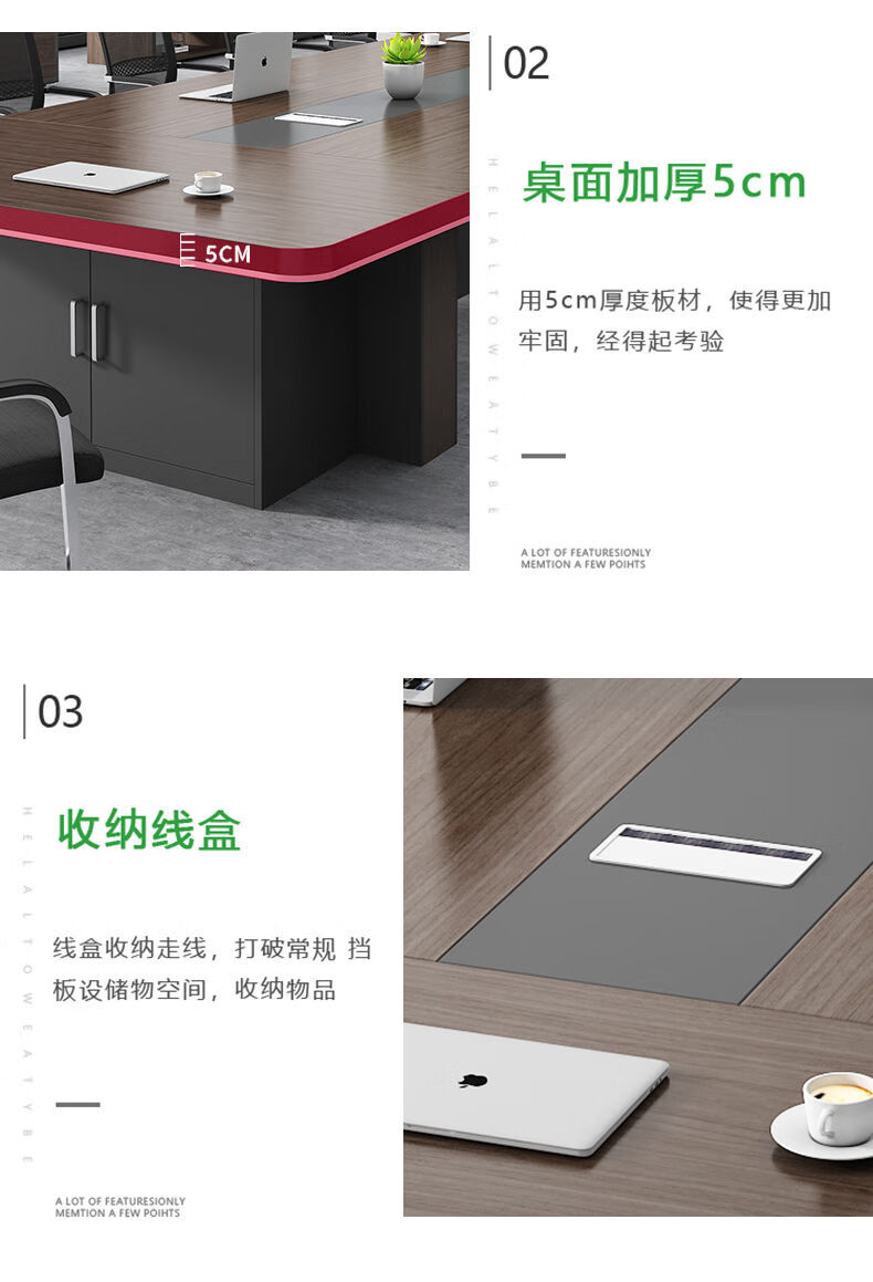 格之木会议桌长桌简约现代大型会议室洽谈培训员工长条桌圆角办公桌椅 楷模橡木色 3.5*1.5米会议桌加厚带储物柜