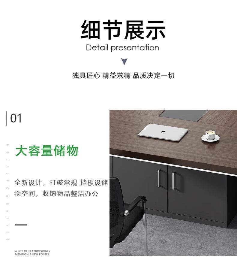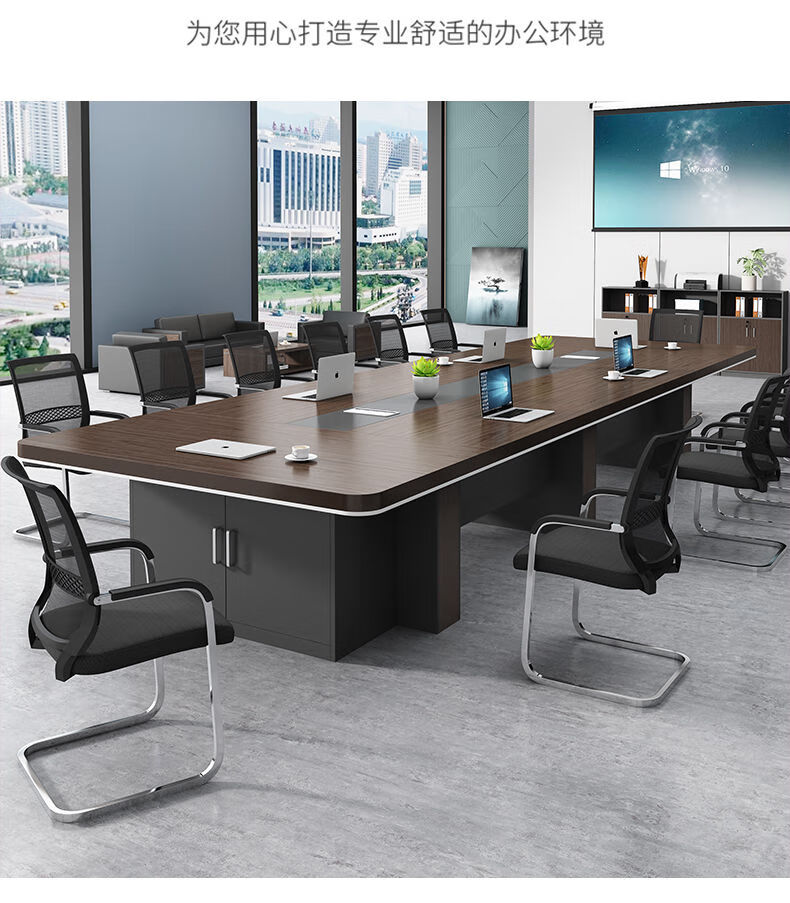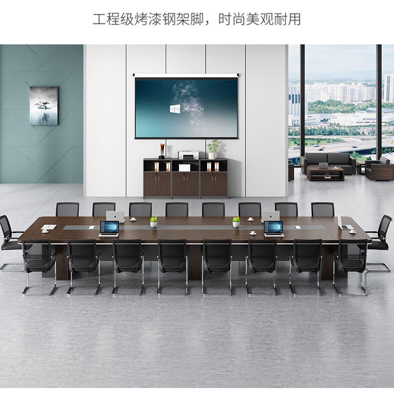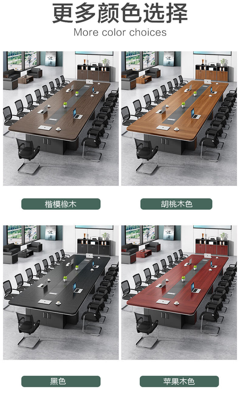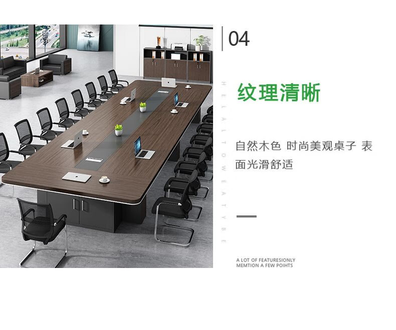 格之木会议桌长桌简约现代大型会议室洽谈培训员工长条桌圆角办公桌椅 楷模橡木色 3.5*1.5米会议桌加厚带储物柜