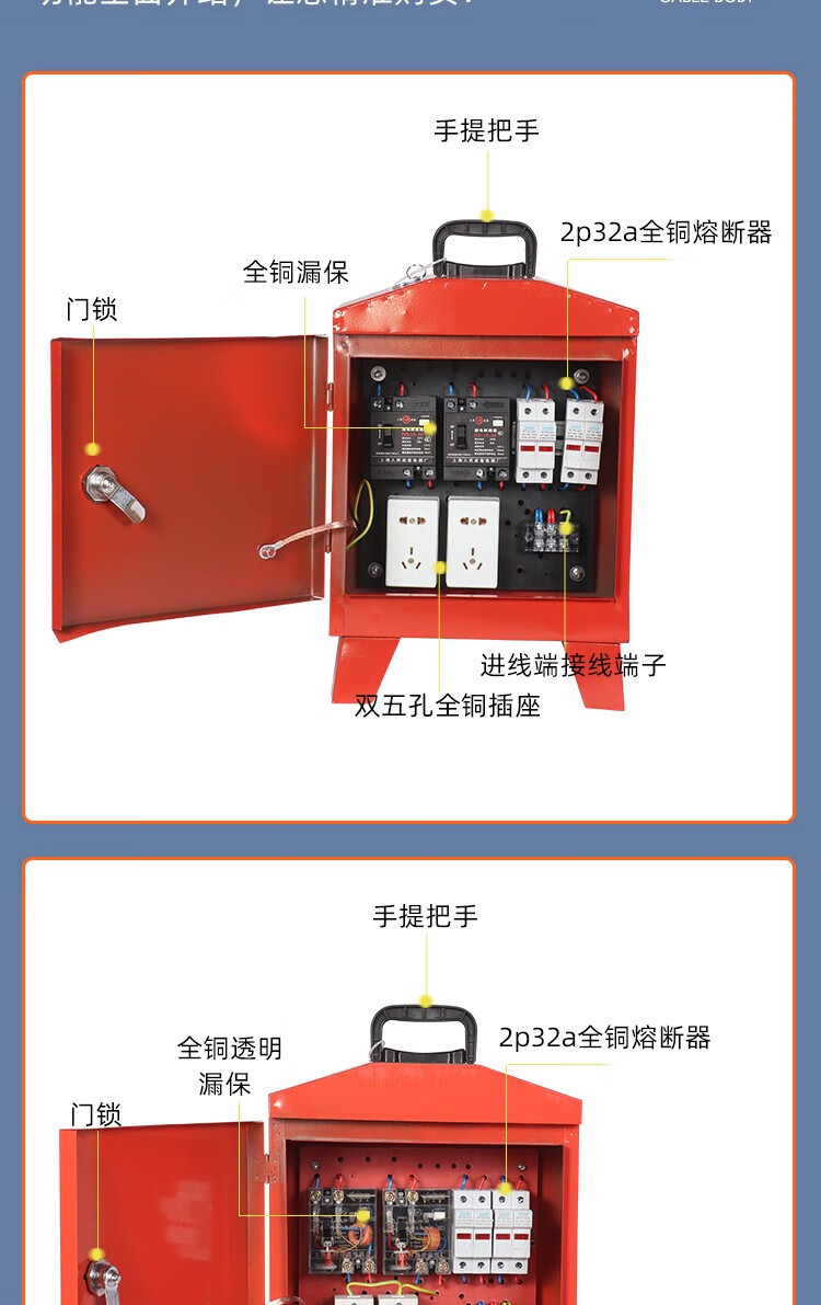 立始临时移动小电箱工地三级配电箱装修手提带漏保工业防爆水220v380v 两相四位工业插座电箱全空开款