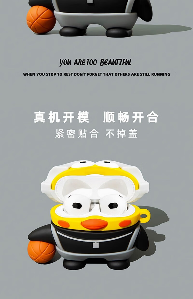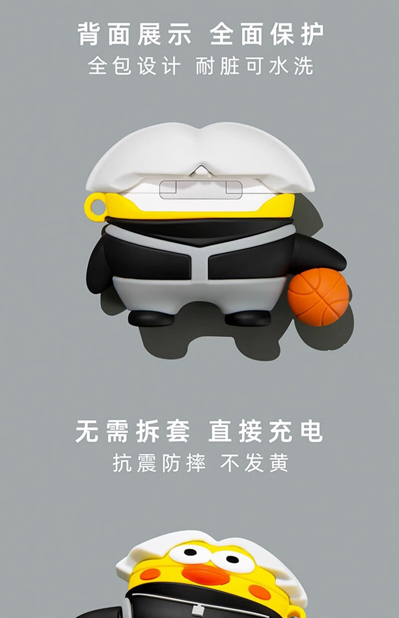 Jingyuan Geeignet für AirPods4 Schutzhülle 2024 Neue Apple-Kopfhörerhülle der vierten Generation, Geräuschreduzierung, Kopfhörerhülle, Silikon-Softcase, Quack Duck Anti-Fall-Schutzhülle, umgekehrter Fat Tiger Split + Haken, AirPods-Schutzhülle der vierten Generation
