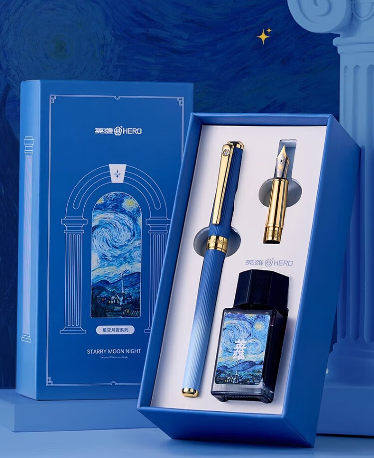 英雄英雄钢笔礼盒送礼学生礼物男士女士高档精致成人专用办公商务男女生高颜值女老师生日礼品定制刻字 池塘睡莲-紫【双笔头】 配赠:0.38mm笔头 0.5mm明尖【明尖常规/直尖】