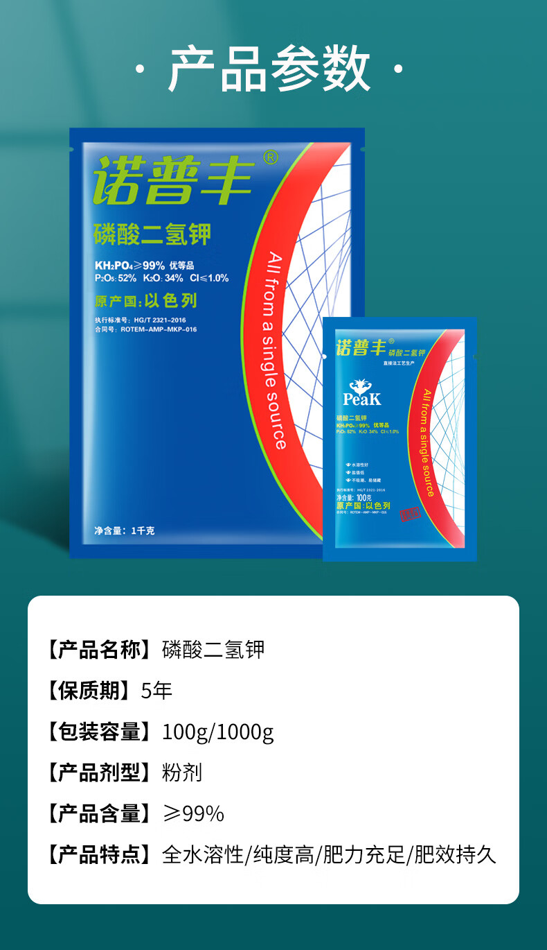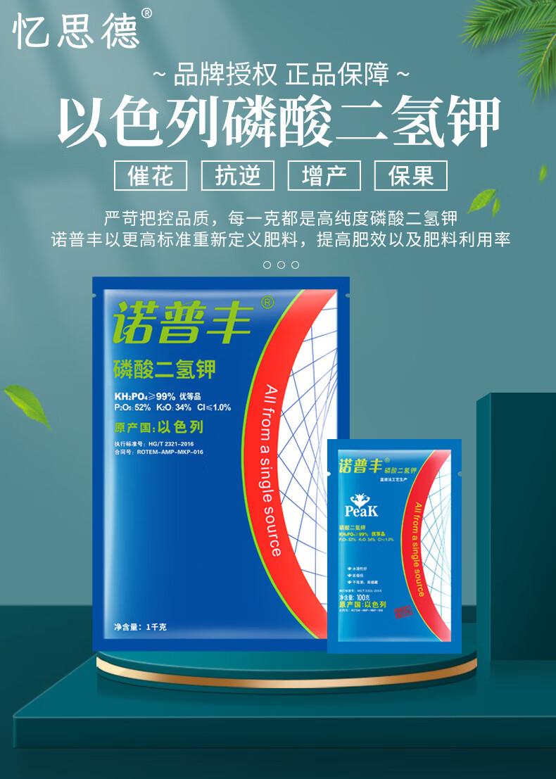 以色列进口 诺普丰磷酸二氢钾正品农用保花保果冲施肥水溶肥料 100g