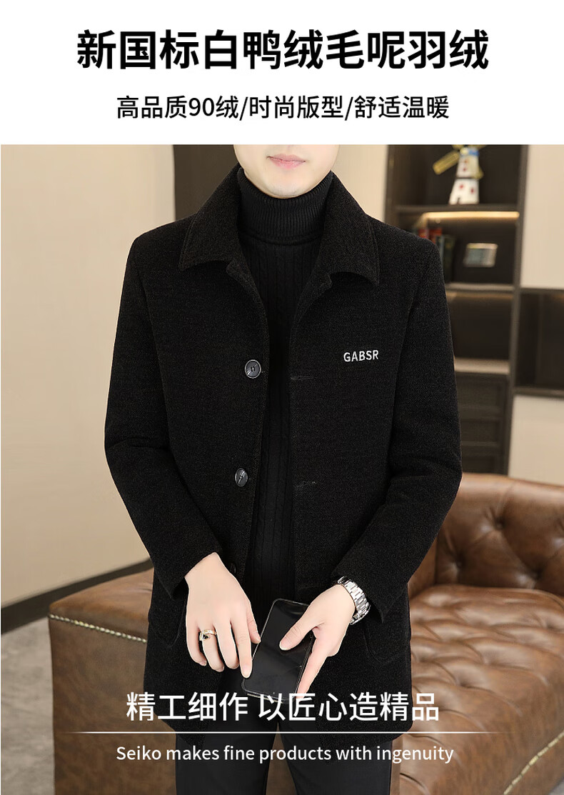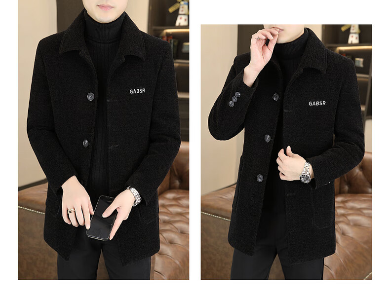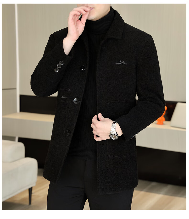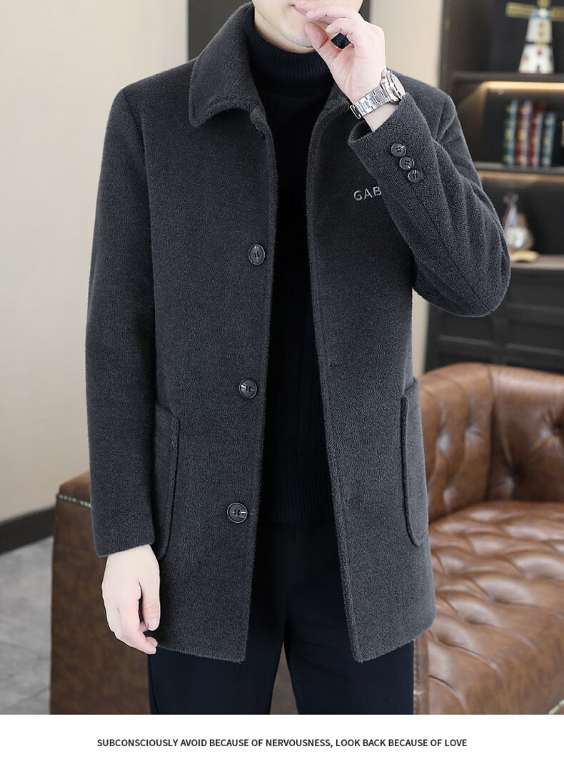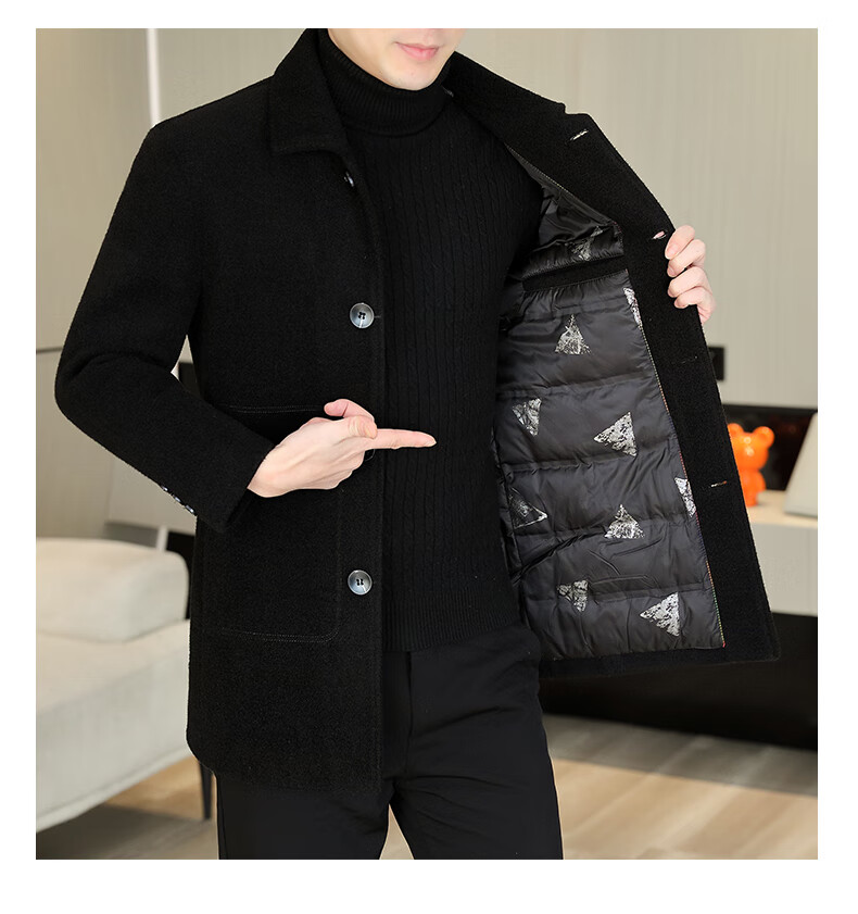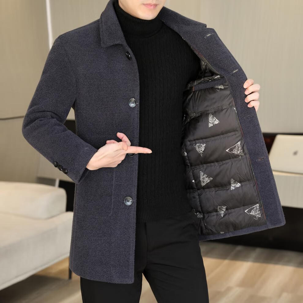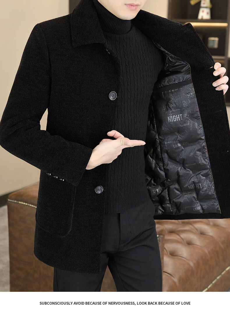 Pierre Cardin hiver épaissi mi-long manteau en laine laine doudoune chaude pour hommes veste décontracté revers vison vêtements nouveau produit 88601/noir/coton style tissu de laine M