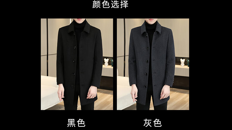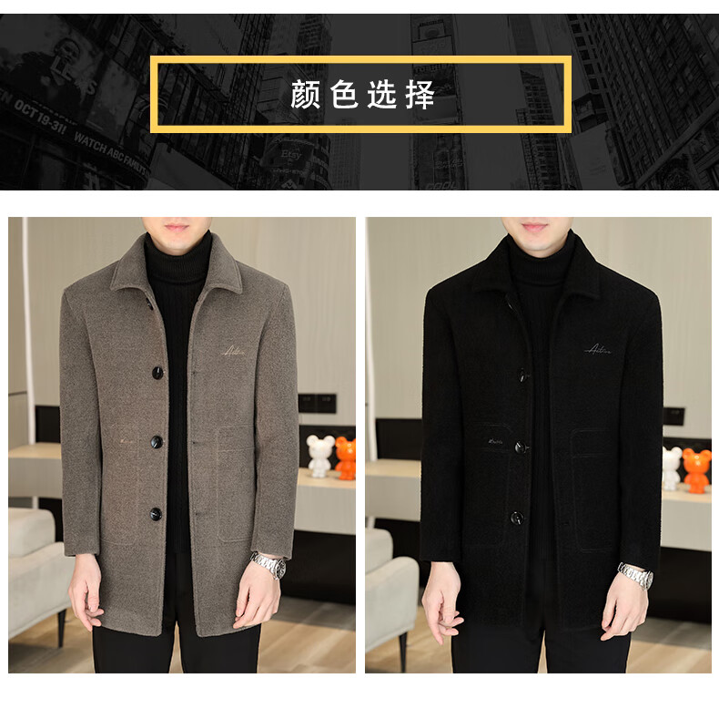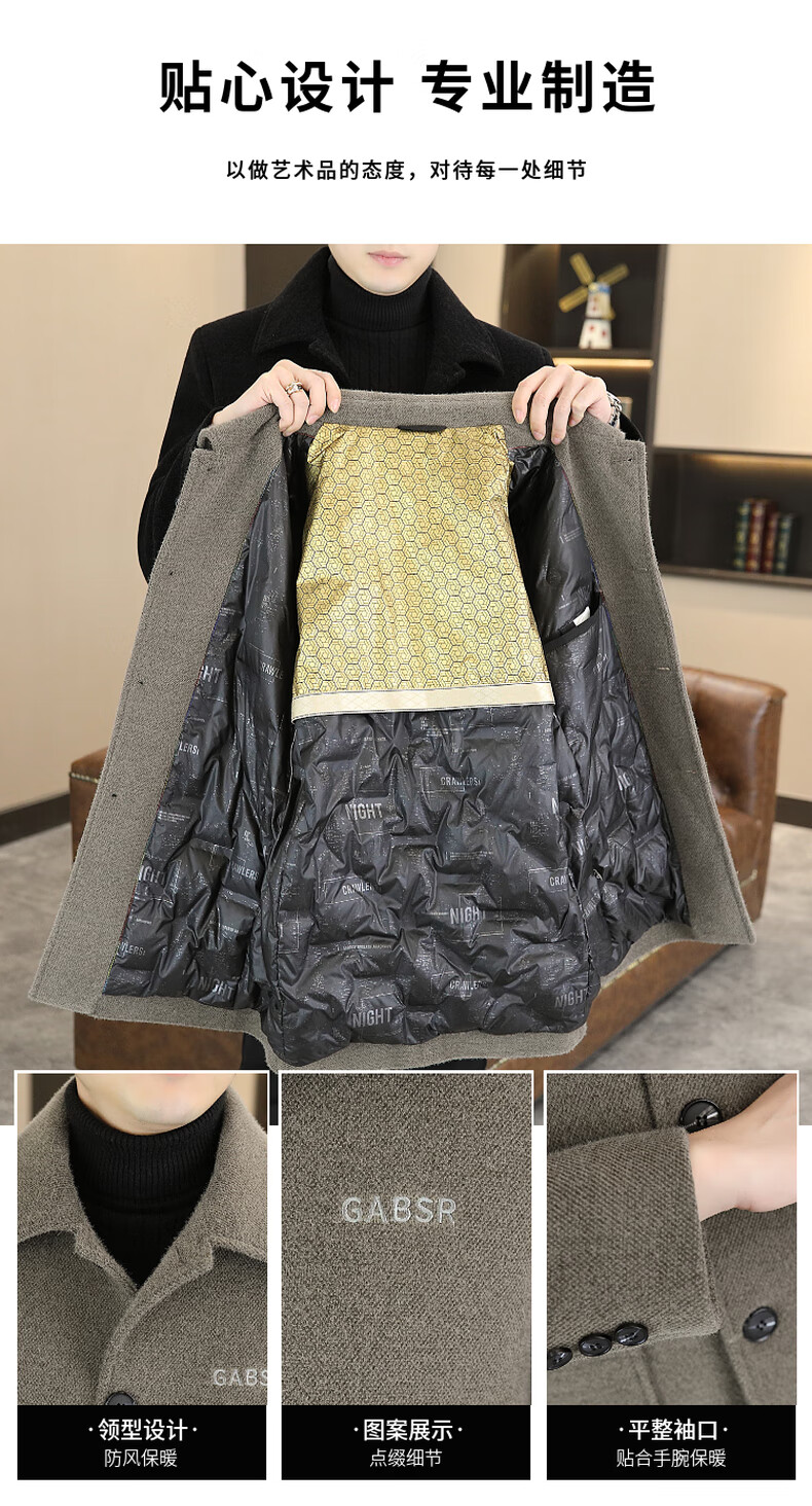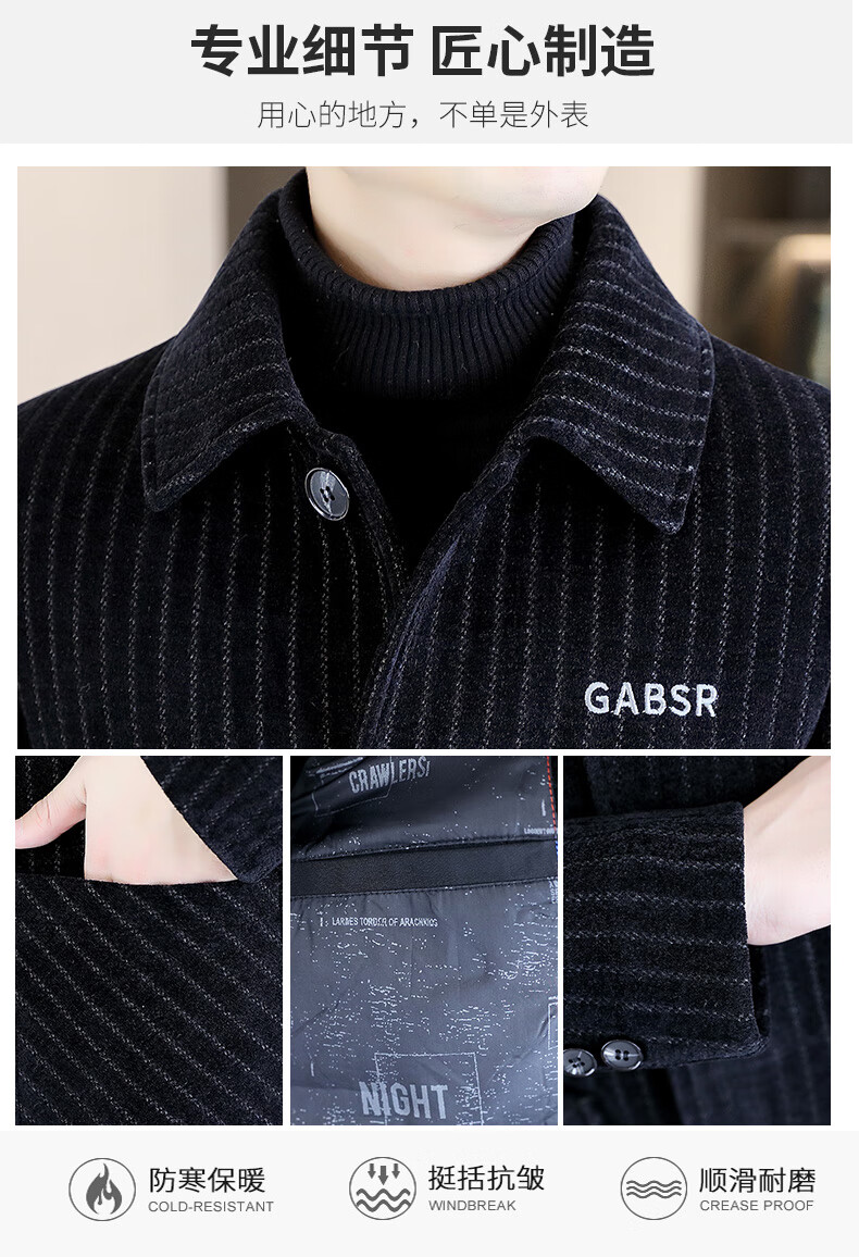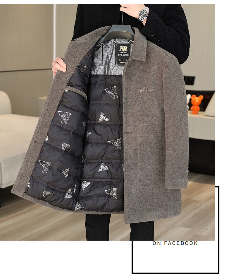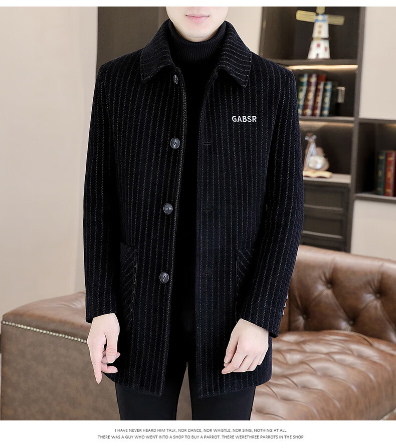 Pierre Cardin hiver épaissi mi-long manteau en laine laine doudoune chaude pour hommes veste décontracté revers vison vêtements nouveau produit 88601/noir/coton style tissu de laine M