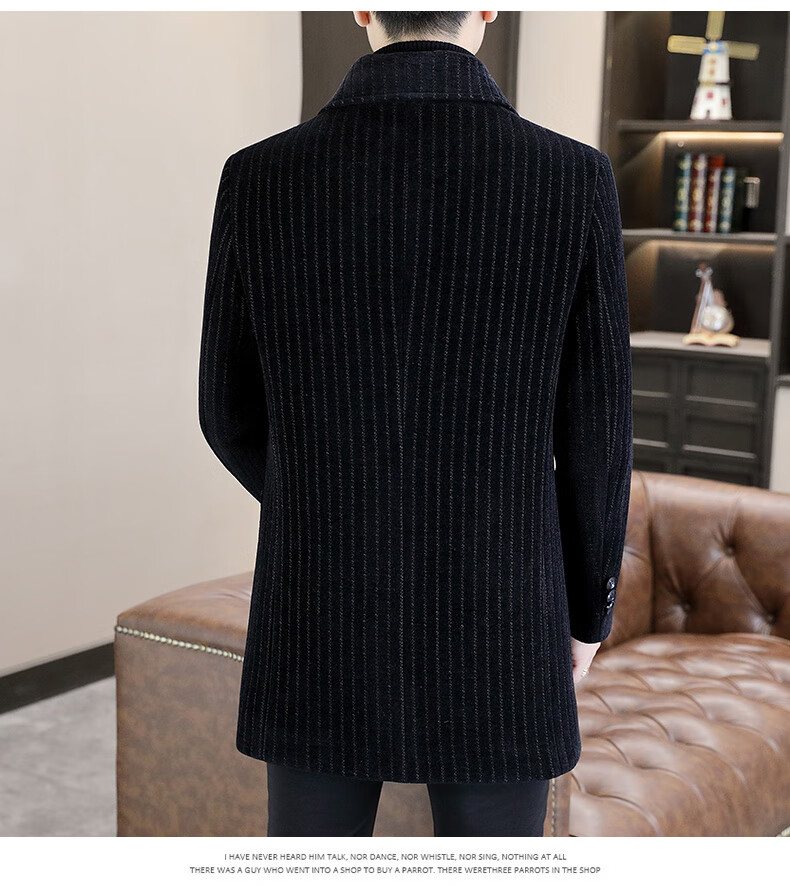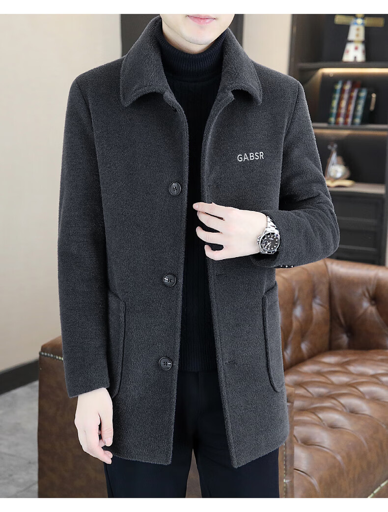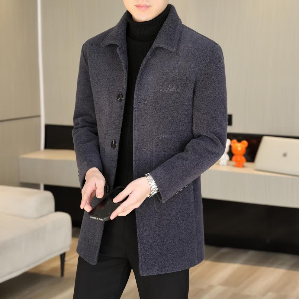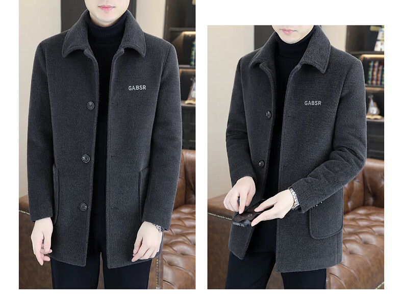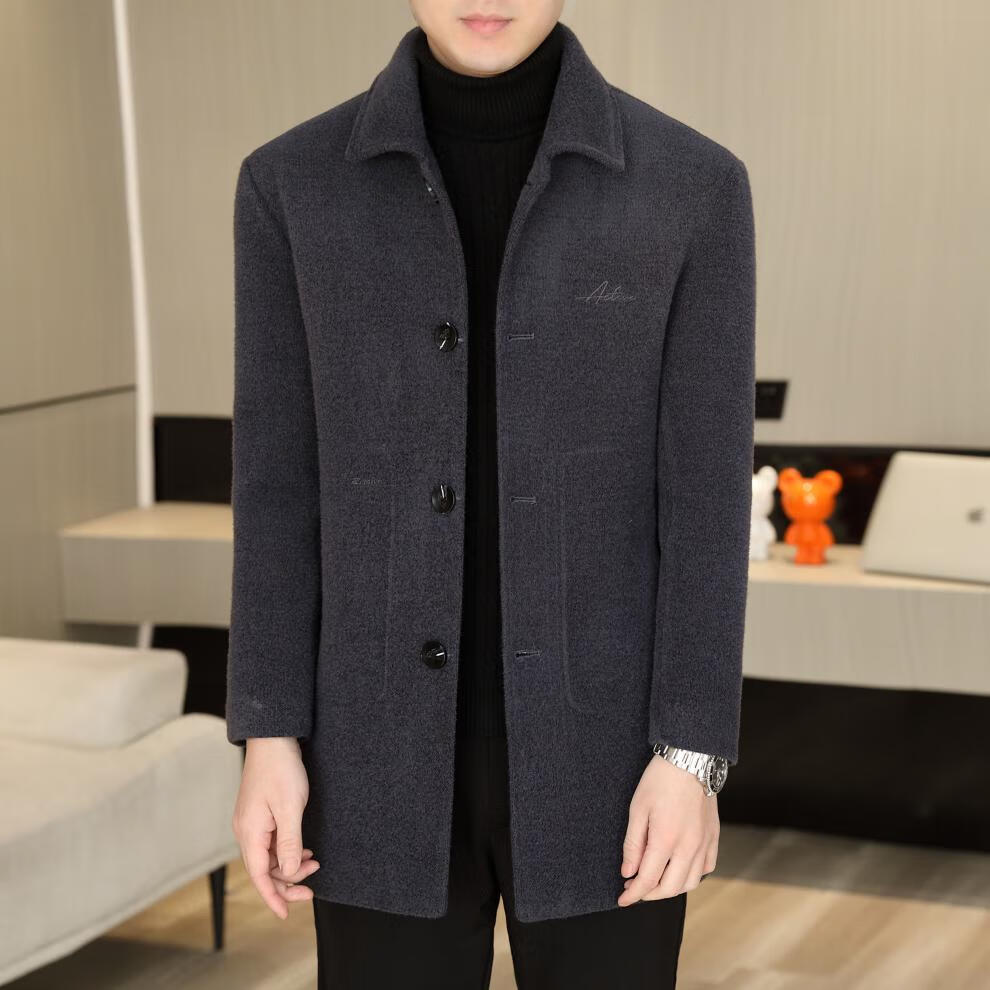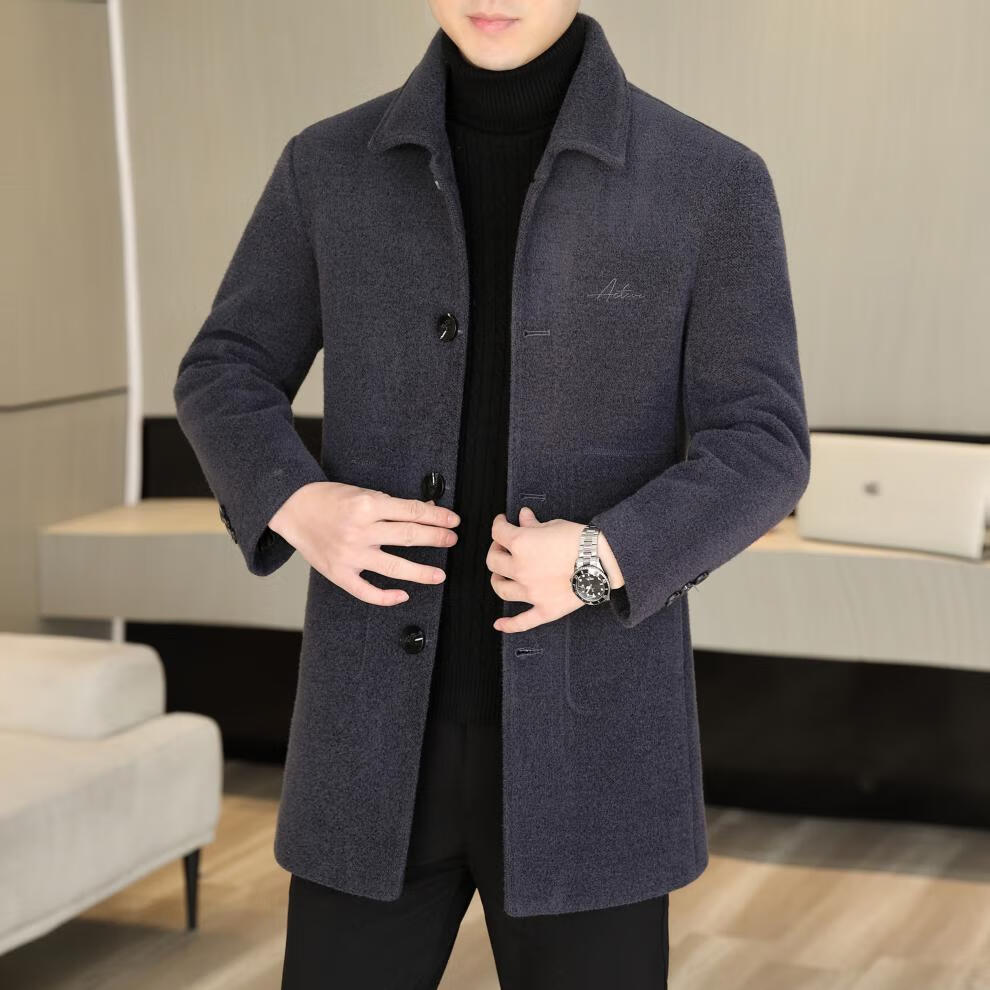 Pierre Cardin hiver épaissi mi-long manteau en laine laine doudoune chaude pour hommes veste décontracté revers vison vêtements nouveau produit 88601/noir/coton style tissu de laine M