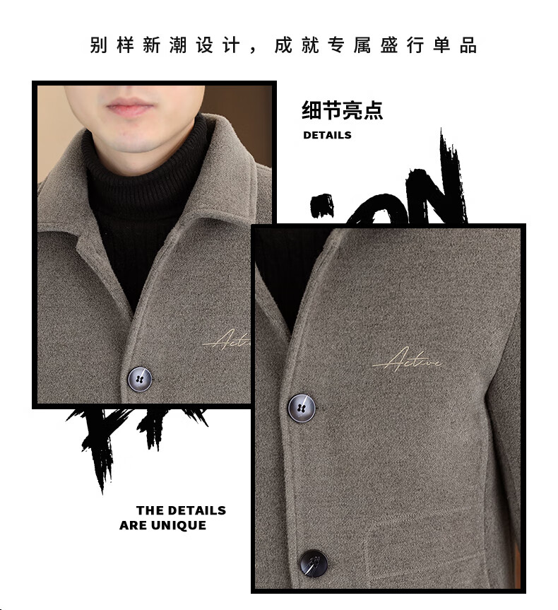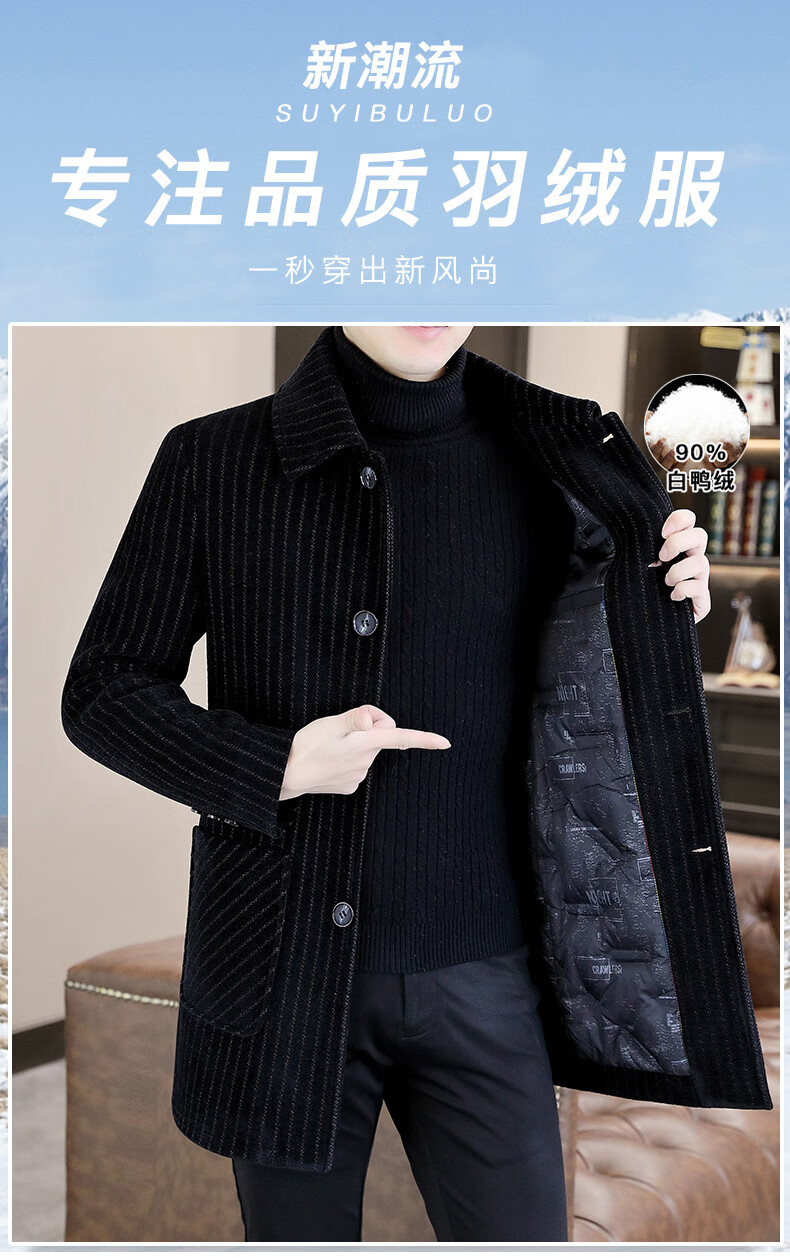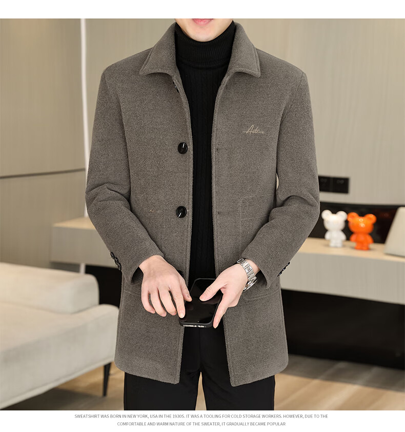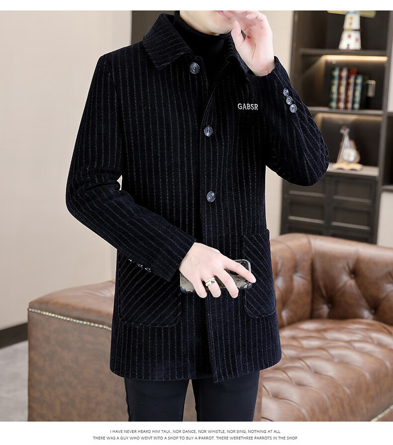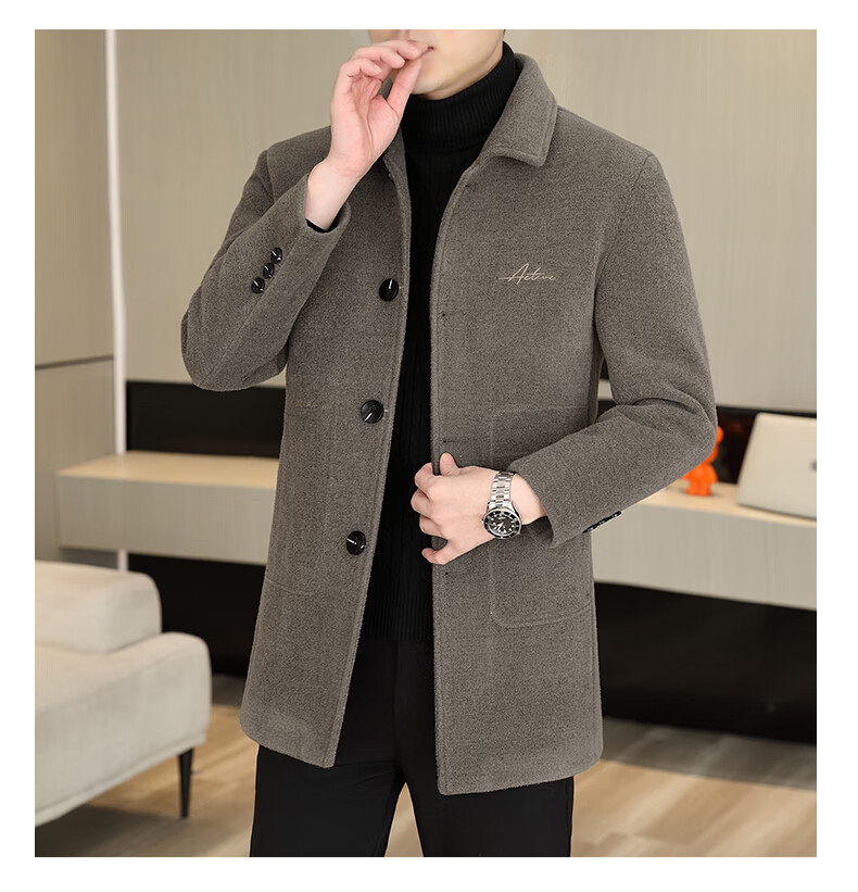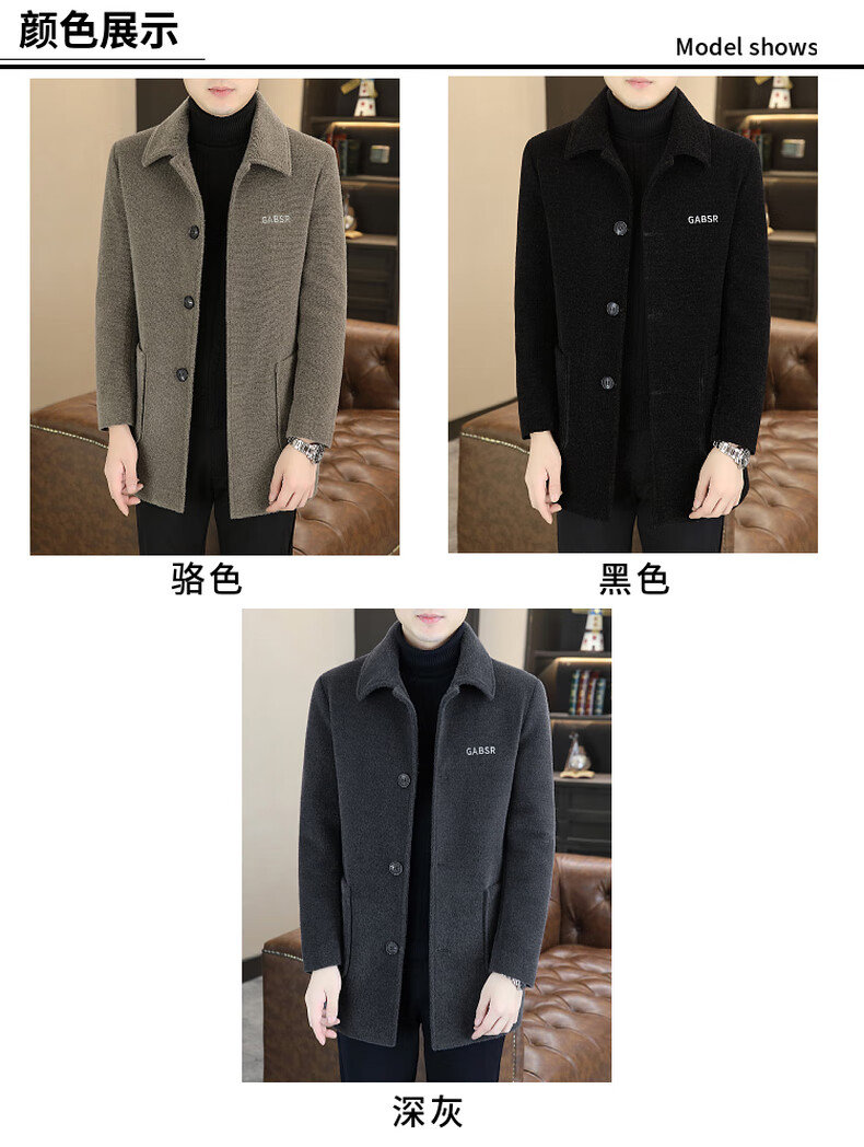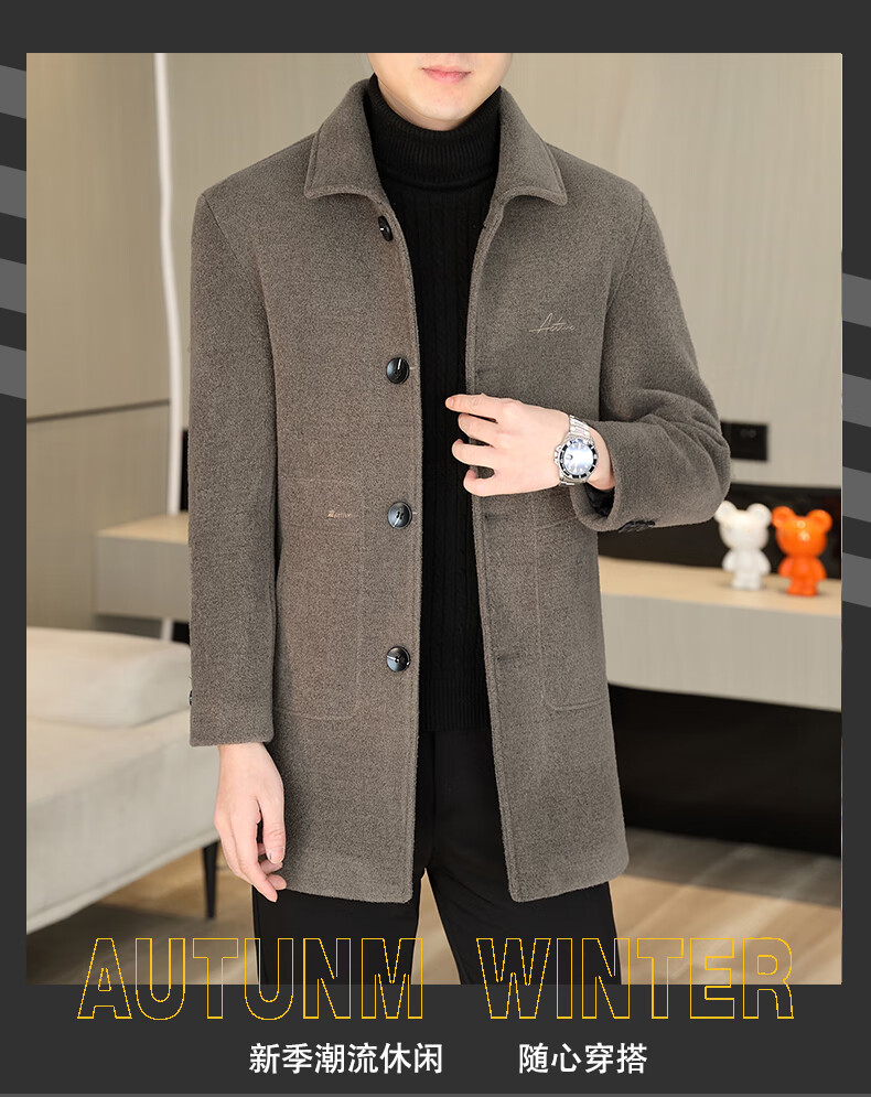 Pierre Cardin hiver épaissi mi-long manteau en laine laine doudoune chaude pour hommes veste décontracté revers vison vêtements nouveau produit 88601/noir/coton style tissu de laine M