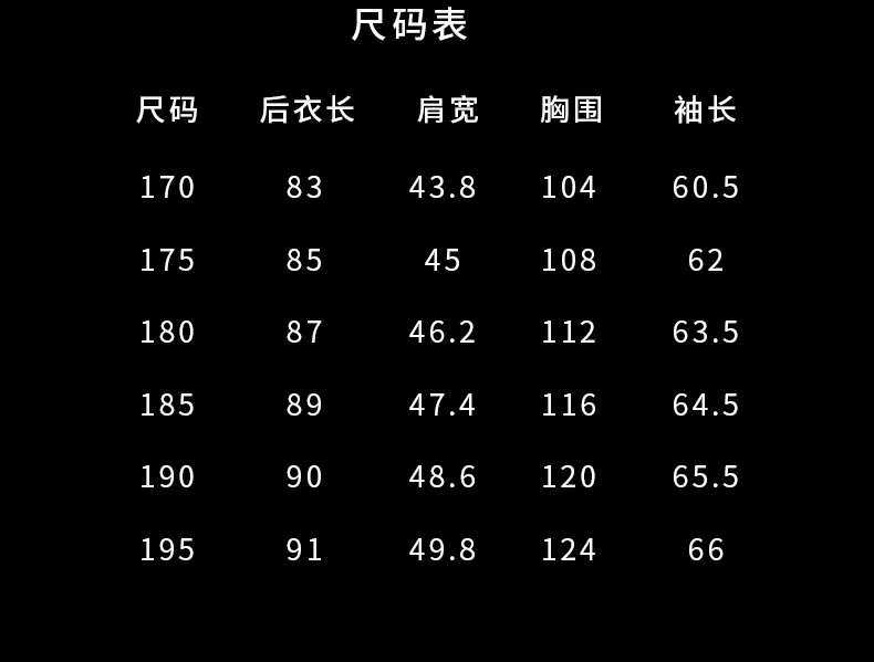 China (cm) 160-165/84-86 165-170 / 88-90 167-172 / 92-96 168-173 / 98-102 170-176 / 106-110