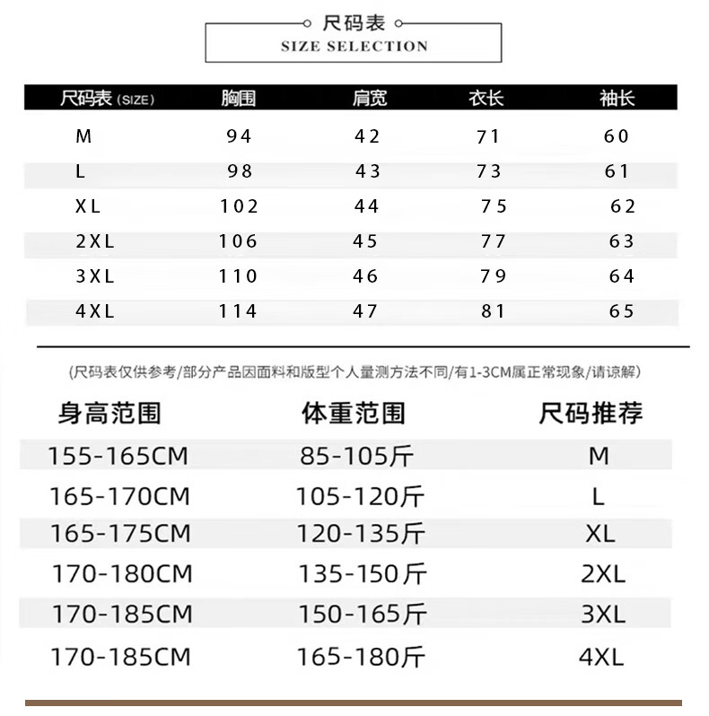 China (cm) 165 / 88-90 170 / 96-98 175 / 108-110 180 / 118-122 185 / 126-130