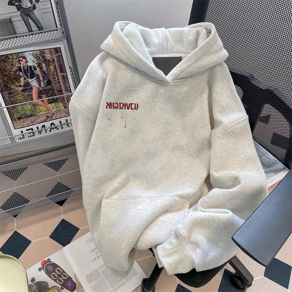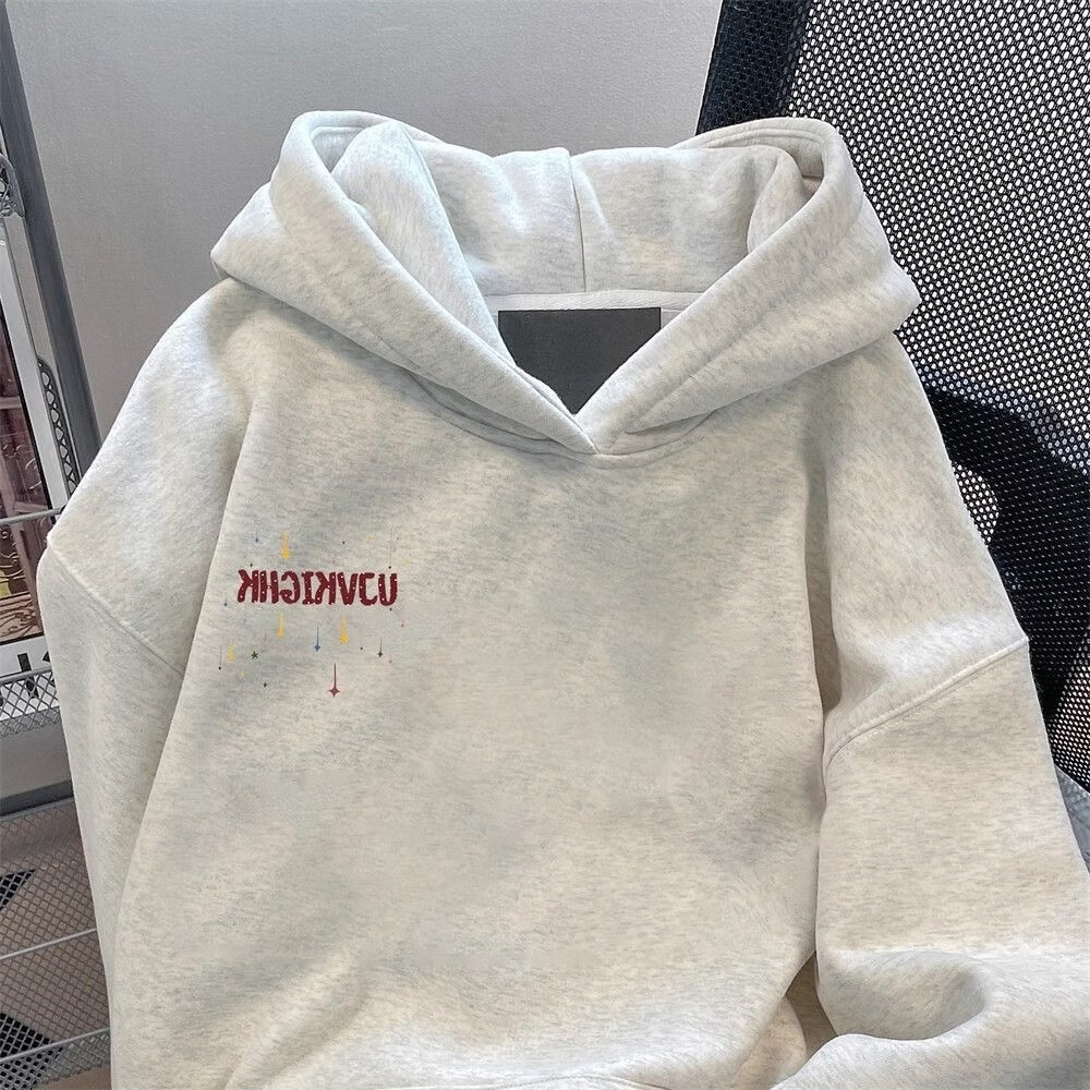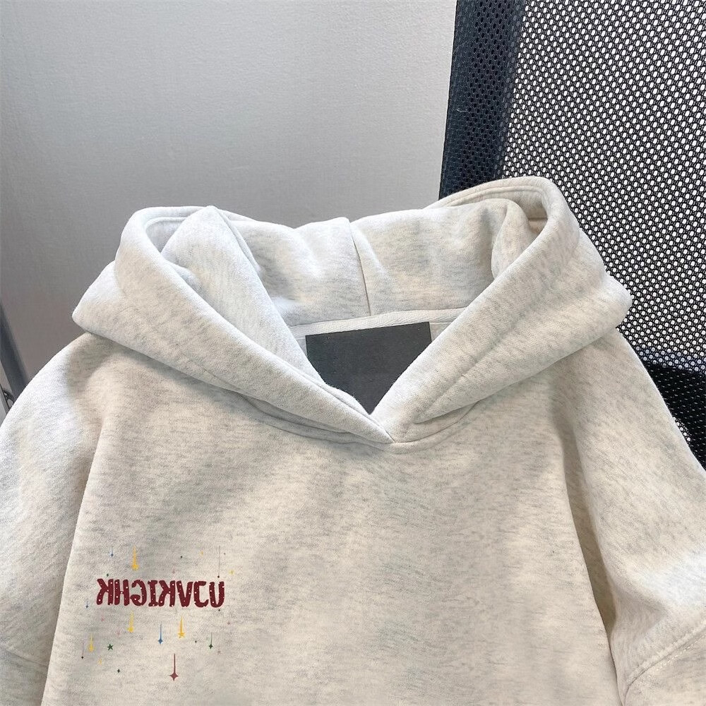 Nasawassup American retro shooting star hooded trendy sweatshirt for men and women, autumn and winter velvet thickened couple heavyweight loose top, white and gray style-M01 velvet L recommended 110-130Jin Jin equals 0.5kg
