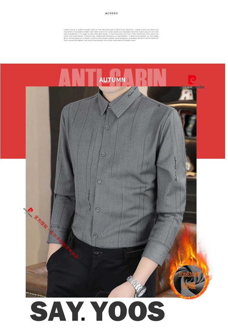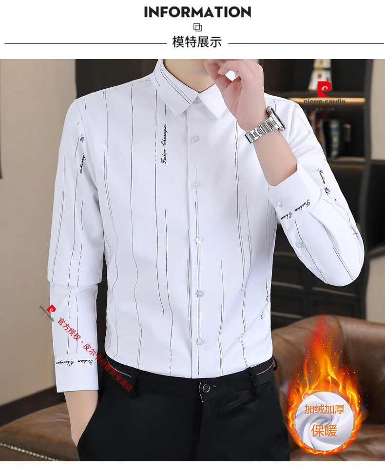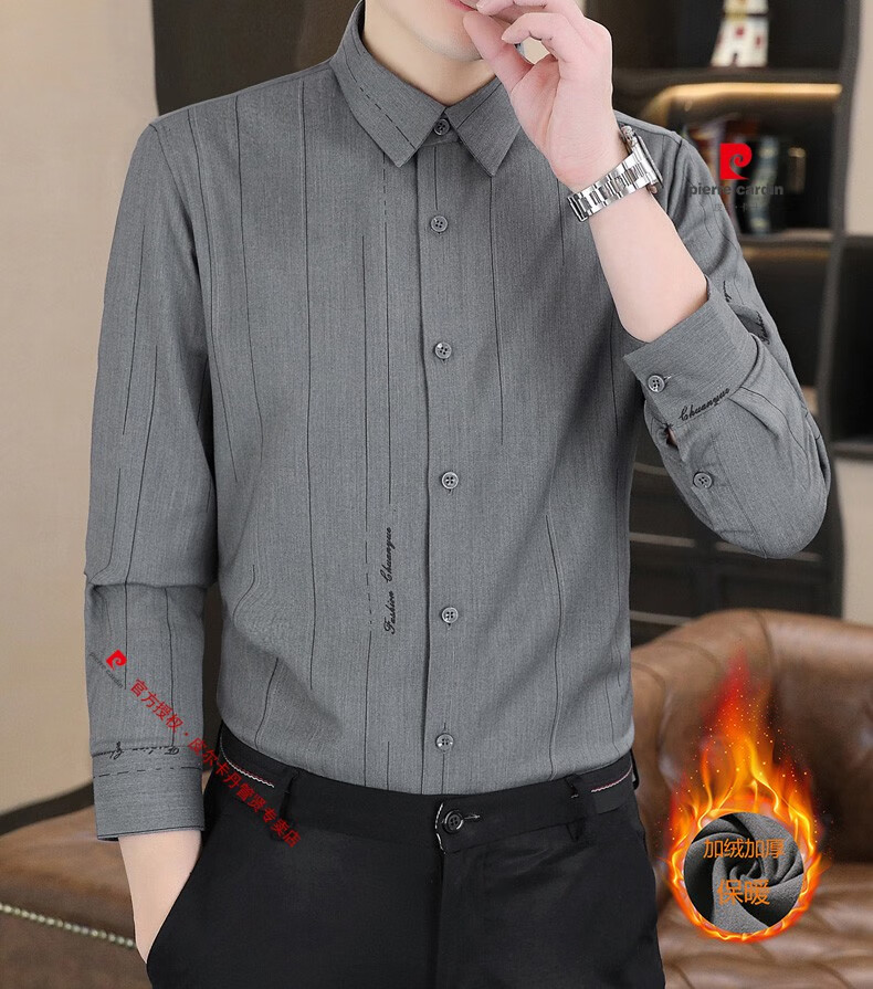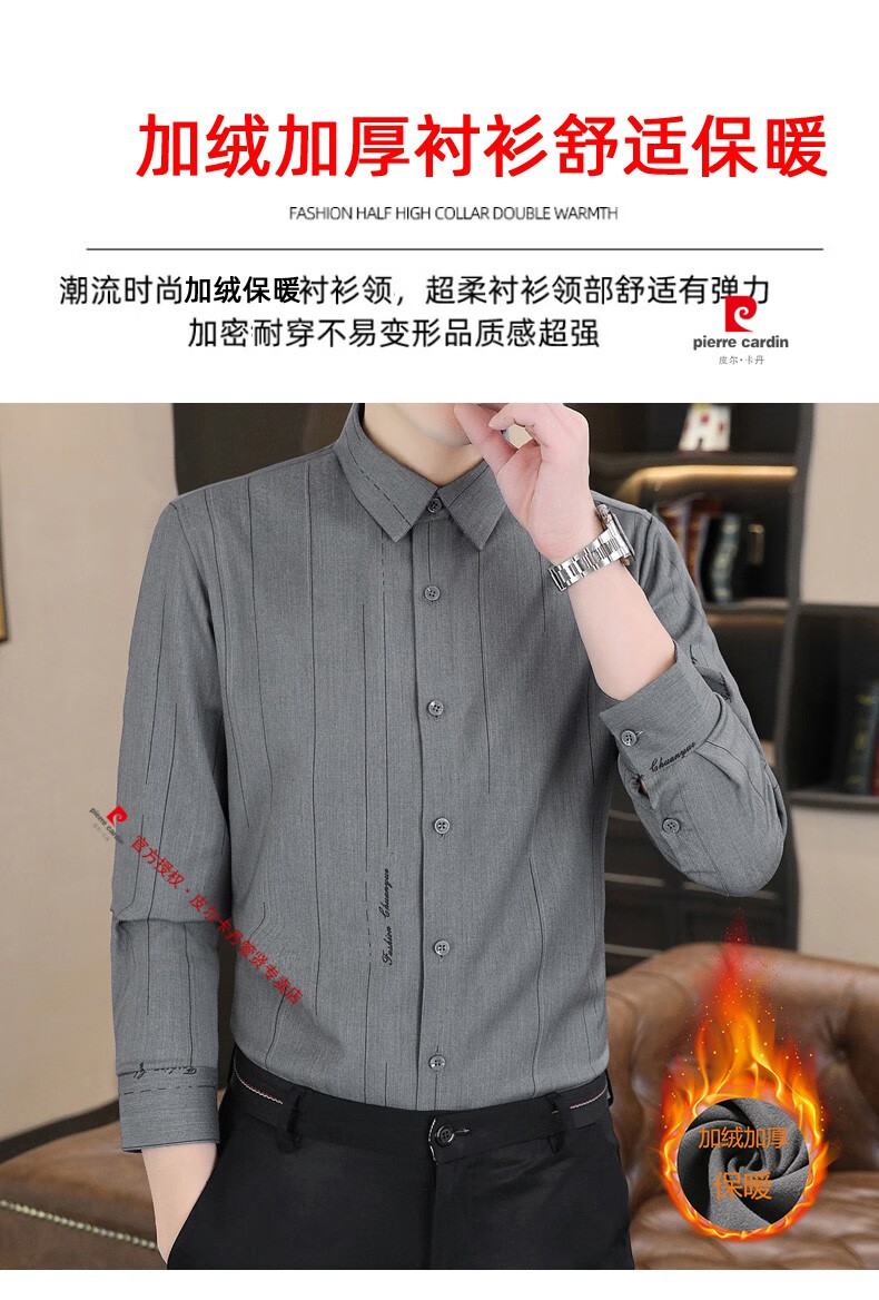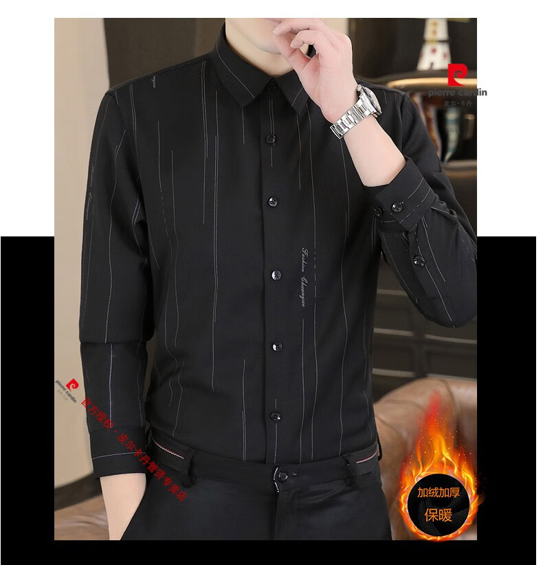 皮尔卡丹(pierre cardin)冬季新款一体绒衬衫男长袖商务休闲弹力感加绒加厚保暖衬衣 黑色 一体绒 L 适合110-125斤