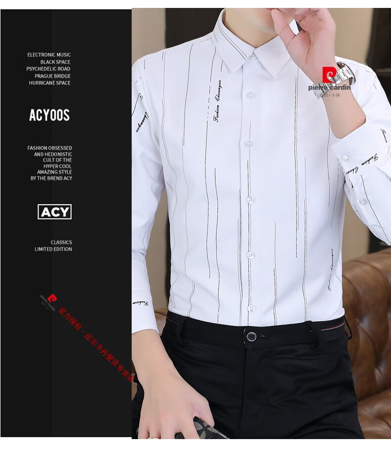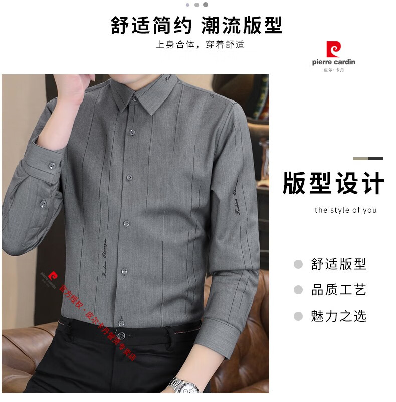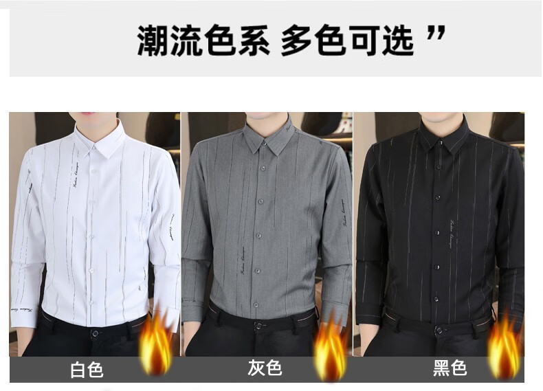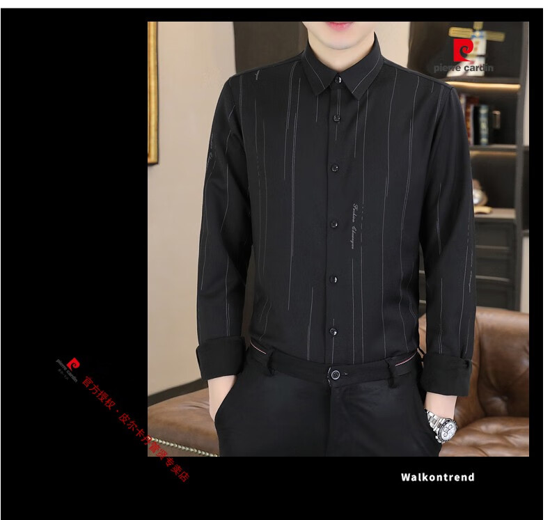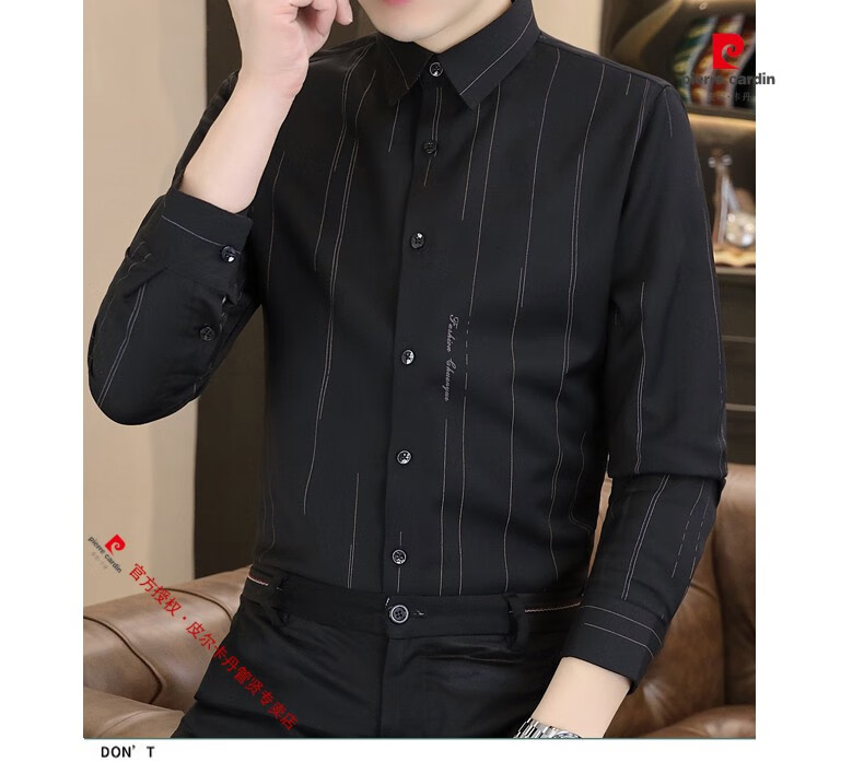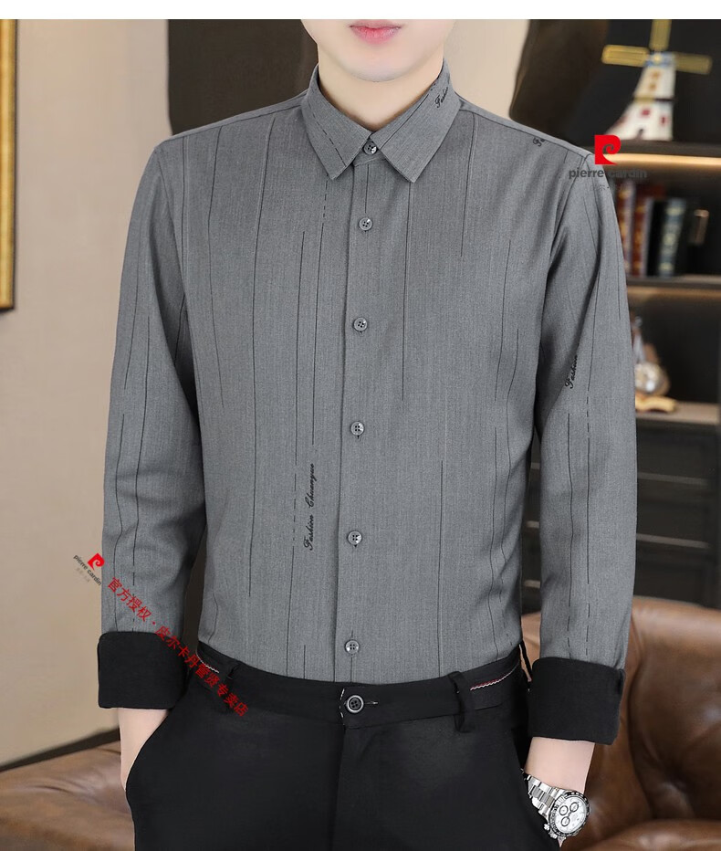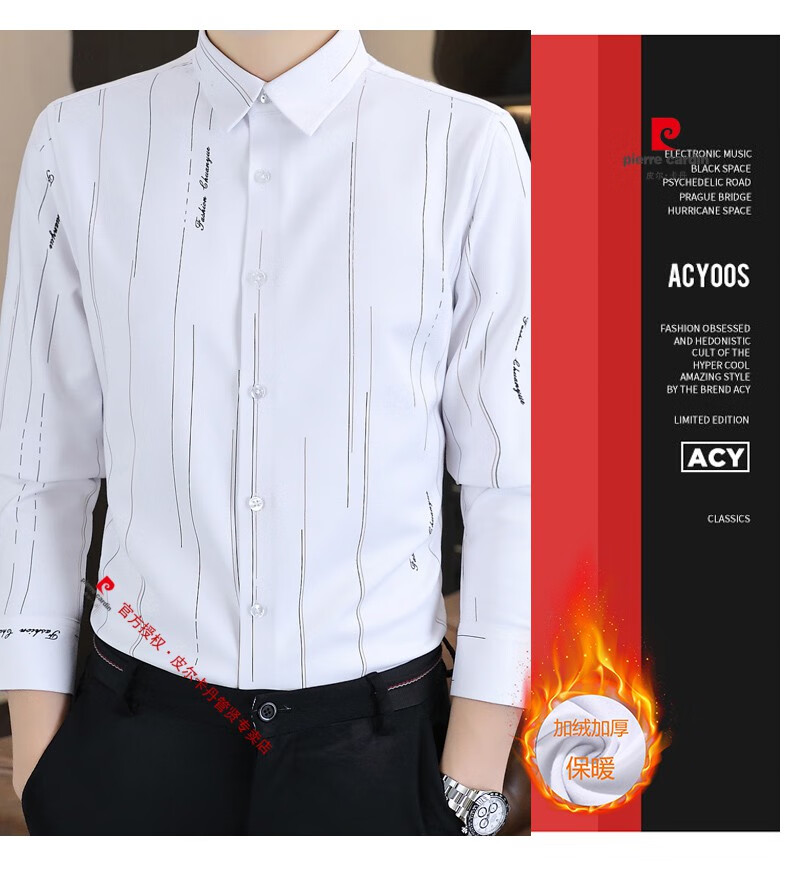 皮尔卡丹(pierre cardin)冬季新款一体绒衬衫男长袖商务休闲弹力感加绒加厚保暖衬衣 黑色 一体绒 L 适合110-125斤