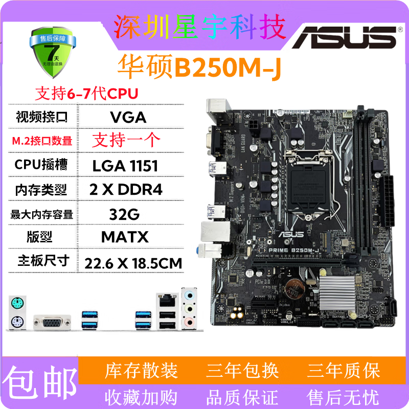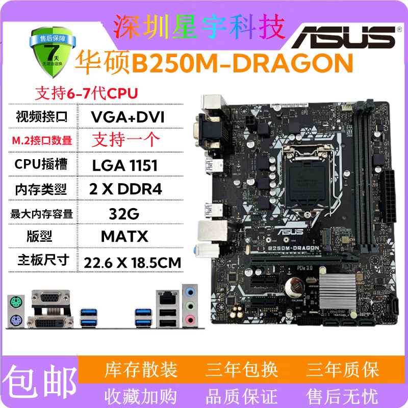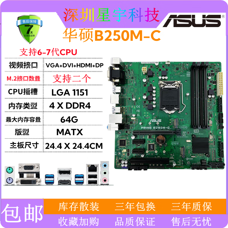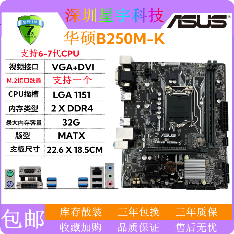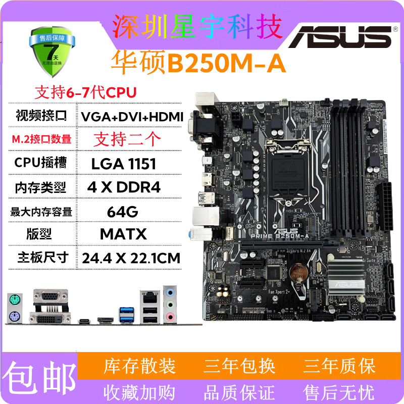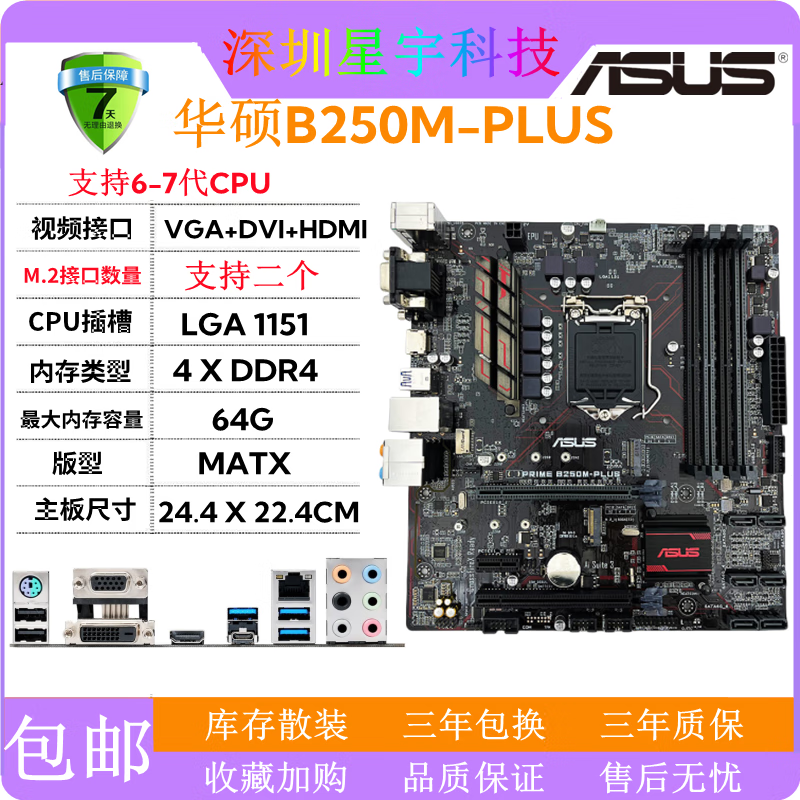 ASUS B250M-K/J/A/PLUS/KYLIN/PIXIU desktop computer motherboard 1151-pin 67th generation ASUS B250-PLUS (large board)