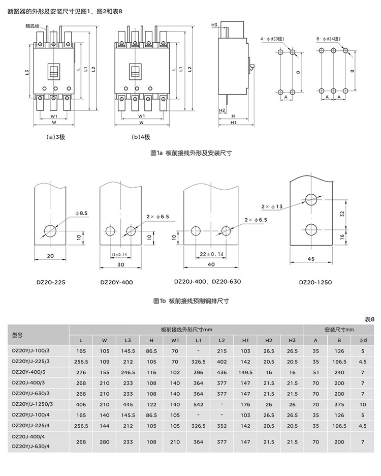 Disjoncteur à boîtier moulé DZ20Y 3300, interrupteur à air populaire de chine, principal ouvert 3p100 160 225 400 63 3P 100A