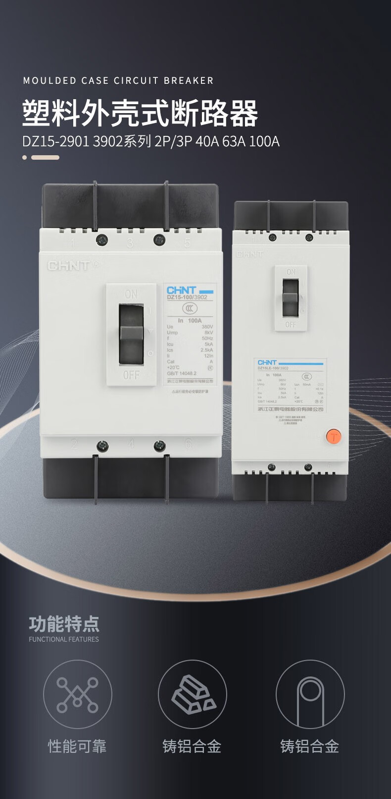 正泰DZ15-40/2901塑壳断路器空气开关DZ15-100/3902 40A 63A 40A 2P